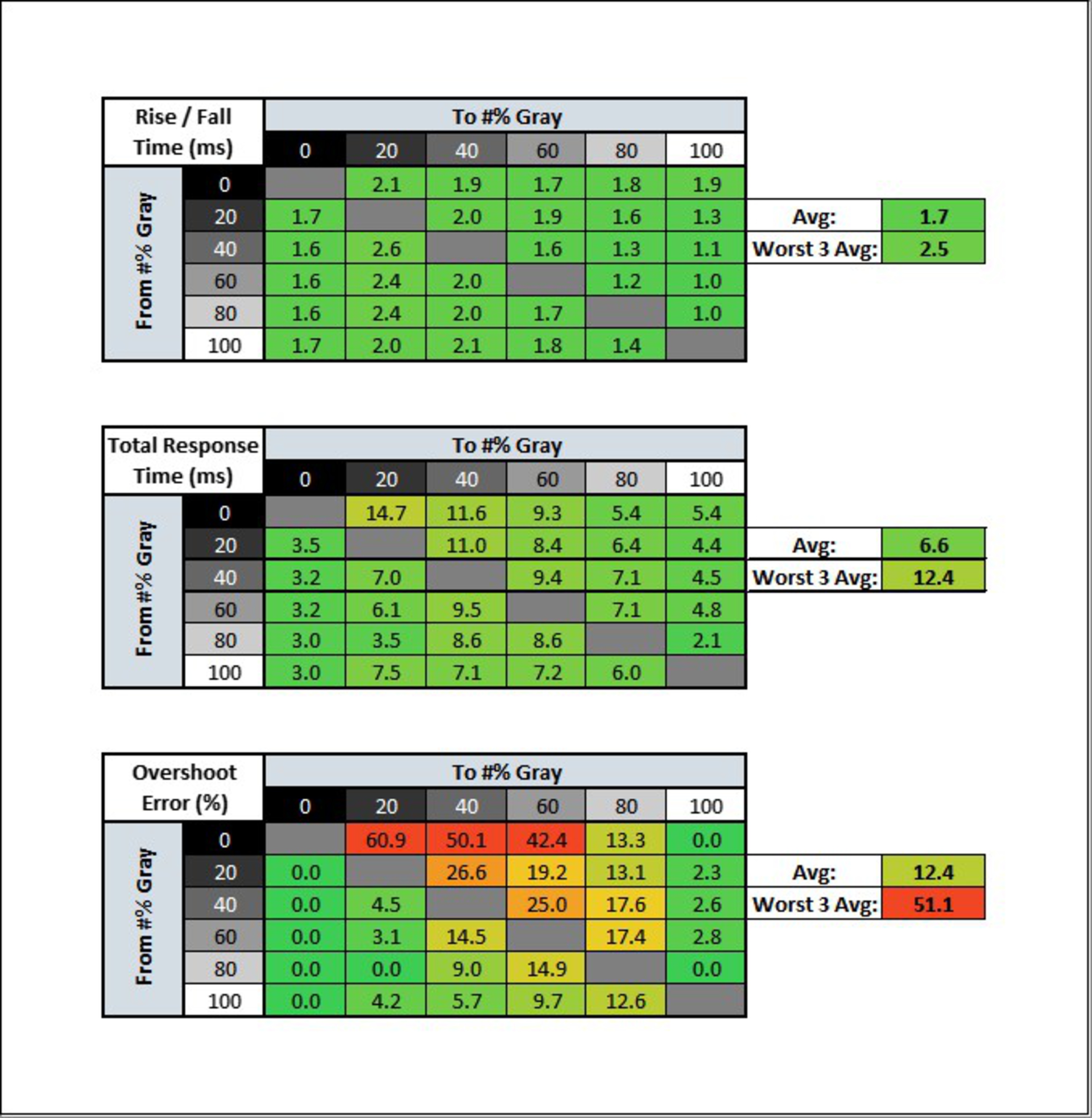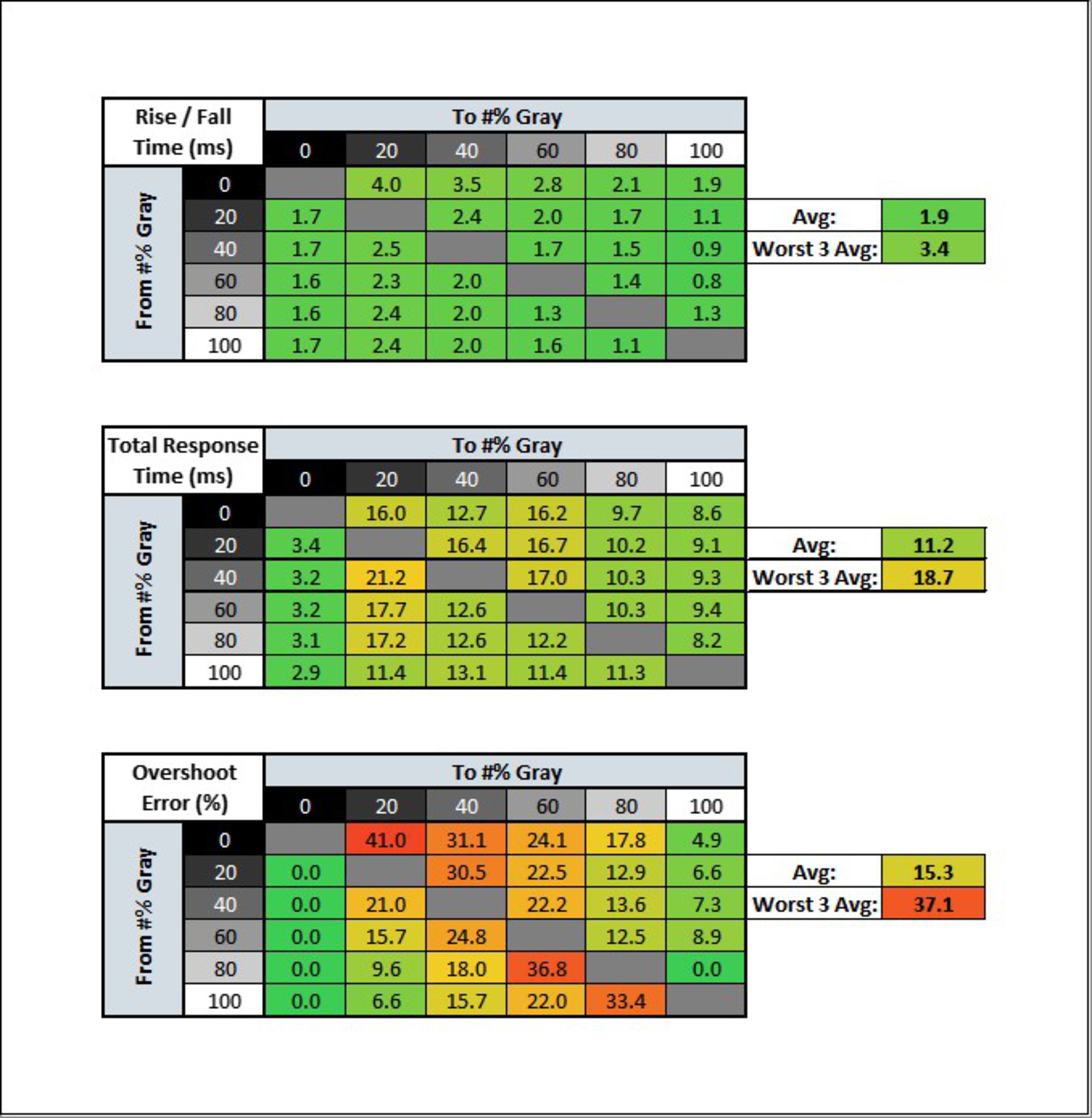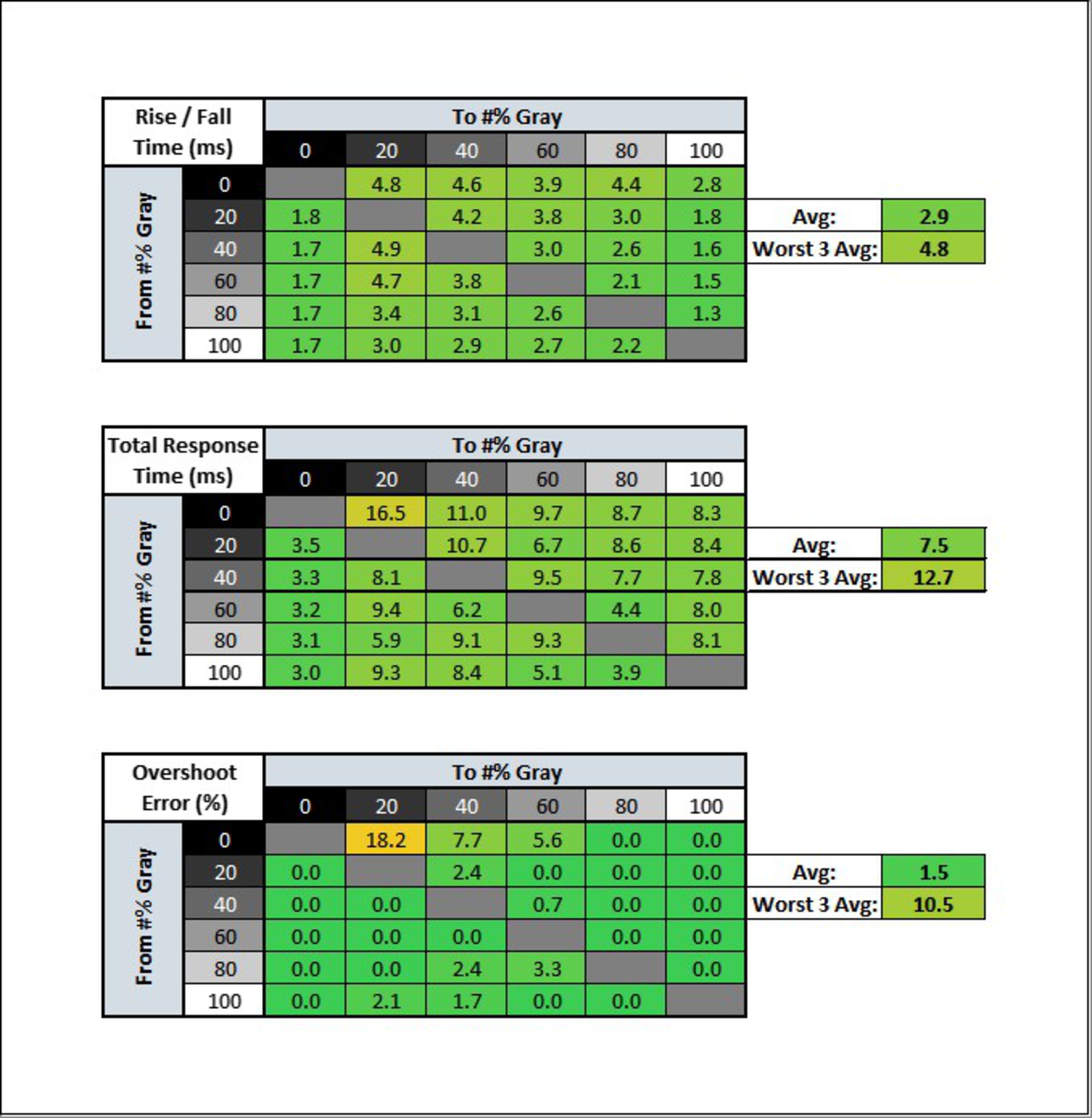 | 240 fps | 2.8 ms | 3.3 ms | 3.1 ms | 2.8 ms |