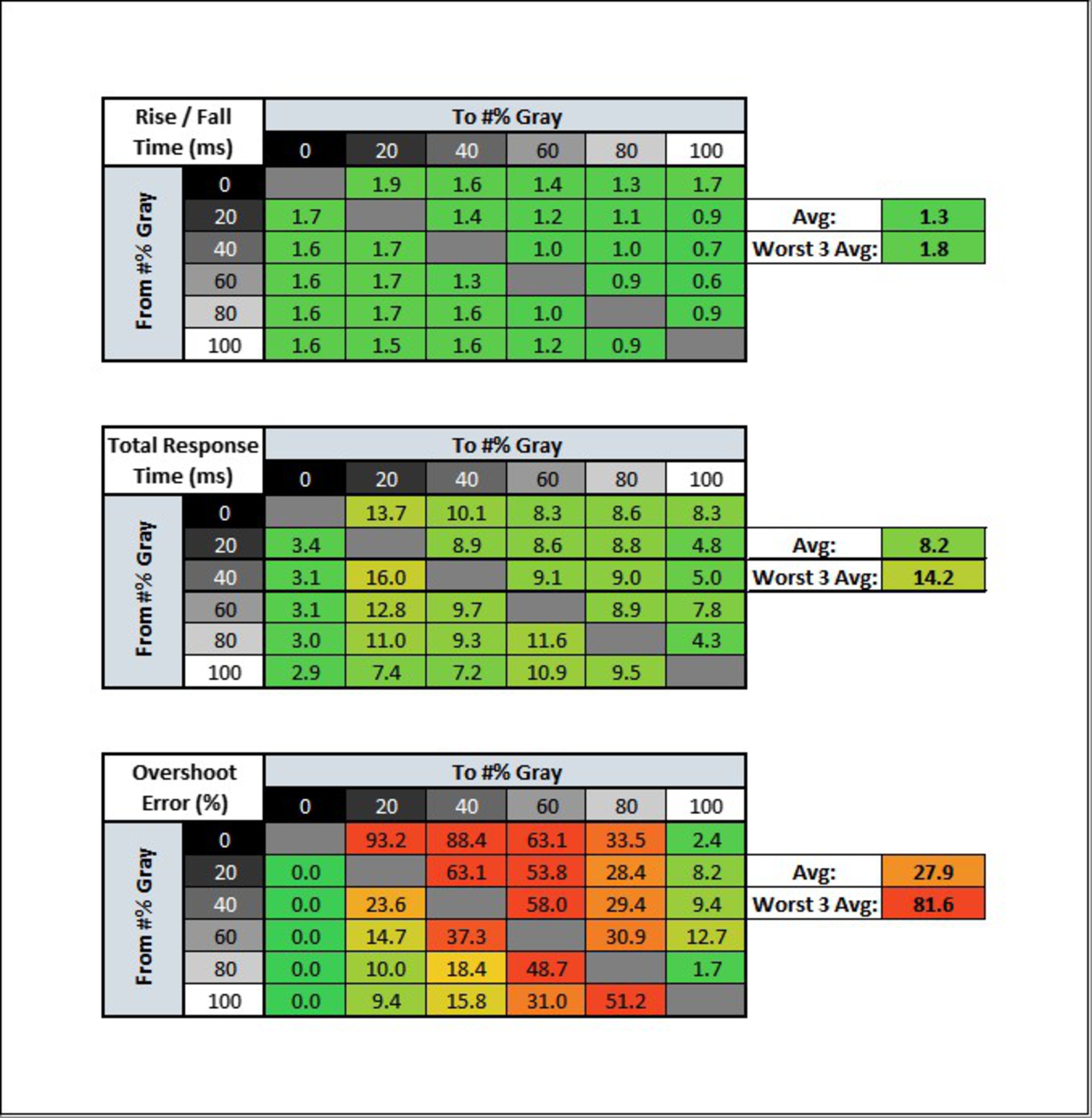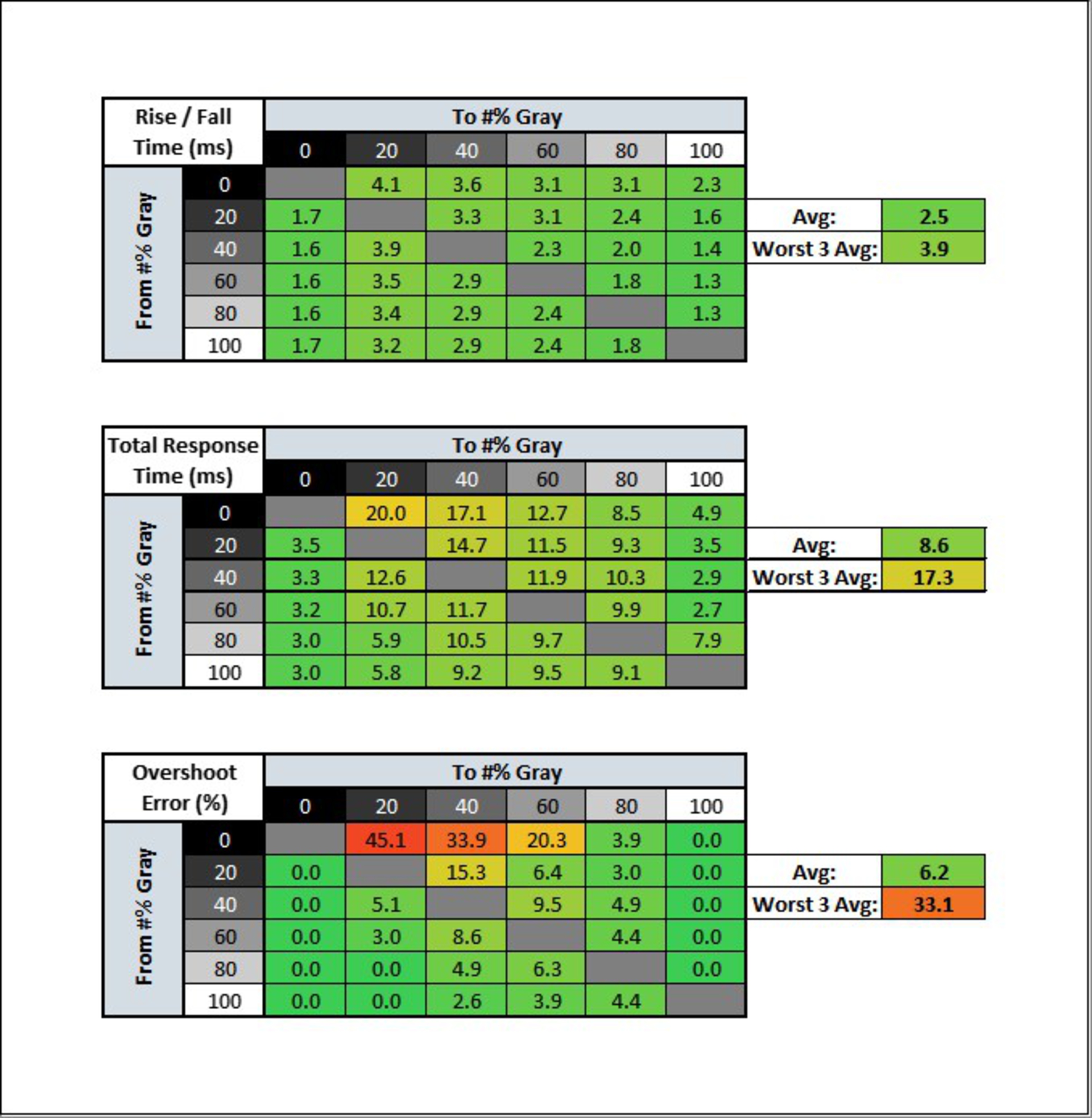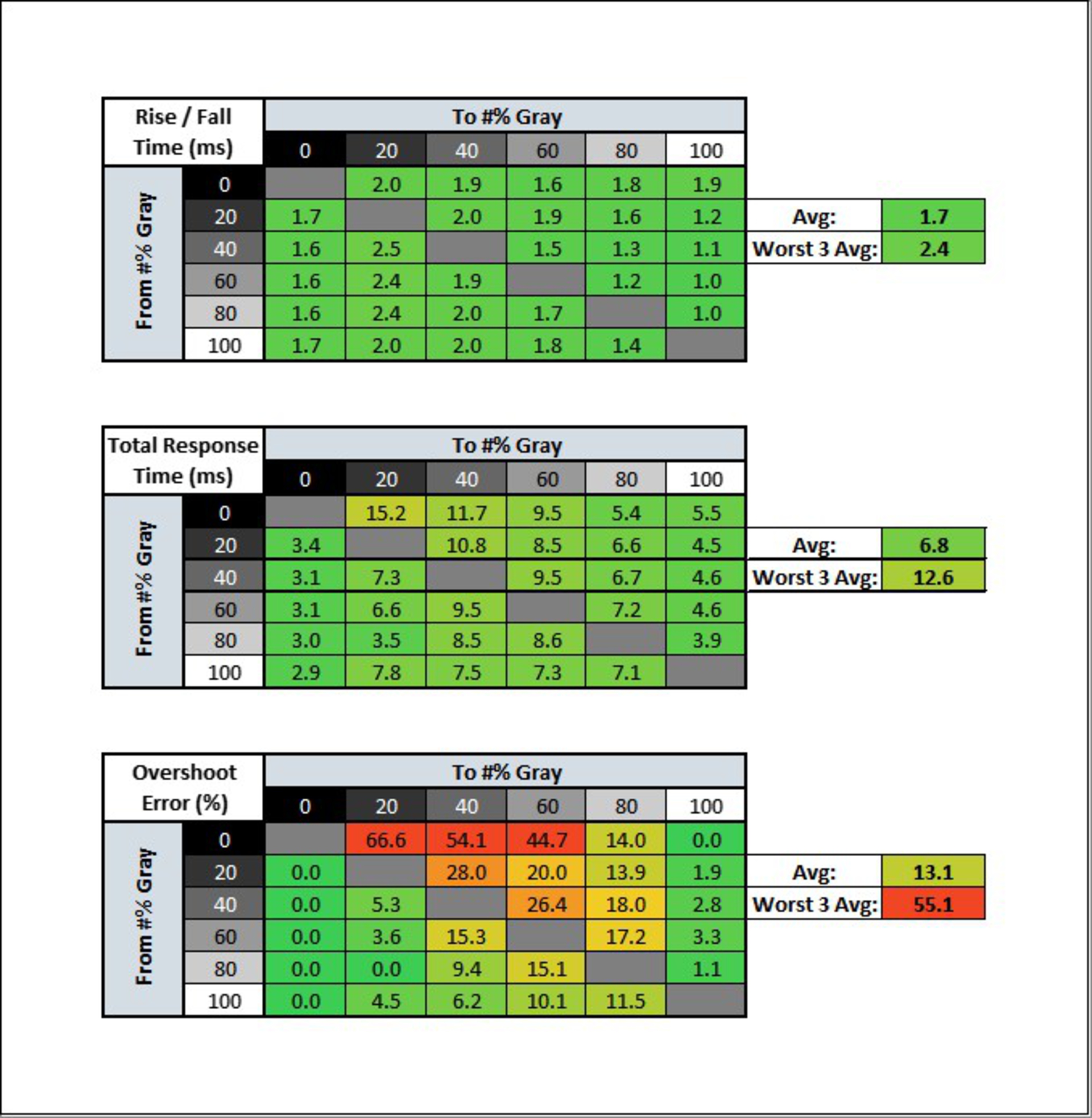 | 240 fps | 2.8 ms | 3.3 ms | 3.1 ms | 2.8 ms |