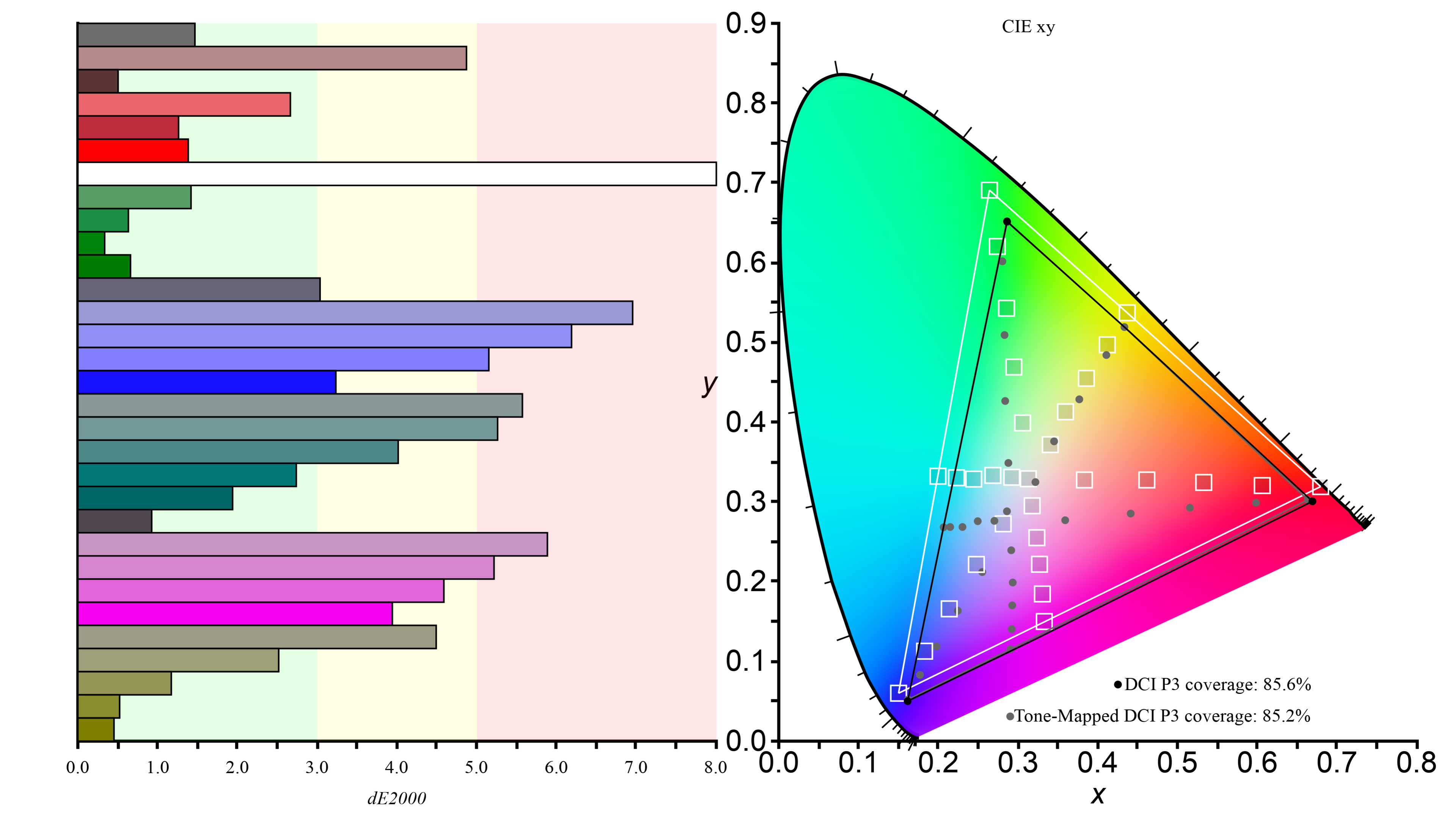 - Tone-Mapped DCI-P3 Coverage: 85.2%