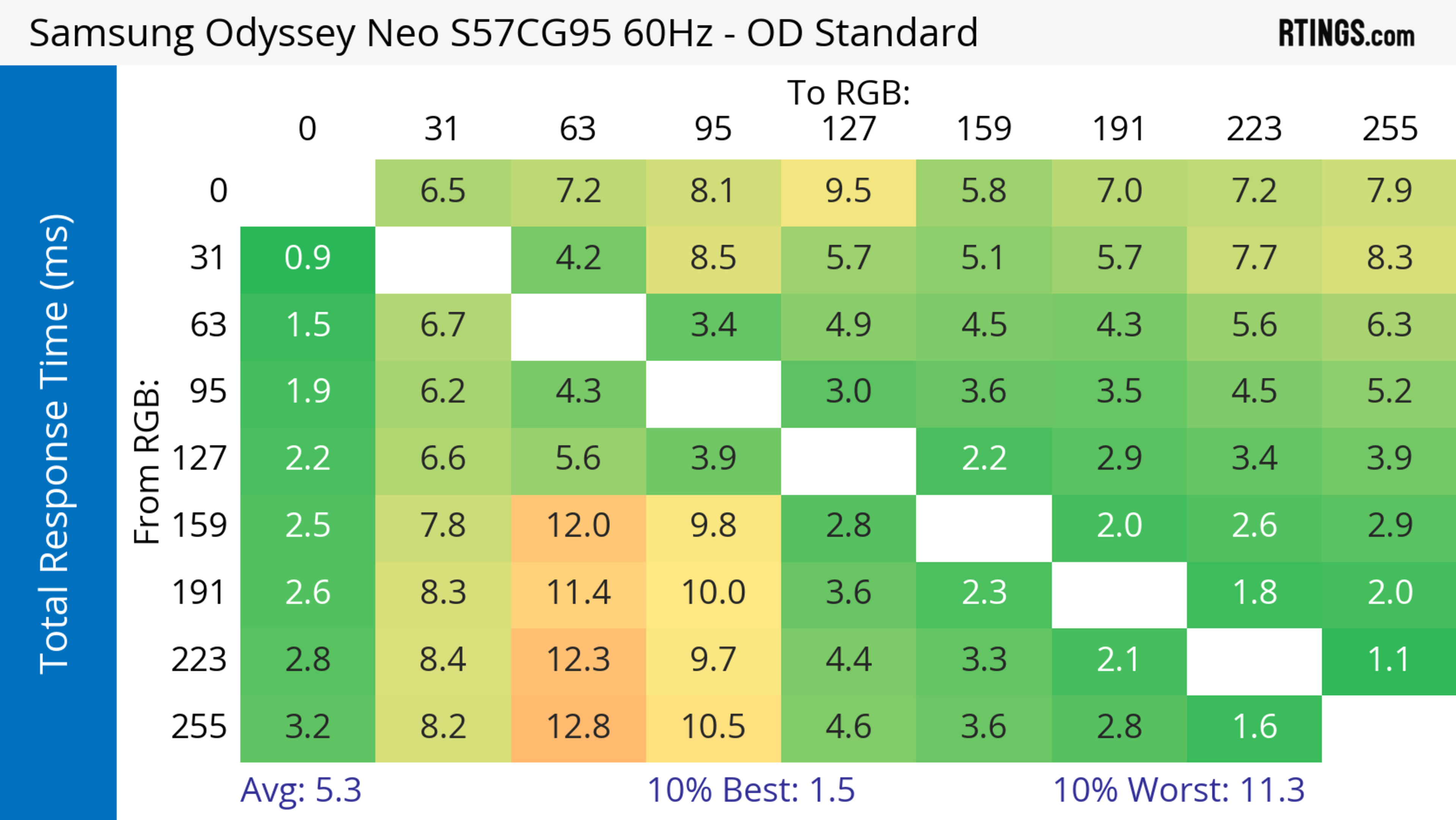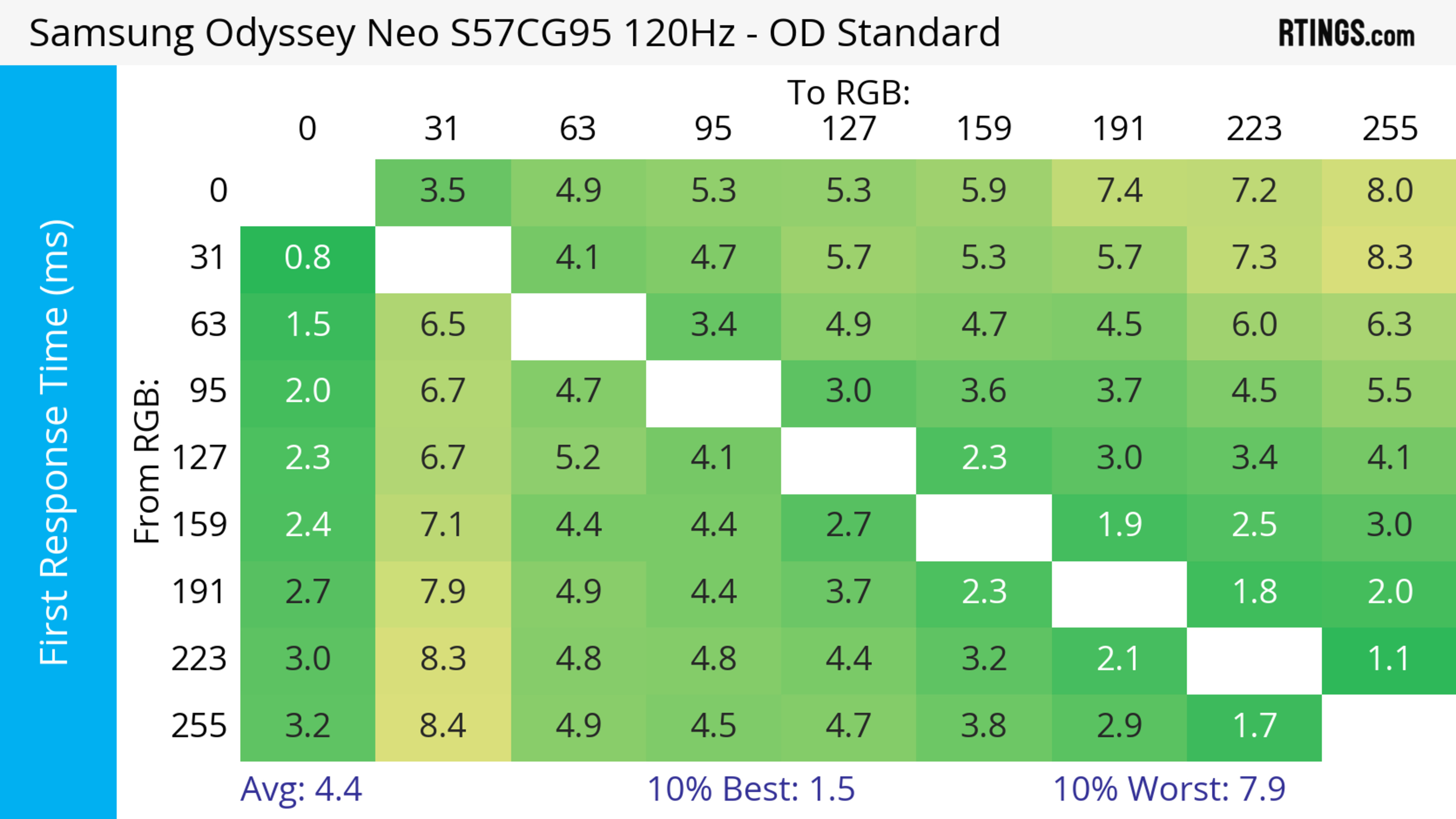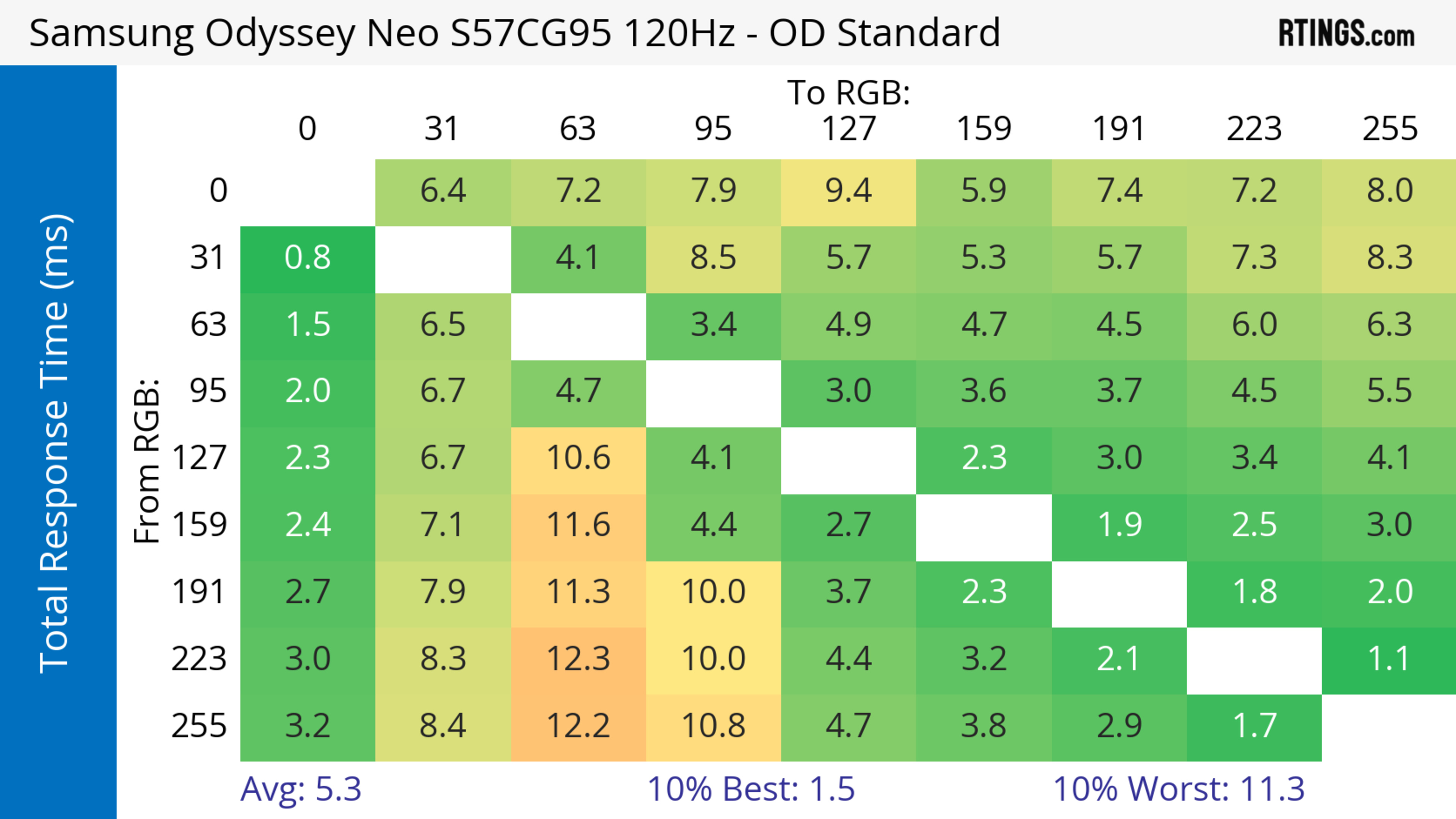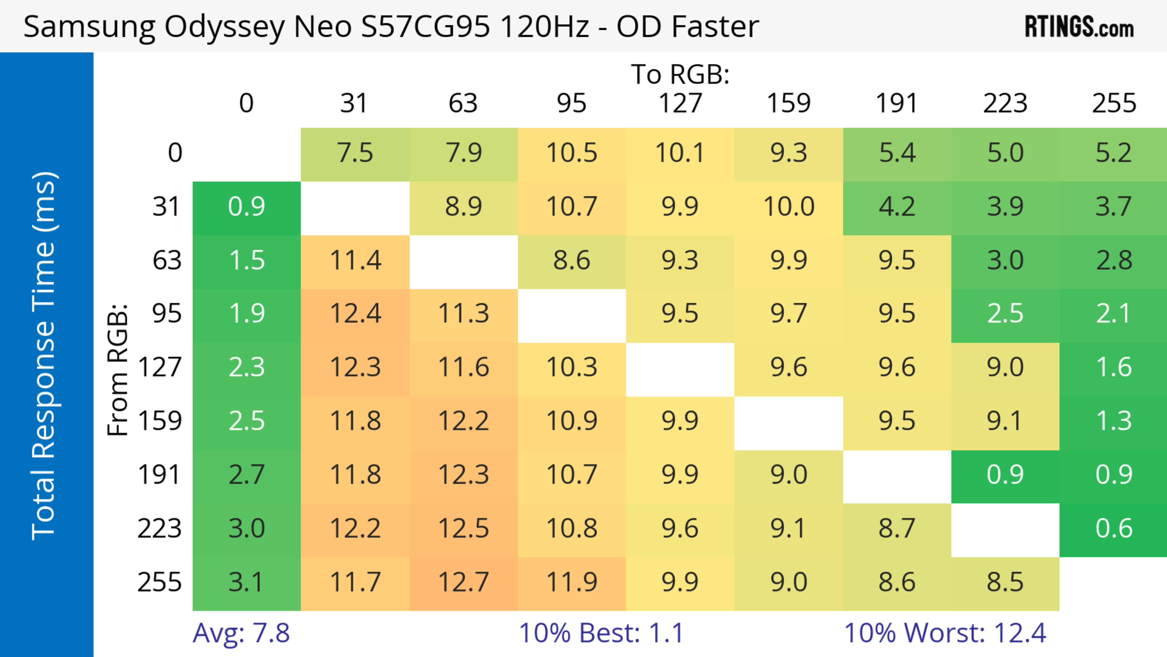 The Samsung G95NC has low input lag for a responsive feel, and it doesn't increase with a lower refresh rate or even if you change the resolution.