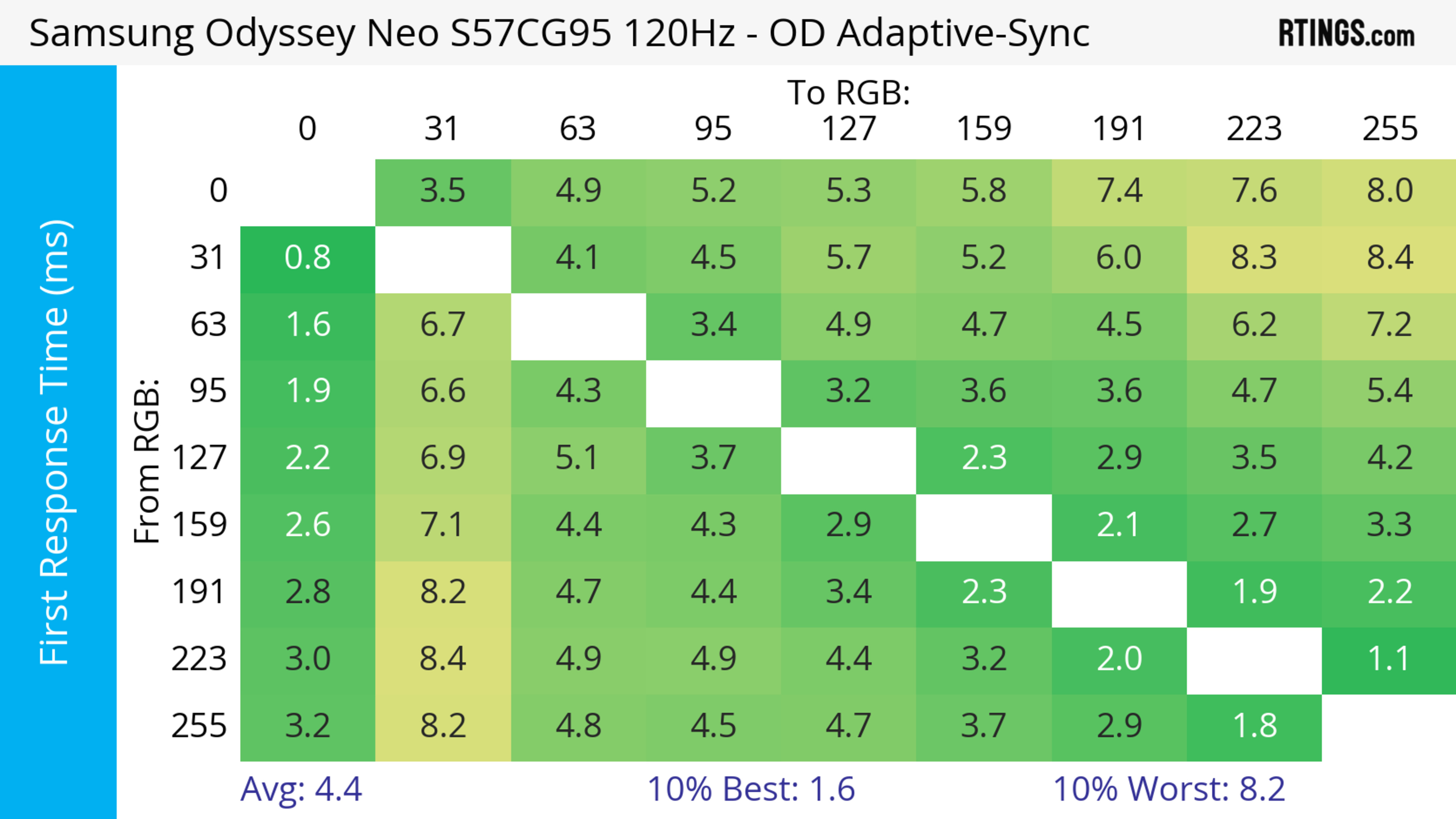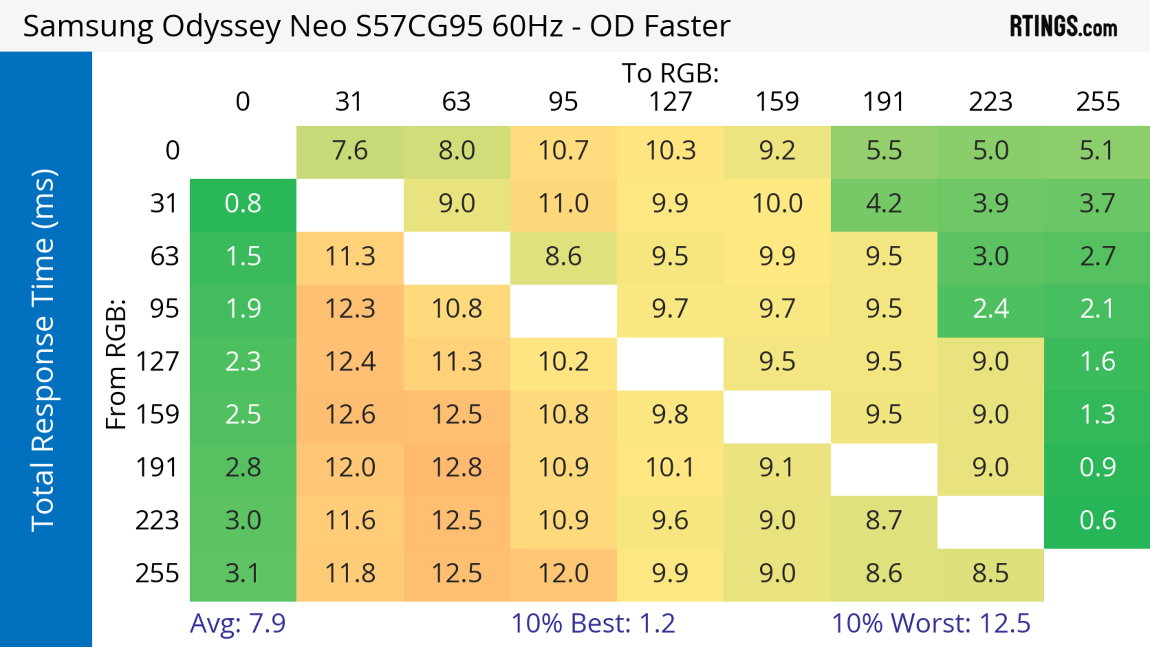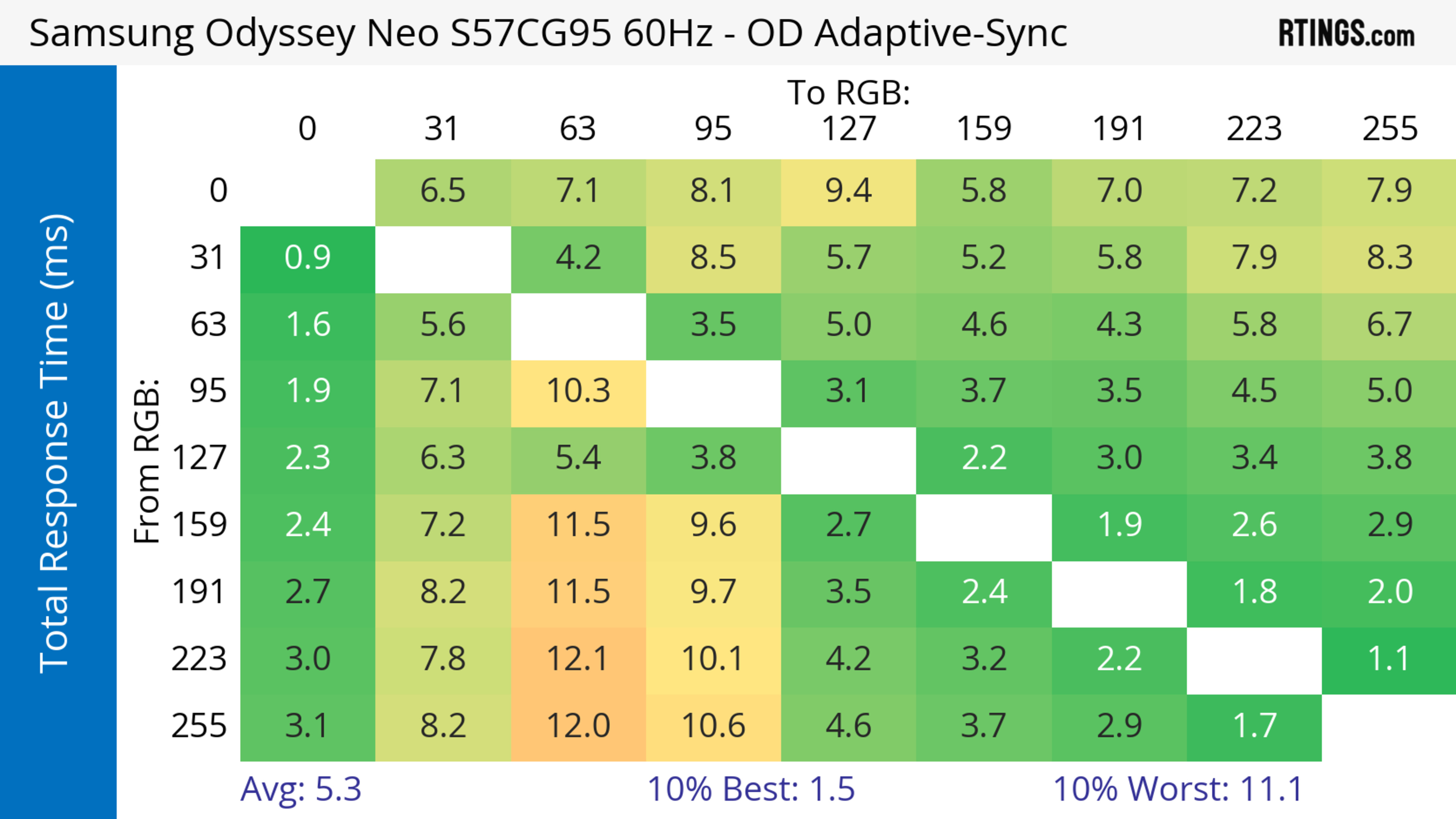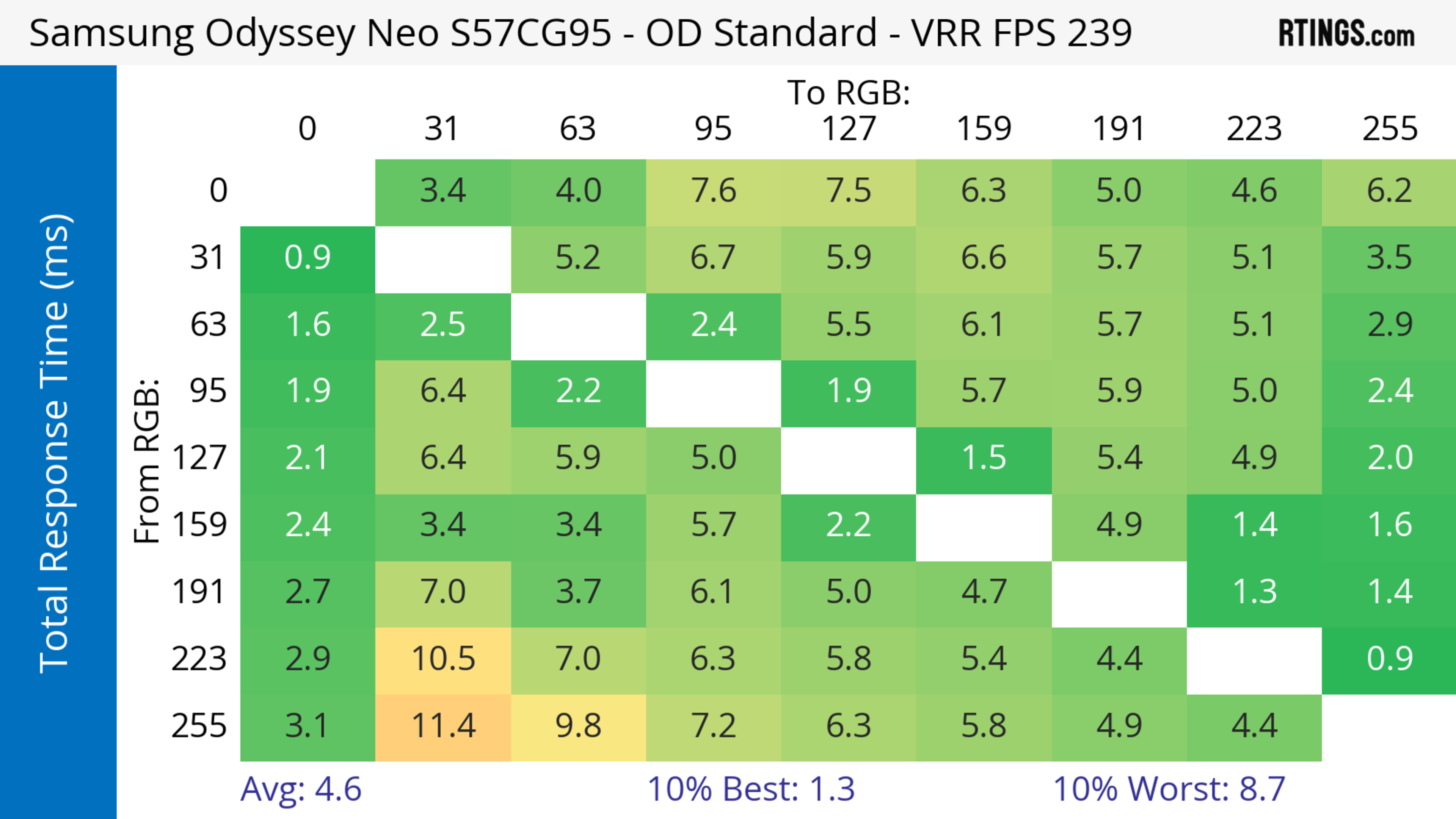 The Samsung G95NC has low input lag for a responsive feel, and it doesn't increase with a lower refresh rate or even if you change the resolution.