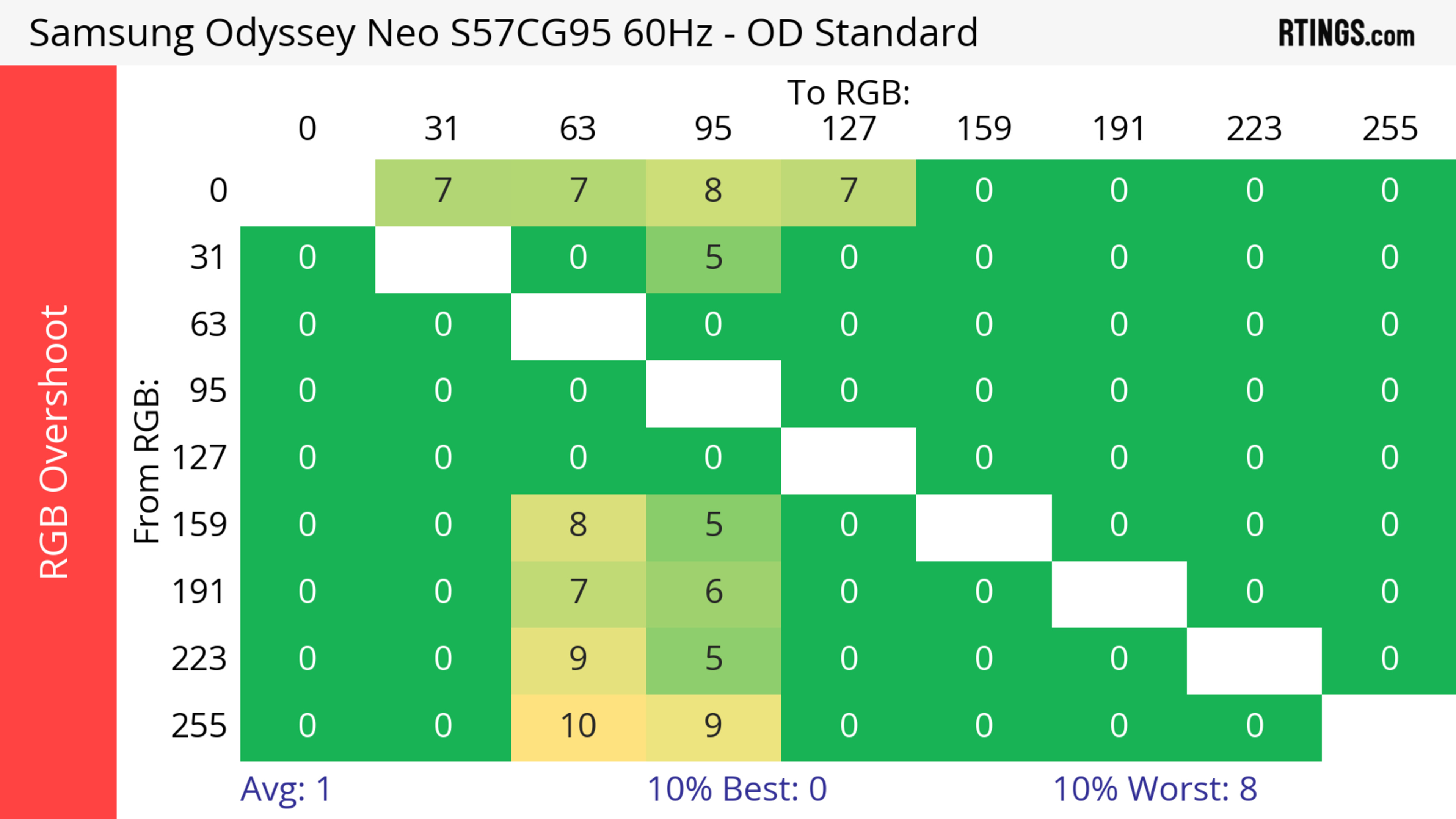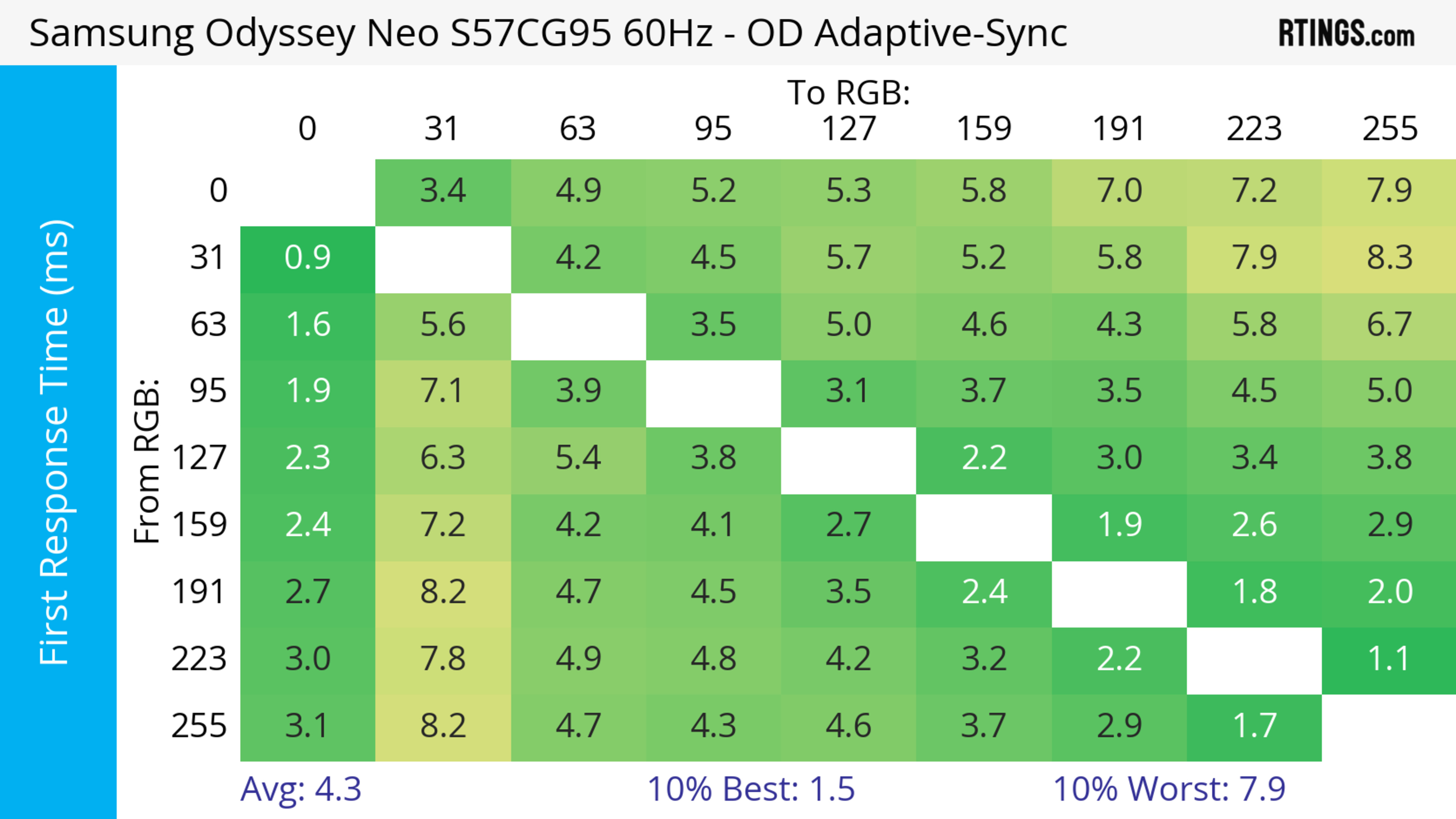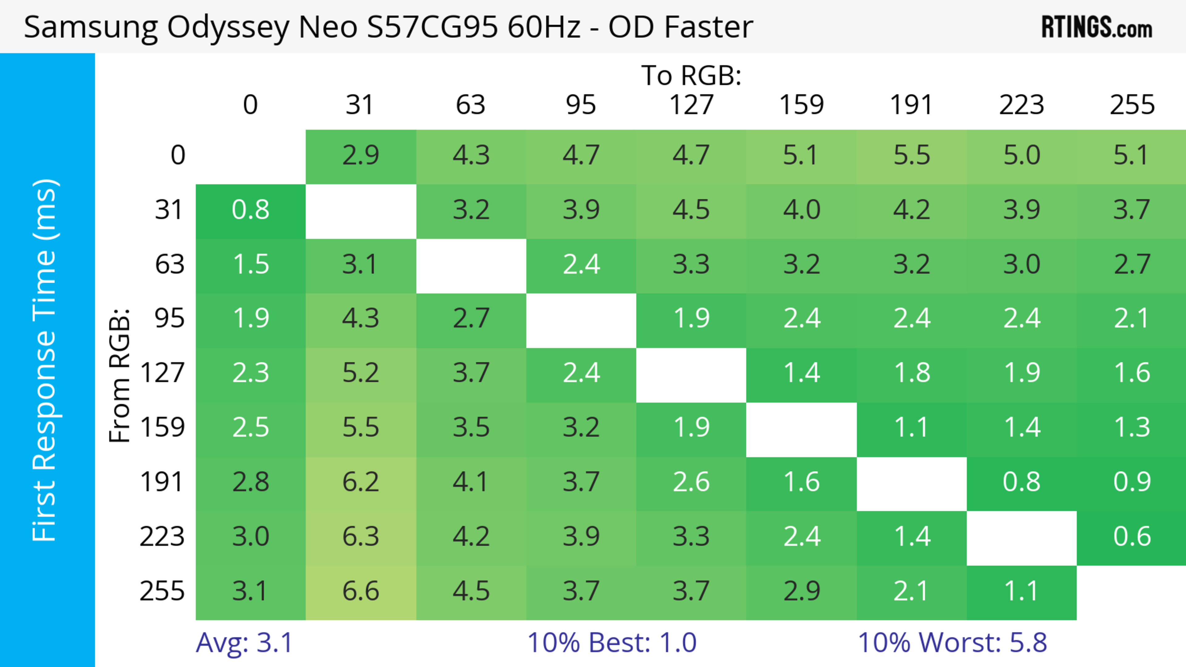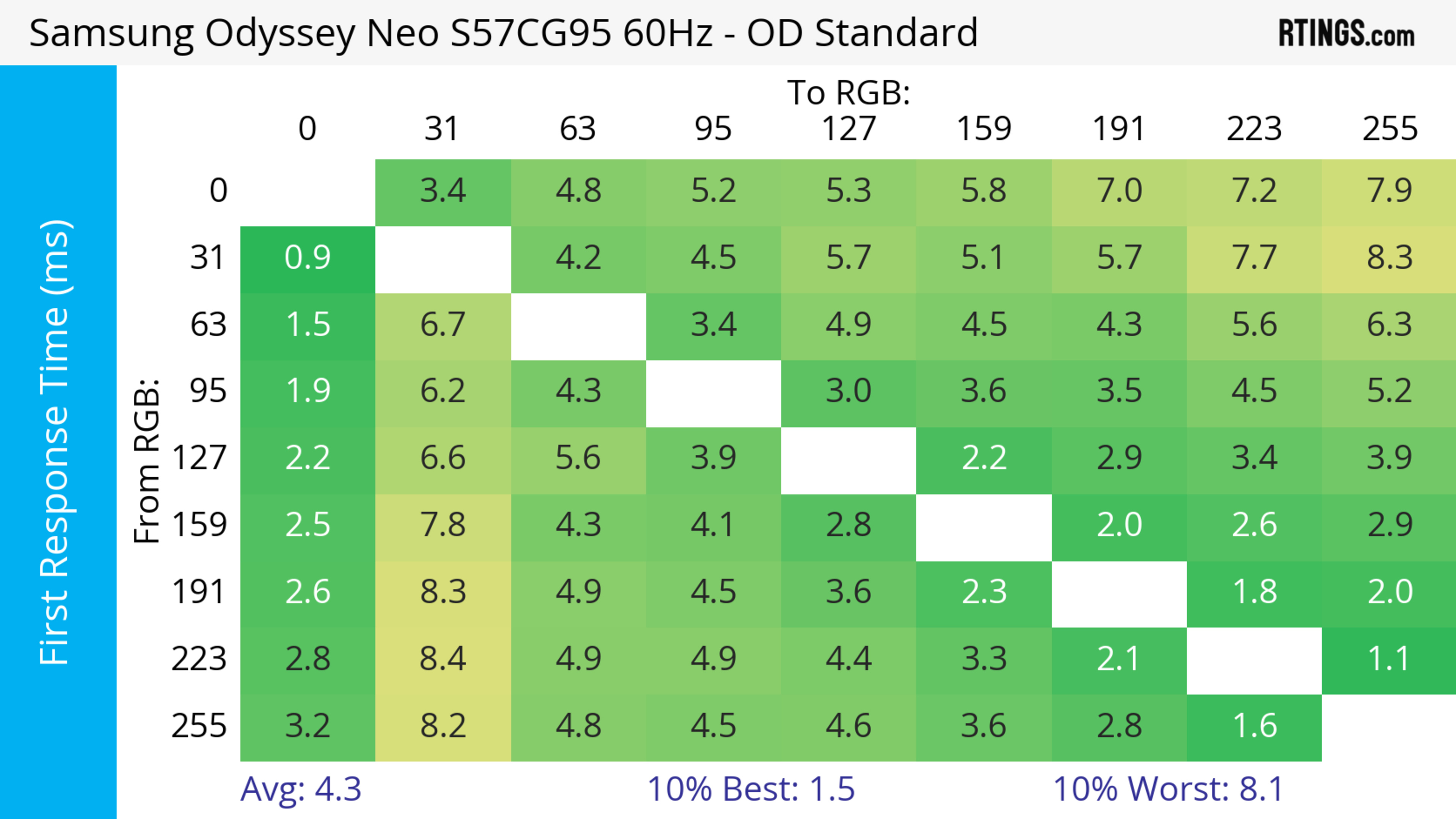 The Samsung G95NC has low input lag for a responsive feel, and it doesn't increase with a lower refresh rate or even if you change the resolution.