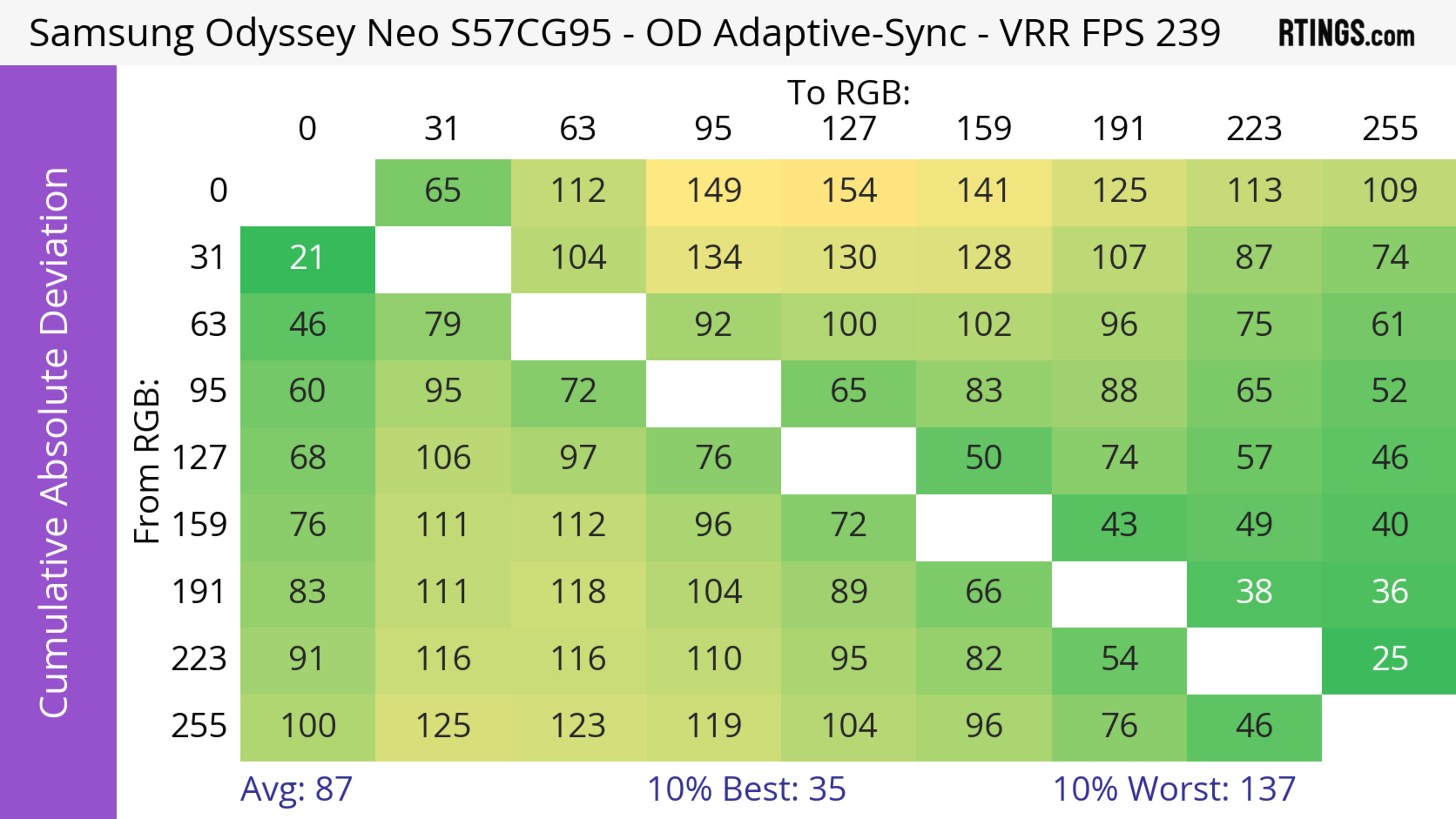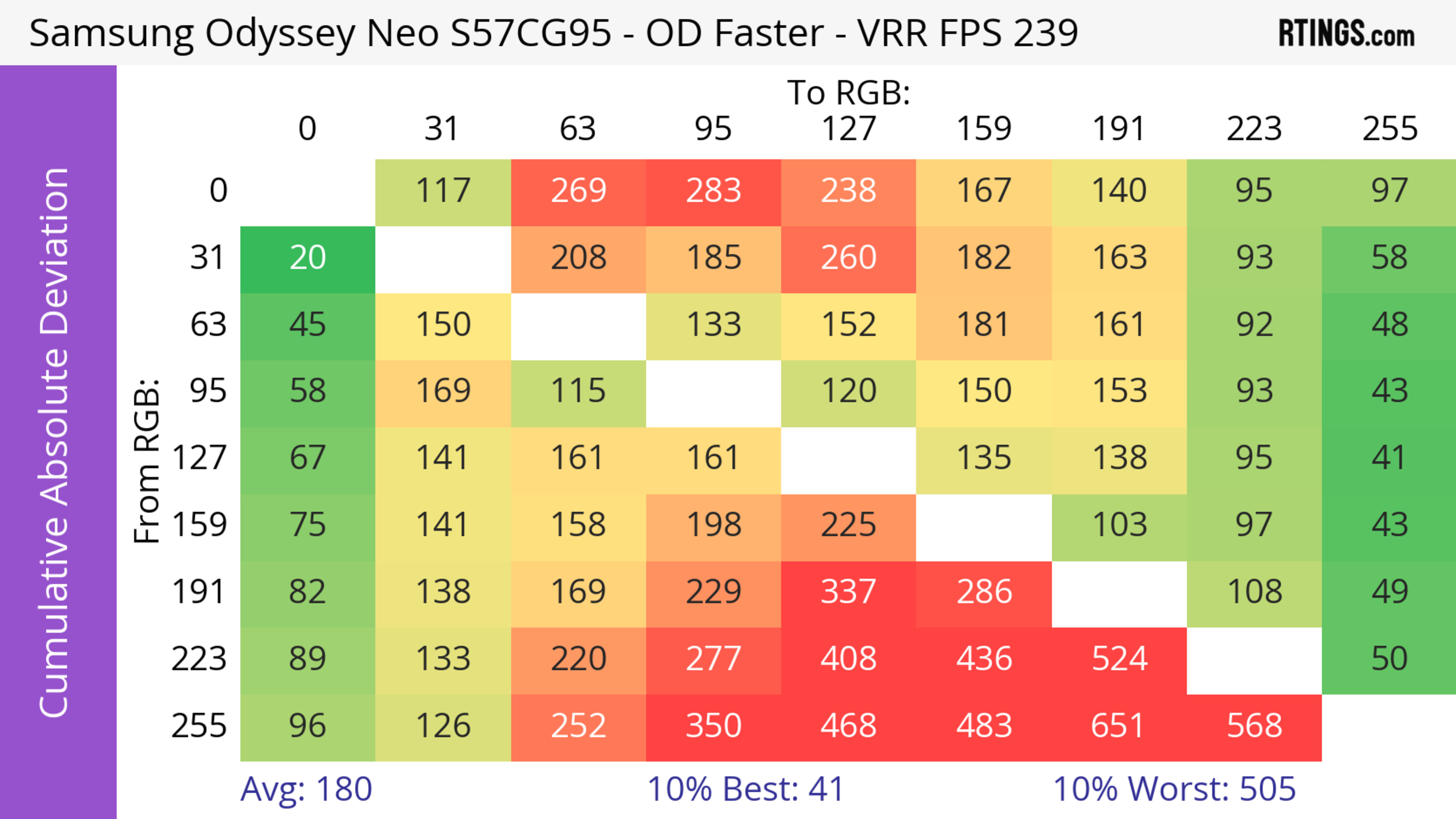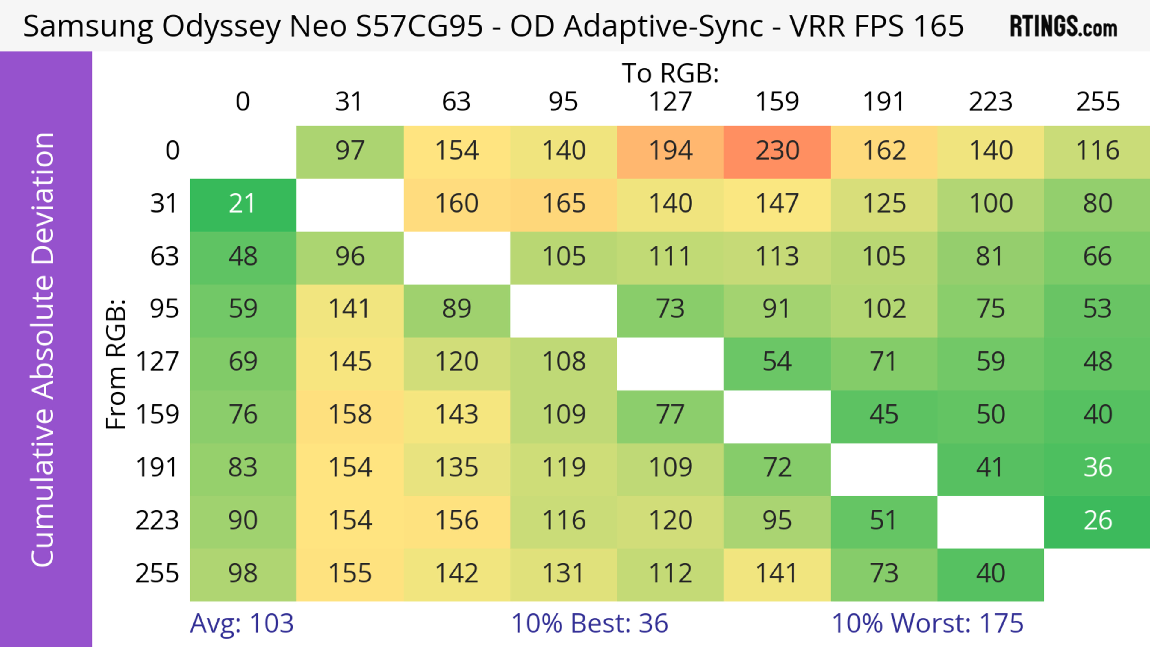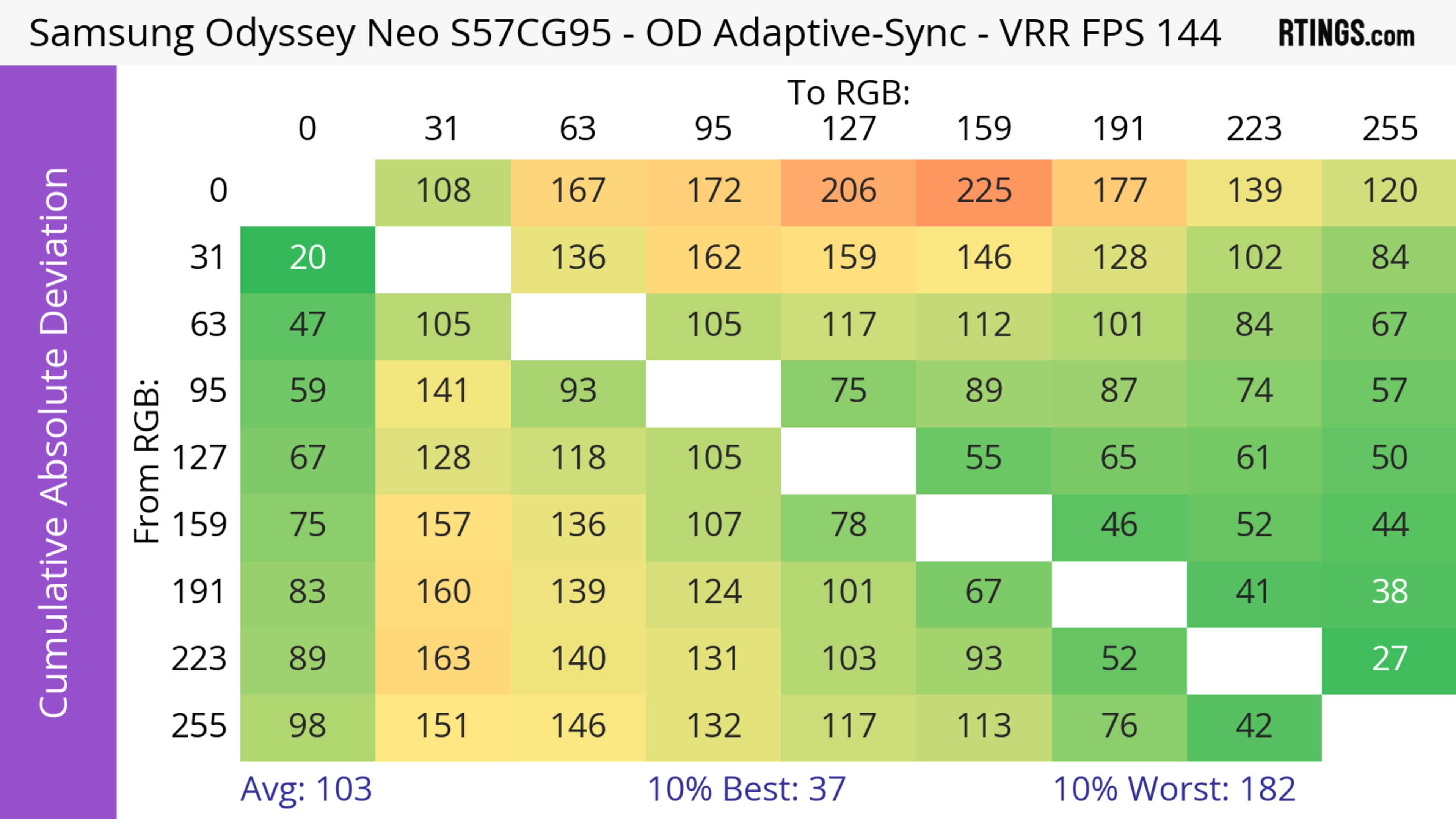 The motion handling is excellent across the VRR range. Using VRR disables any of the overdrive settings, and motion is consistently fast across the refresh rate range, without much blur, but there's still some smearing.