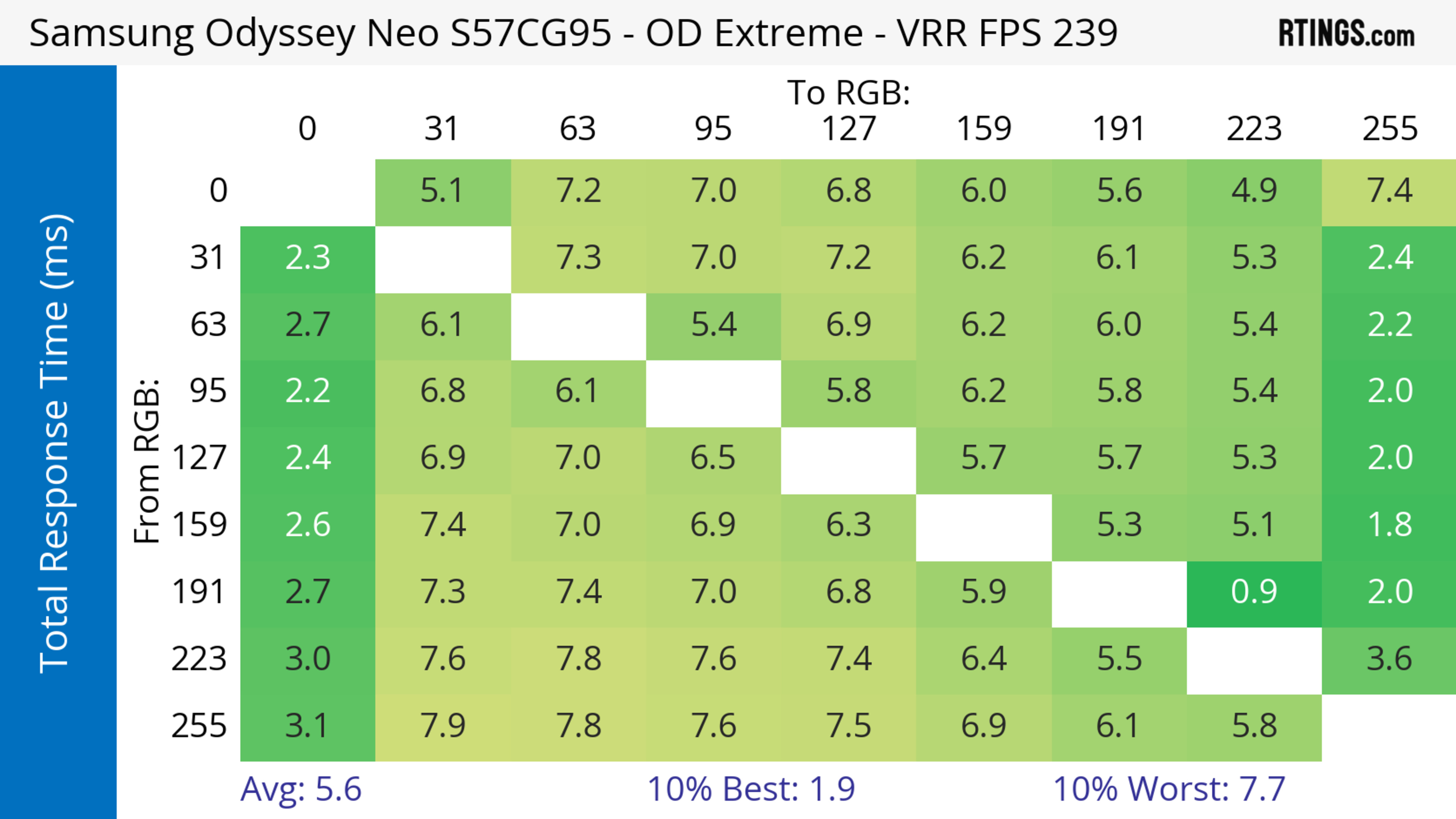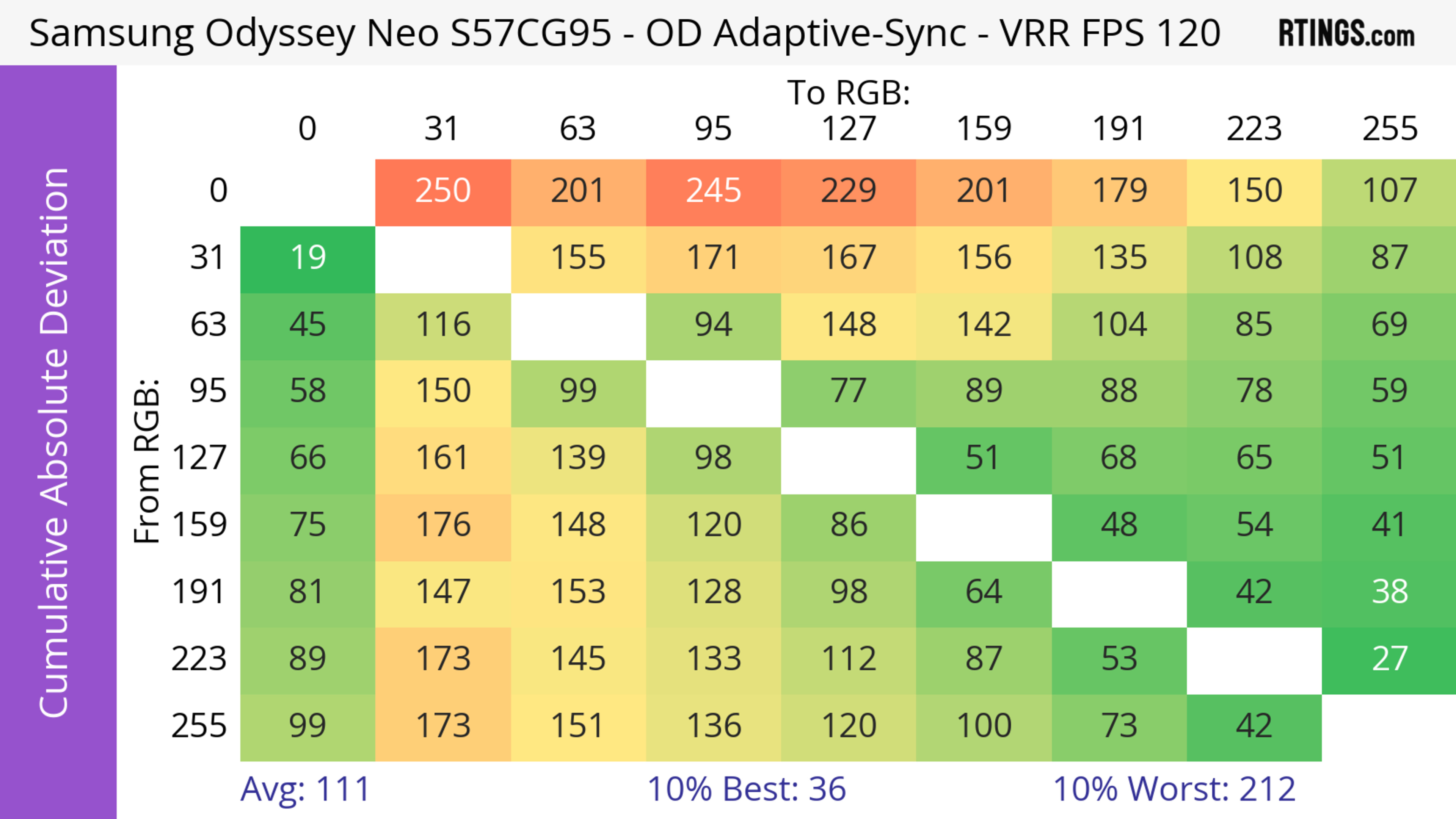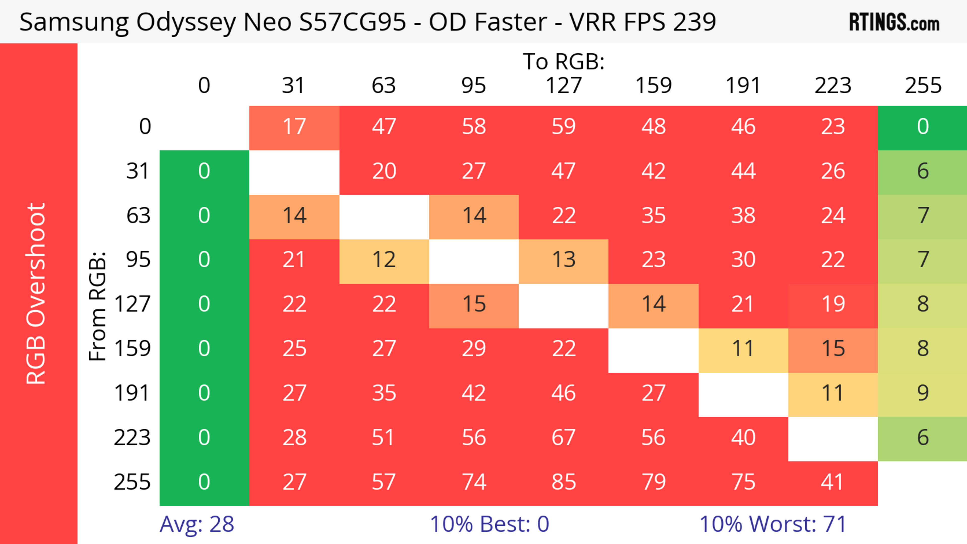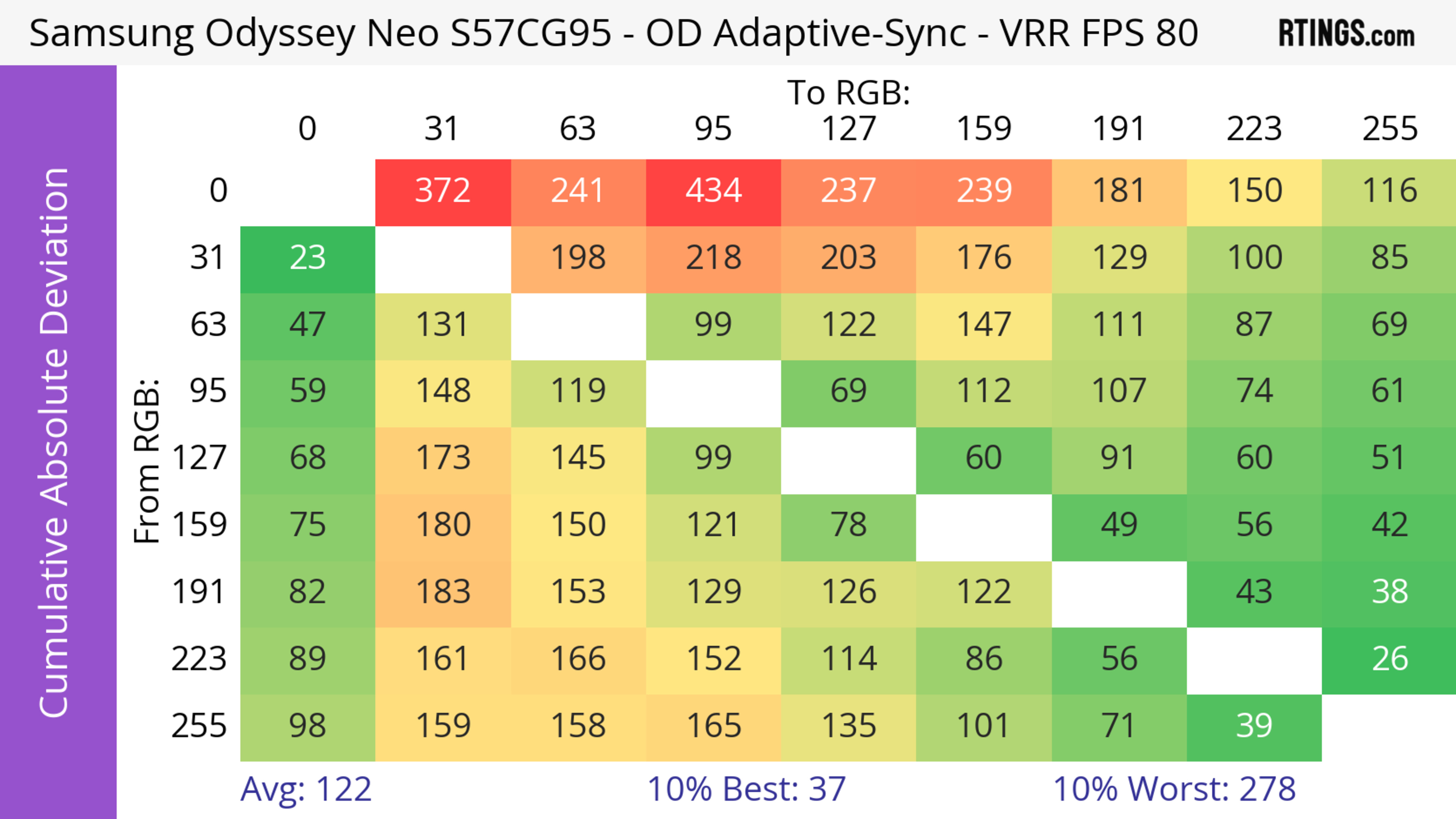 The motion handling is excellent across the VRR range. Using VRR disables any of the overdrive settings, and motion is consistently fast across the refresh rate range, without much blur, but there's still some smearing.
