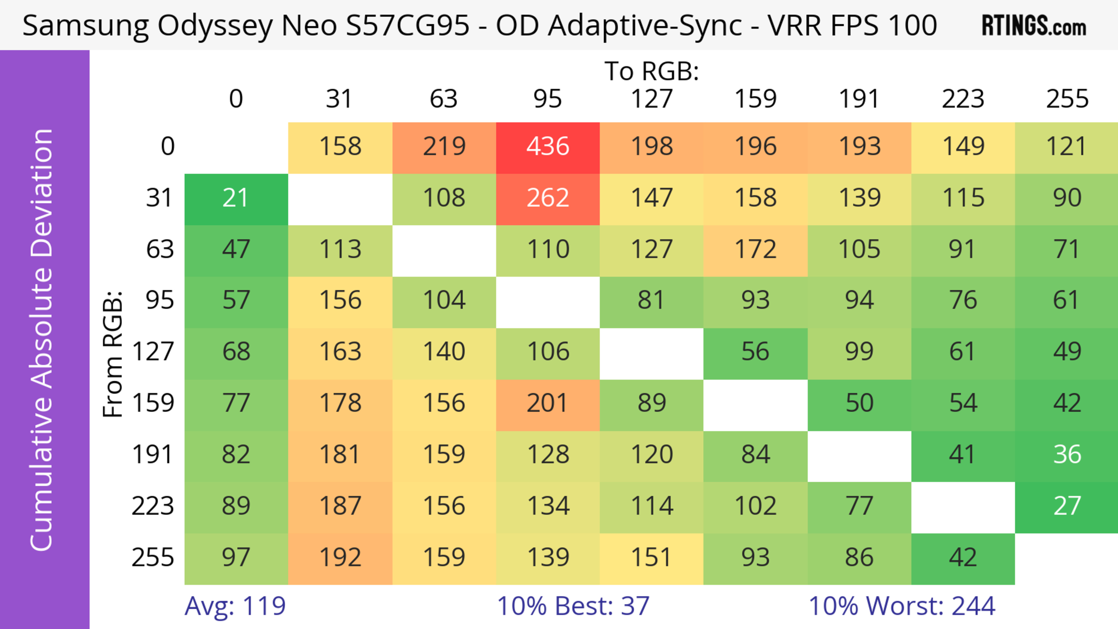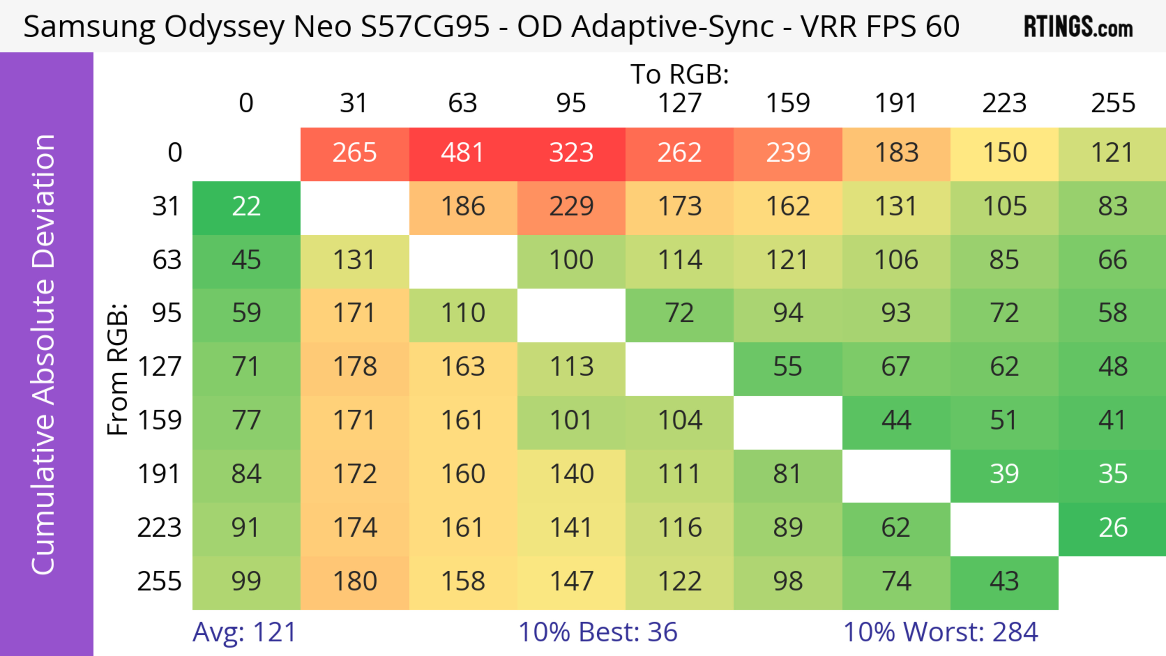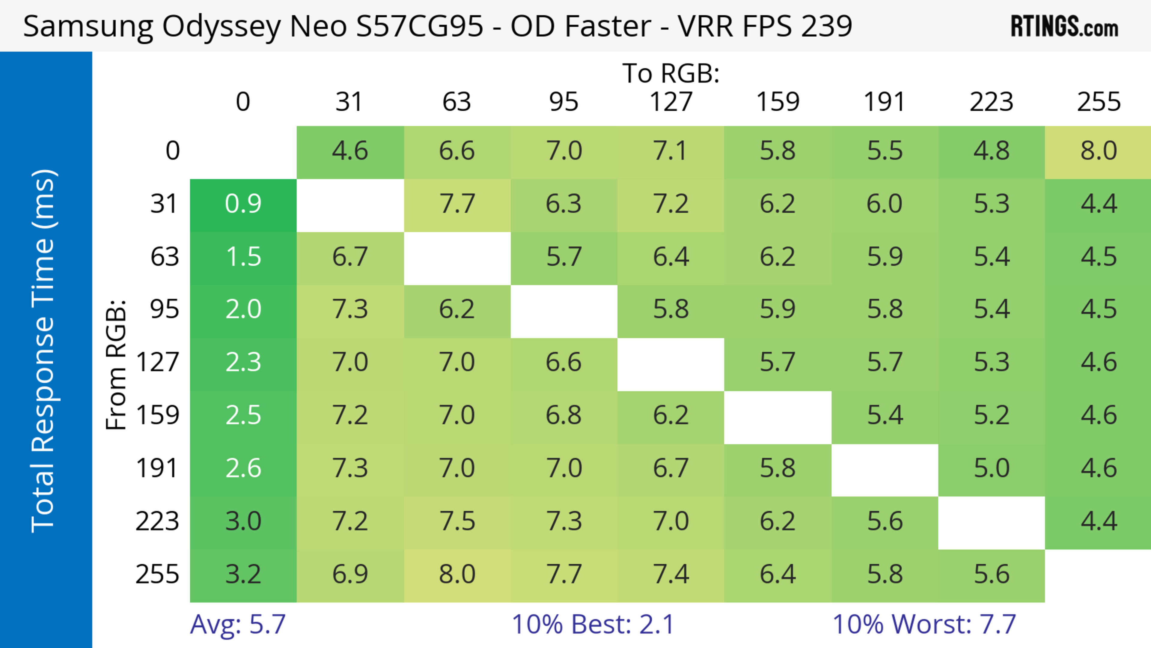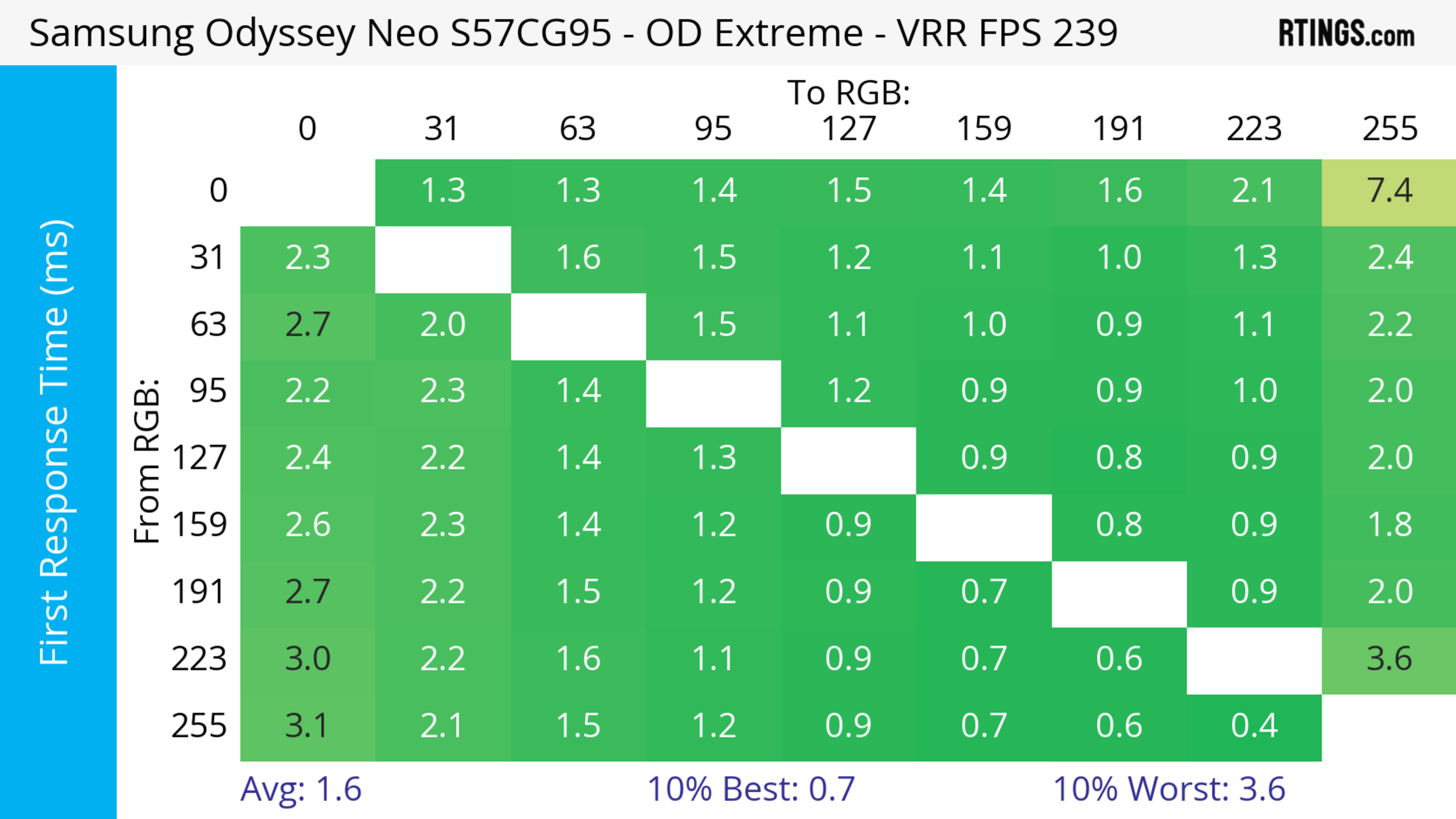 The motion handling is excellent across the VRR range. Using VRR disables any of the overdrive settings, and motion is consistently fast across the refresh rate range, without much blur, but there's still some smearing.