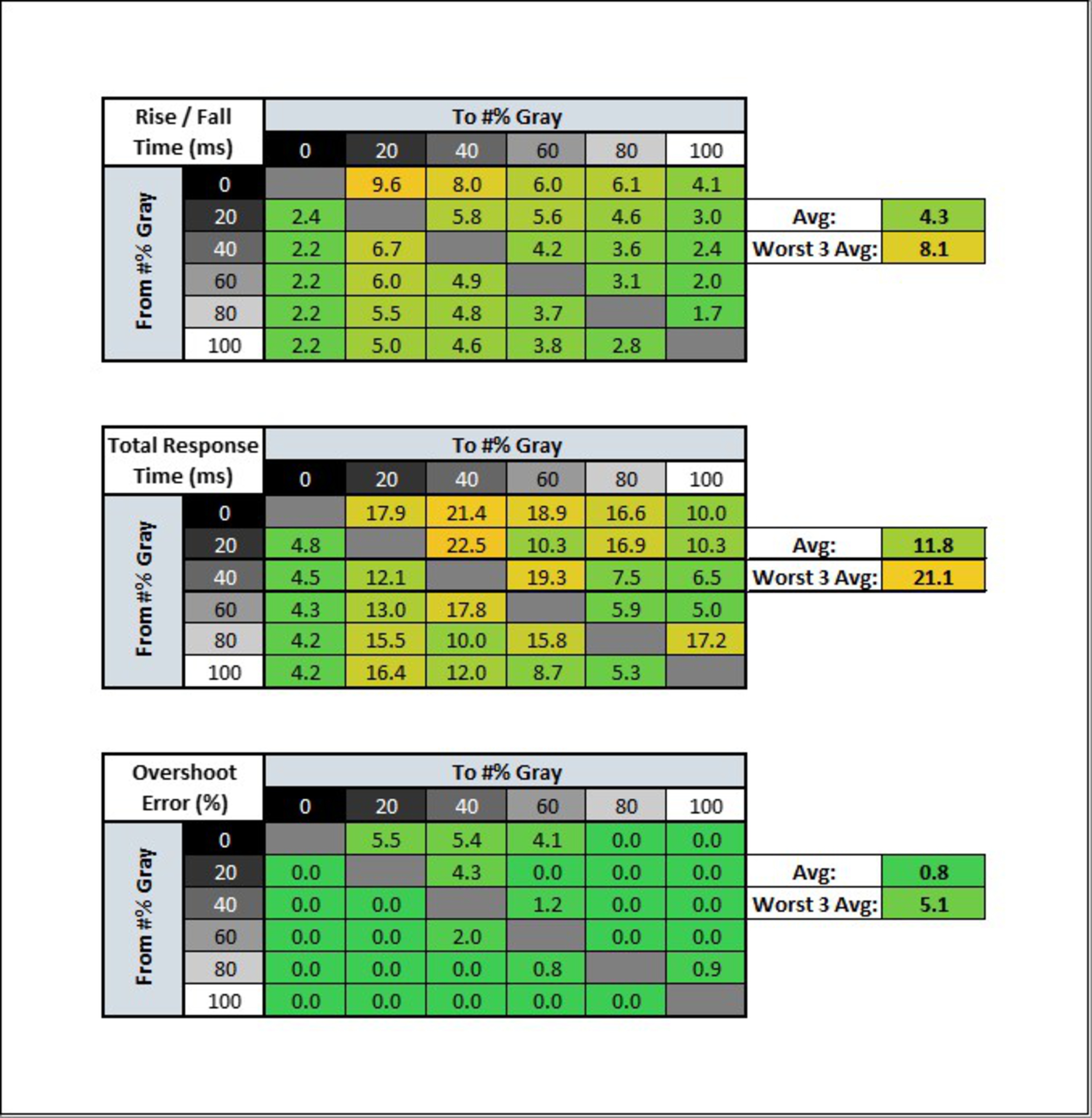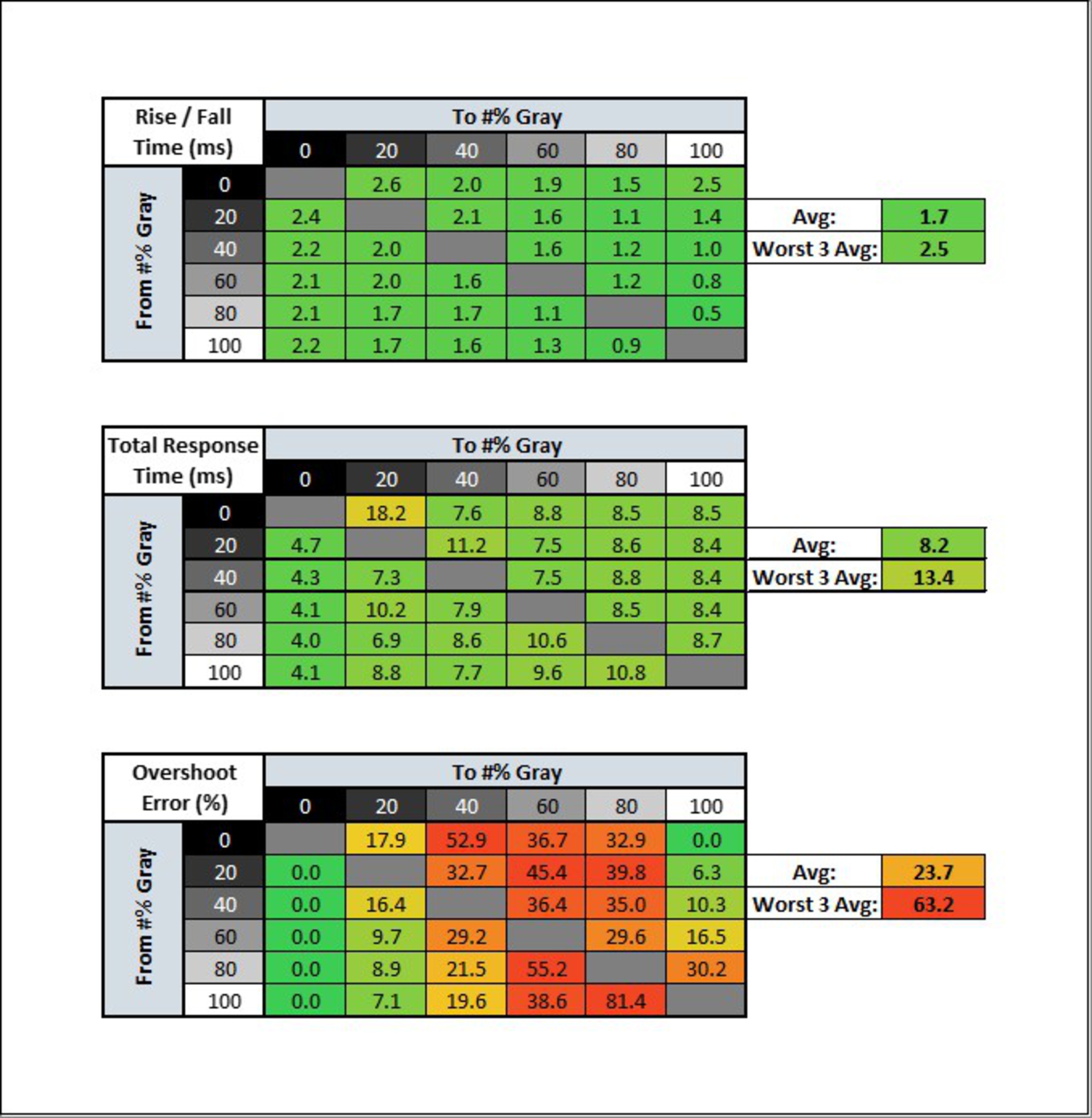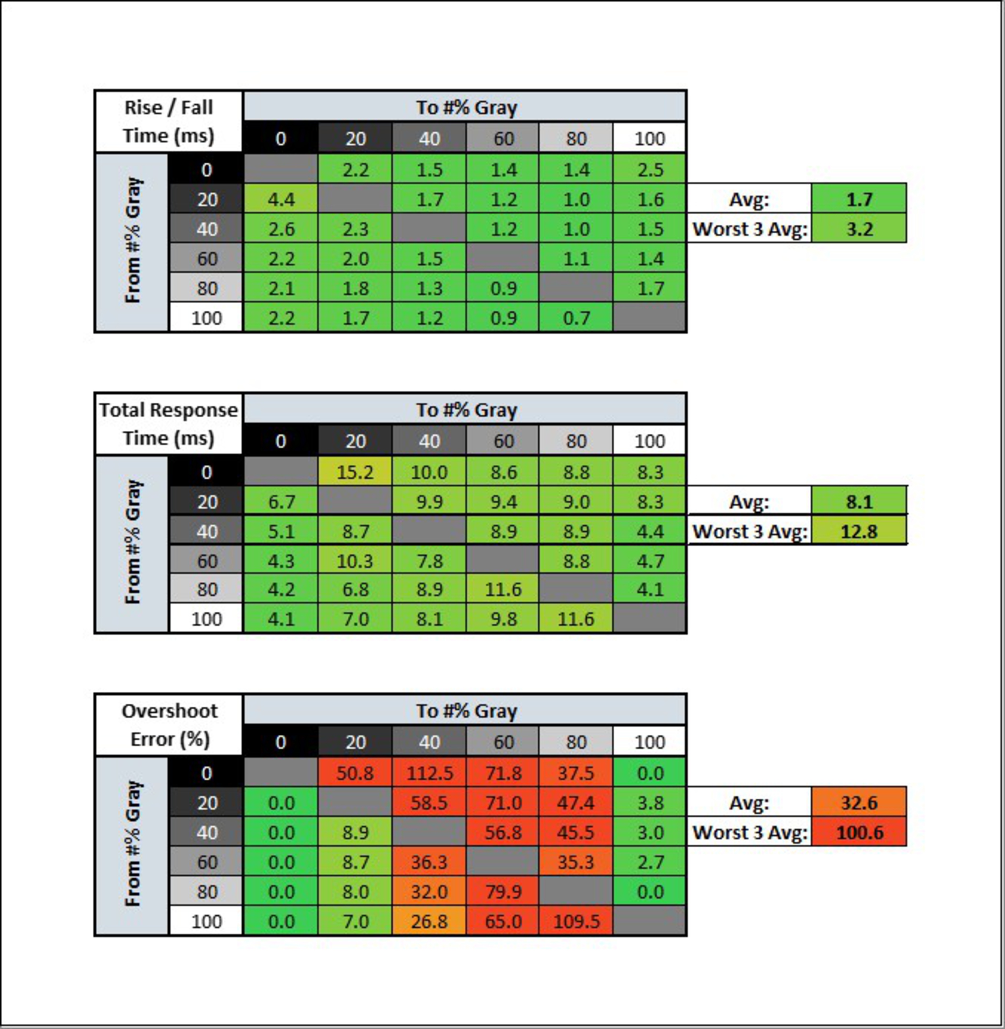 The refresh rate compliance is excellent. It's better than most LED-backlit monitors, as its response time is fast enough to make near-full color transitions with 120Hz and 60Hz signals.