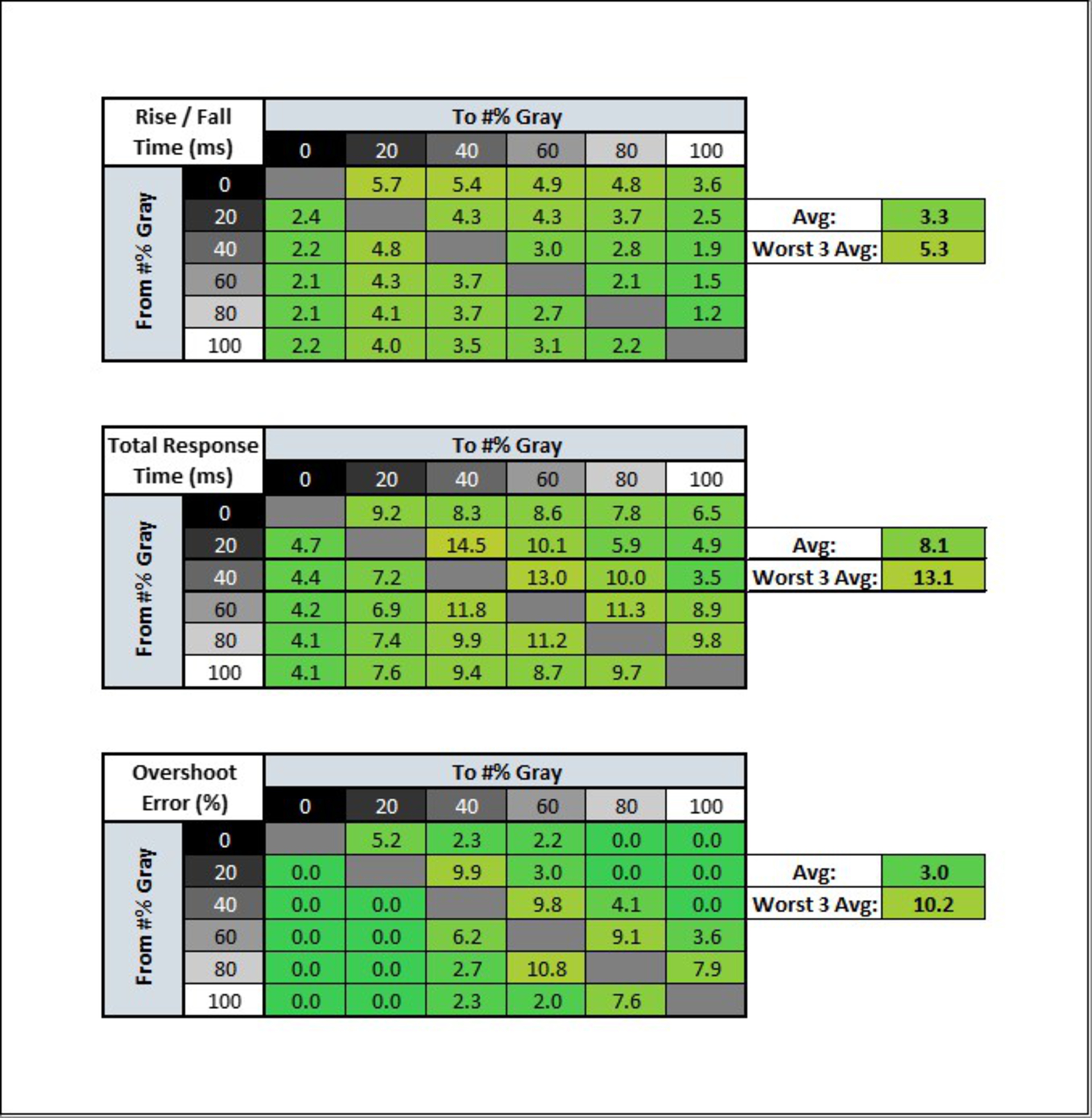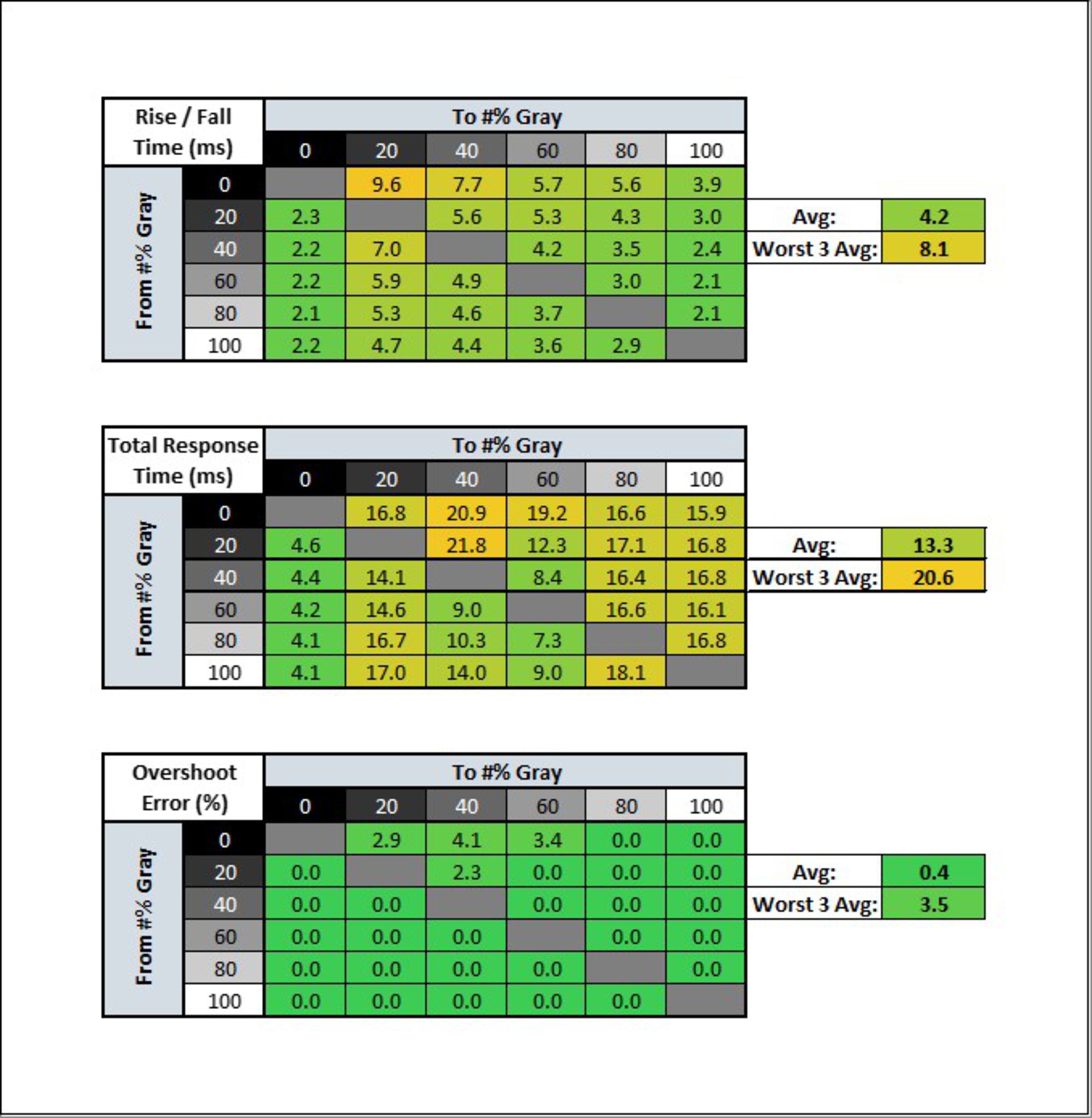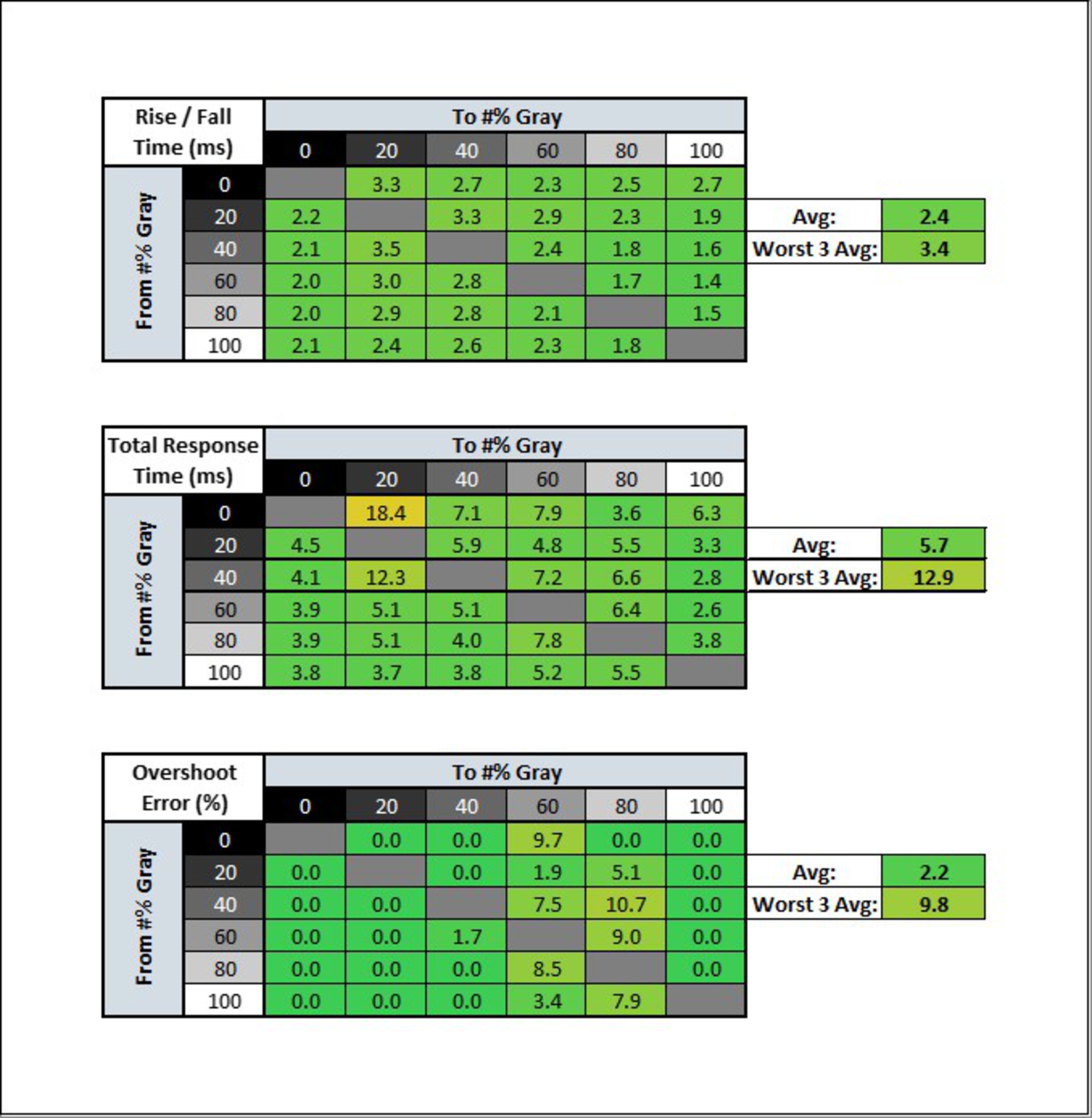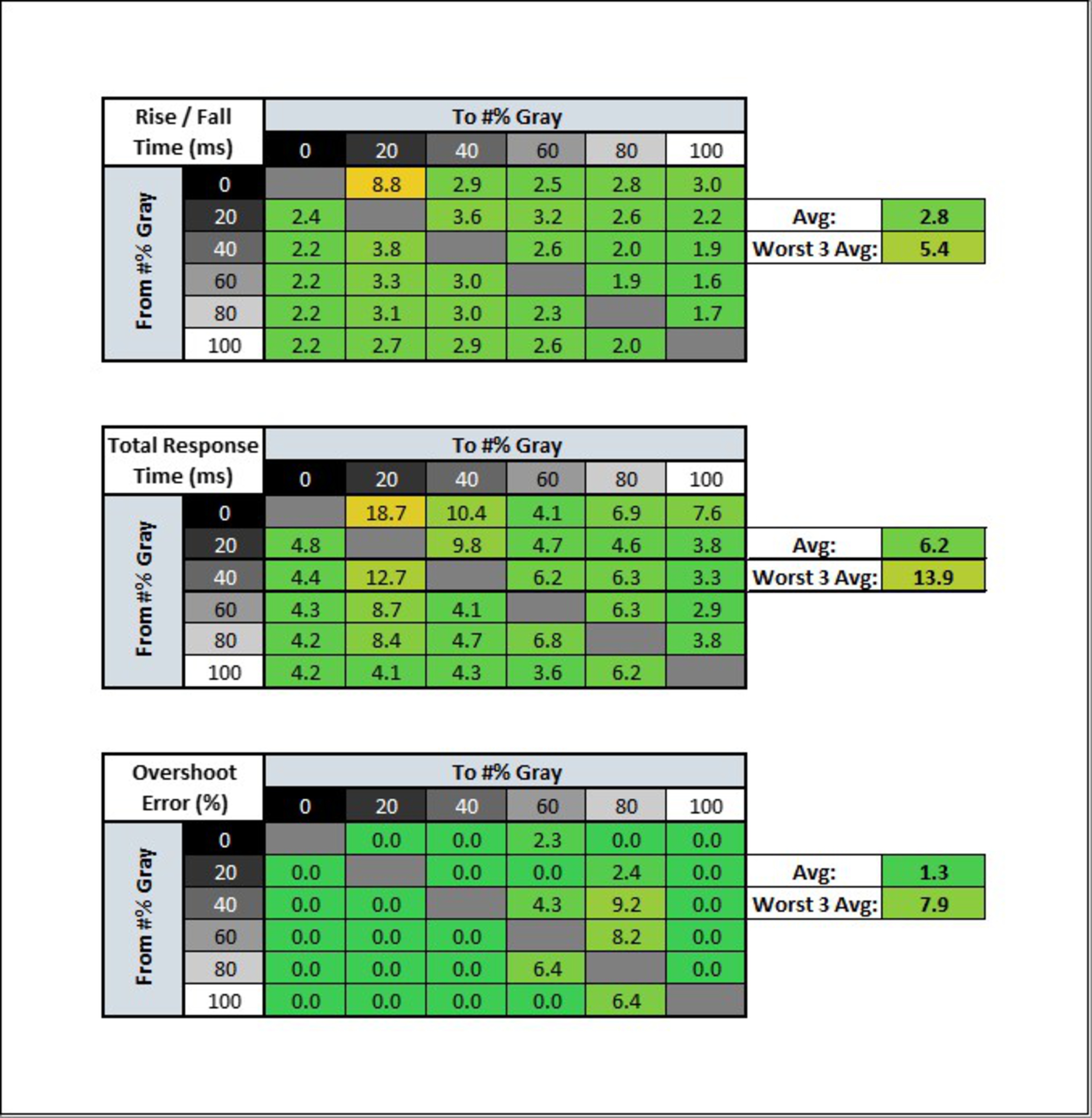 The refresh rate compliance is excellent. It's better than most LED-backlit monitors, as its response time is fast enough to make near-full color transitions with 120Hz and 60Hz signals.