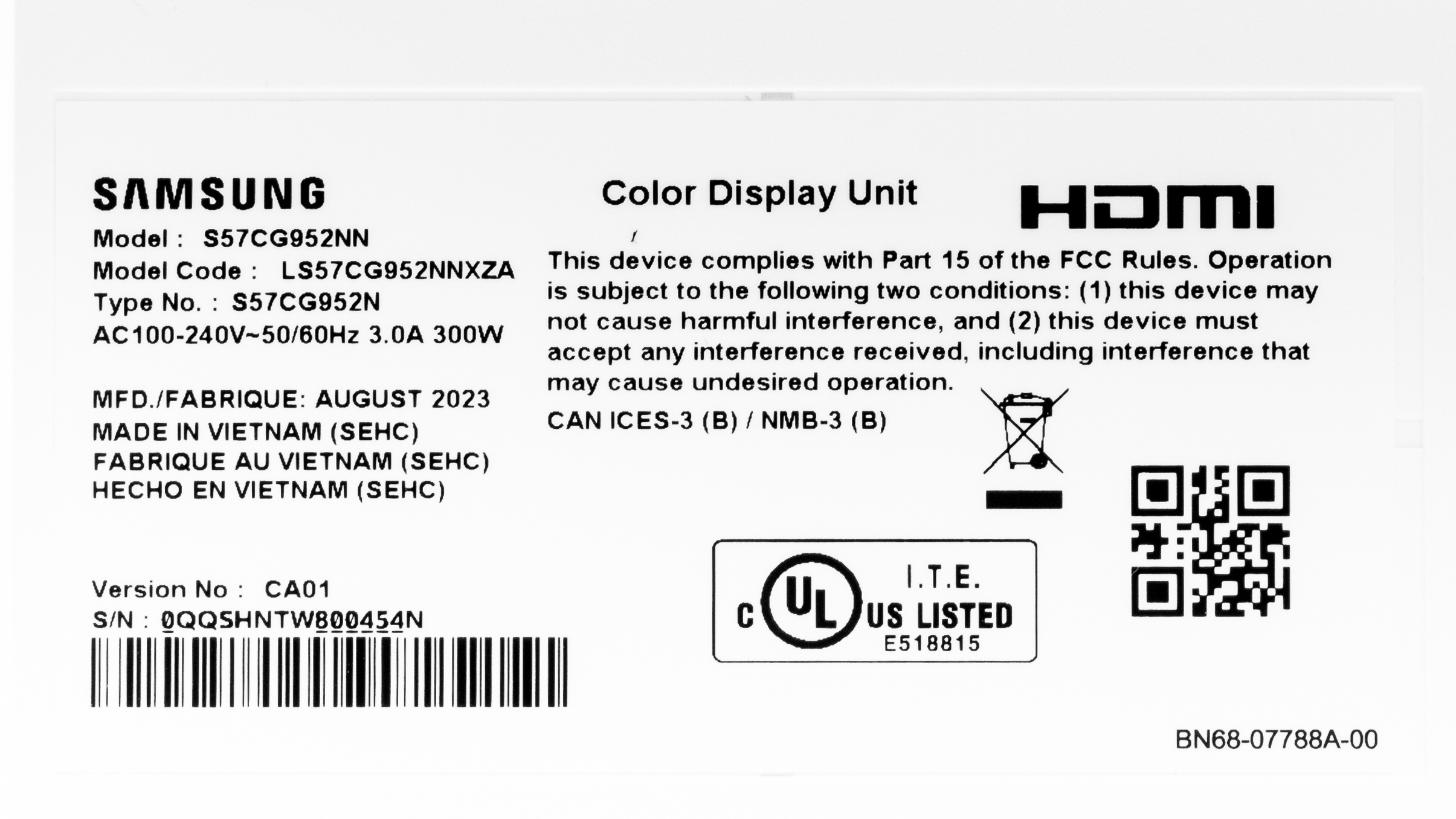 | 57" | Odyssey Neo G9 | S57CG952NN | VA | 240Hz | 7680x2160 | 2.1 |