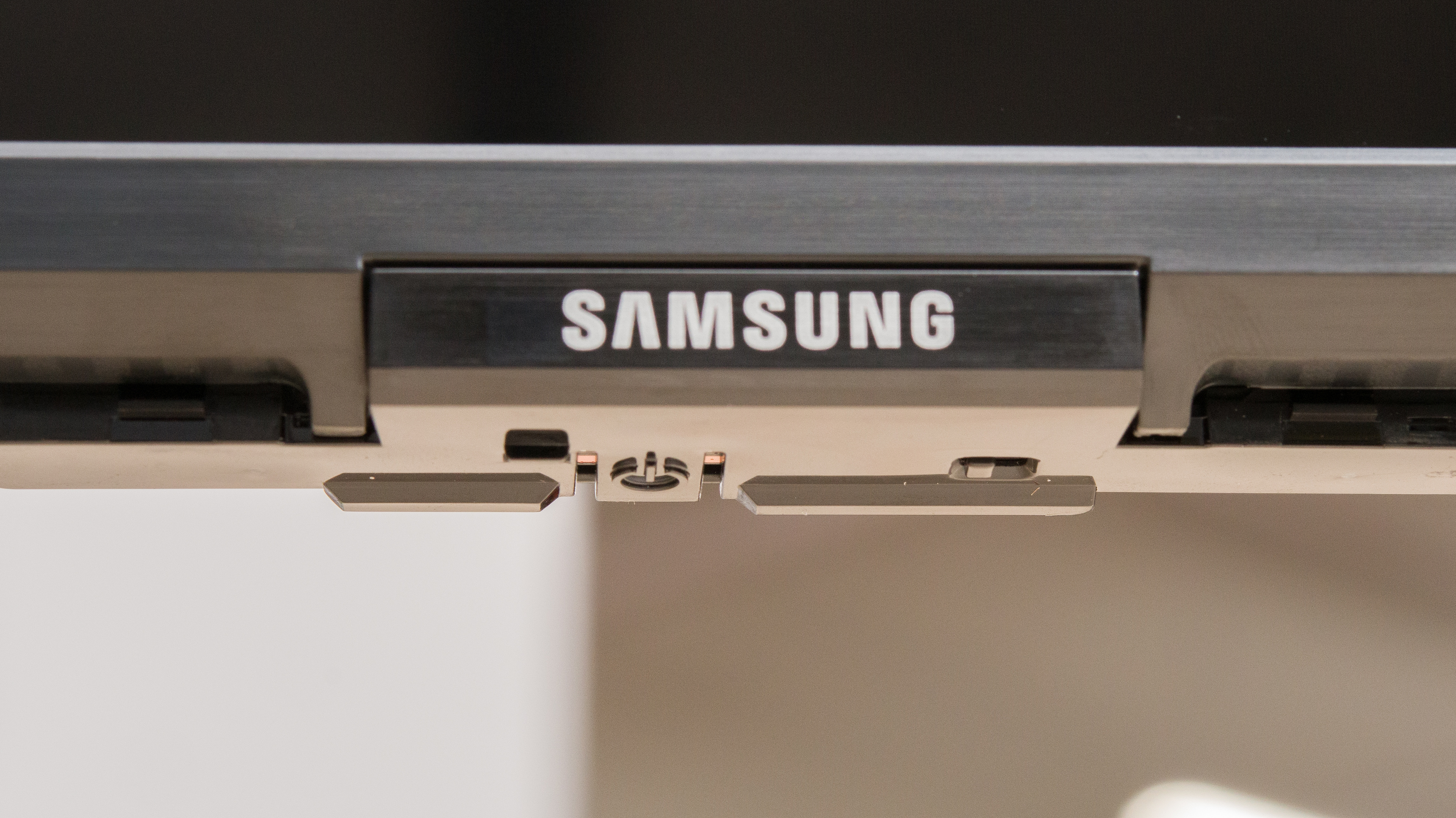 Unlike most monitors, there's an included remote control to navigate the settings and apps. There's a physical button along the bottom bezel; this just serves to turn the monitor on/off. This monitor has a built-in far-field microphone for hands-free voice control. If you're concerned about privacy, there's a physical switch to disable the mic next to the power button.