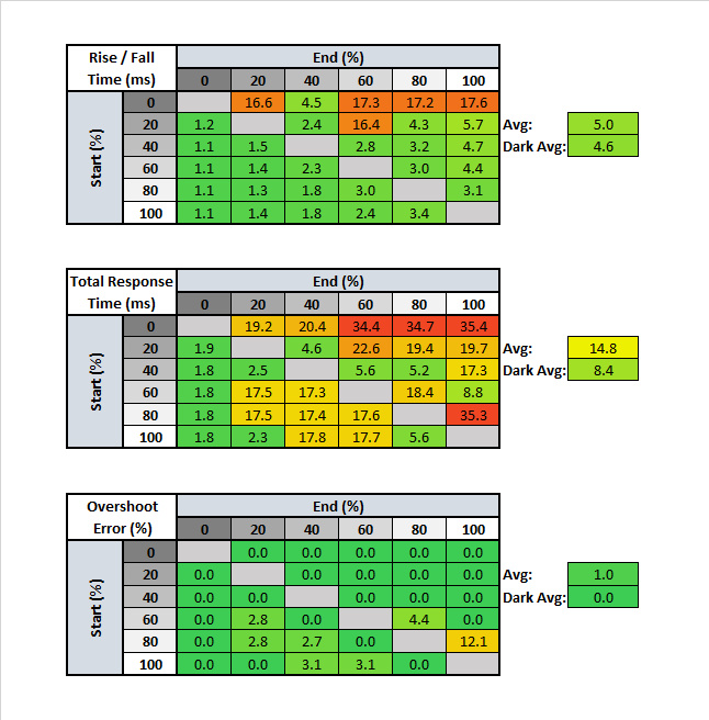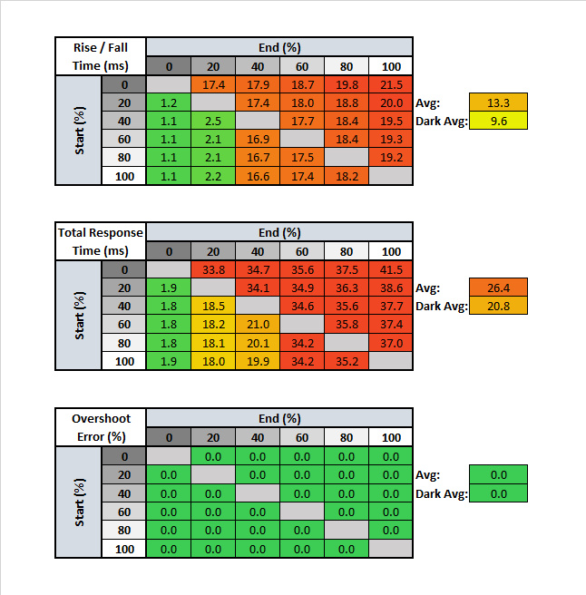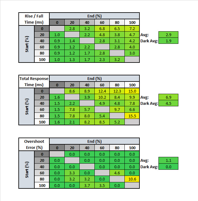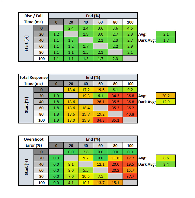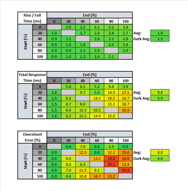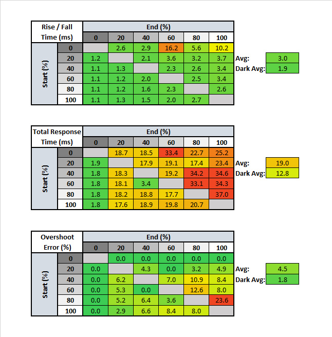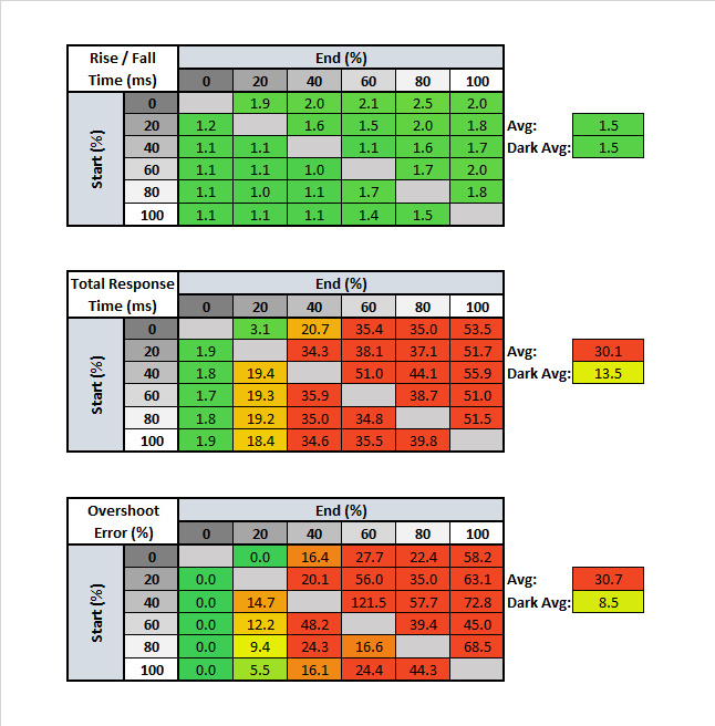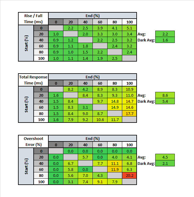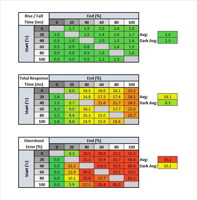 | Rampage Response Setting | Response Time Chart | Response Time Tables | Motion Blur Photo |