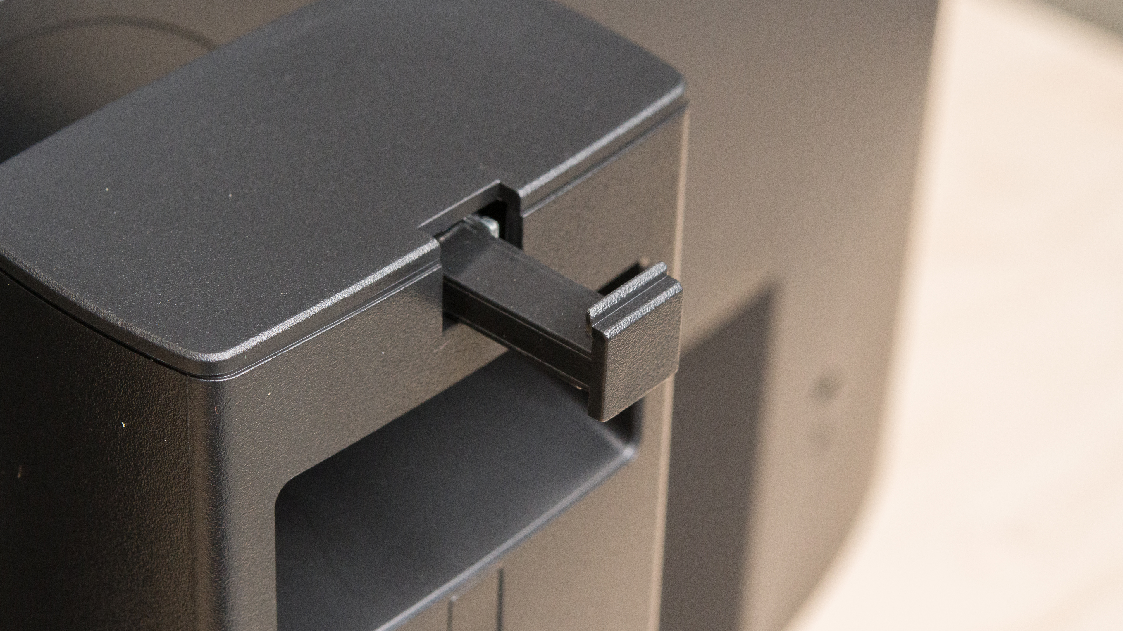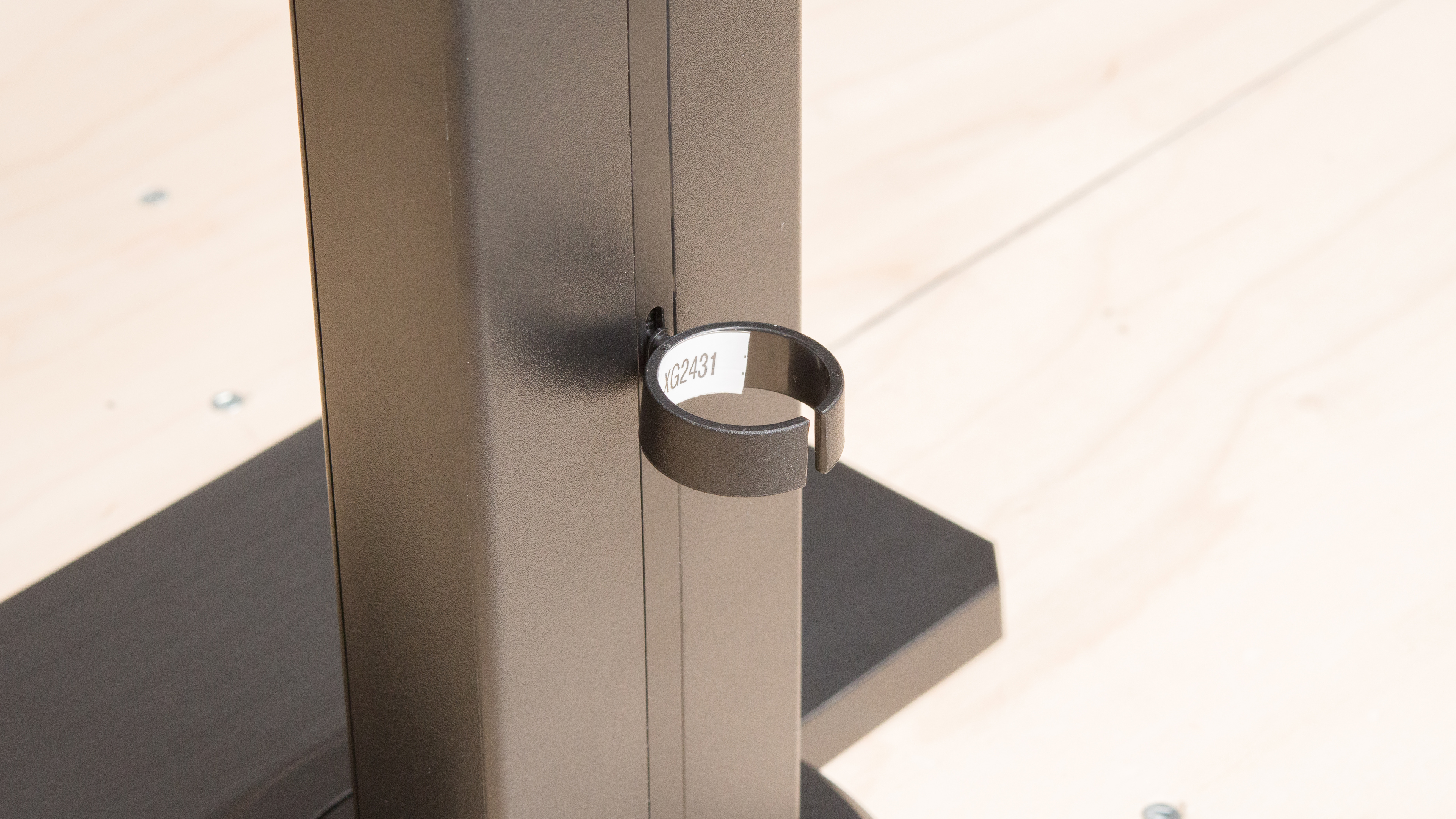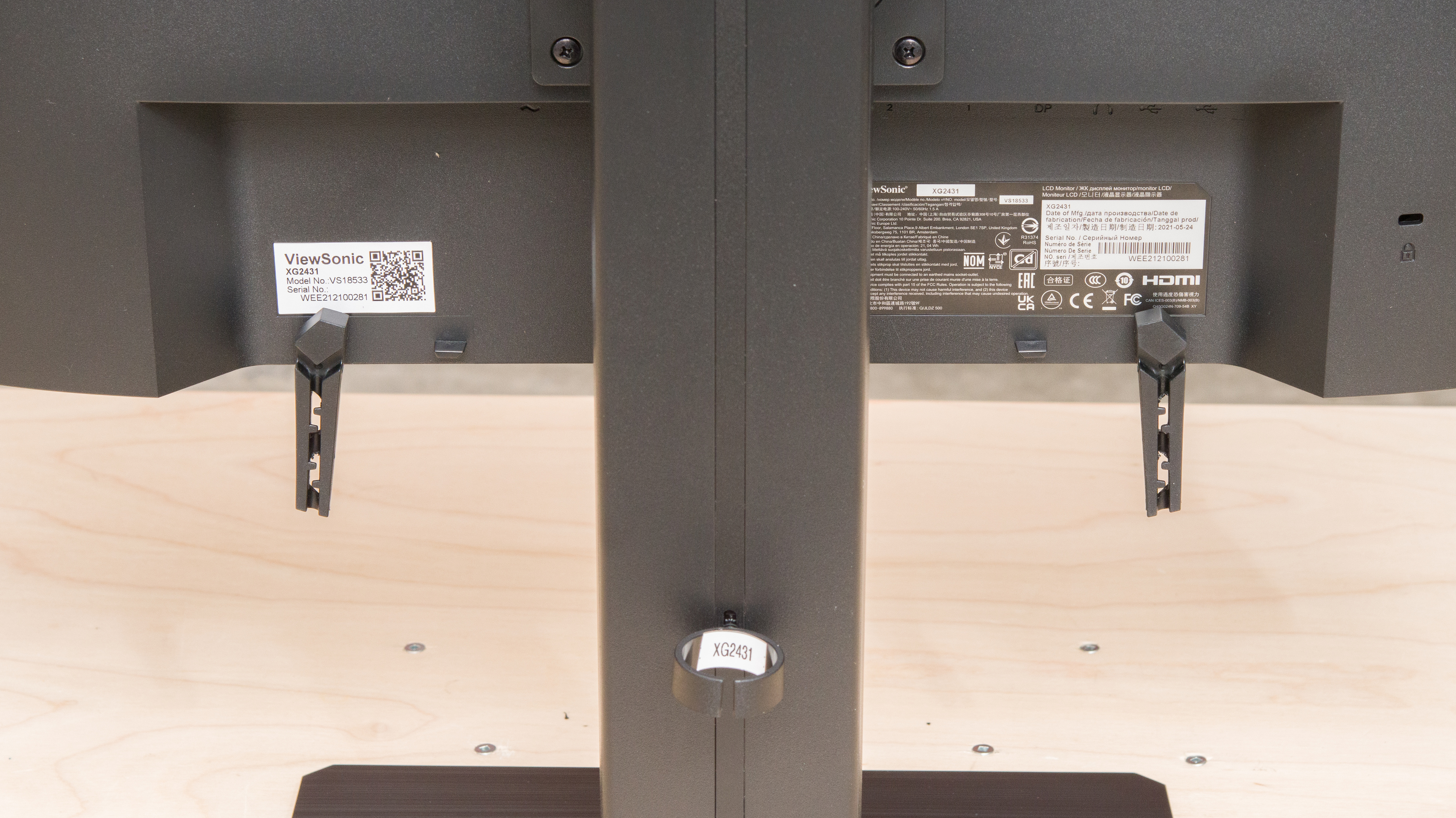The ViewSonic OMNI XG2431 has excellent ergonomics. It's easy to adjust, but because you can only rotate it into portrait mode in one direction, the inputs always face to the left. Luckily, there's a detachable hook that you can use for cable management.
