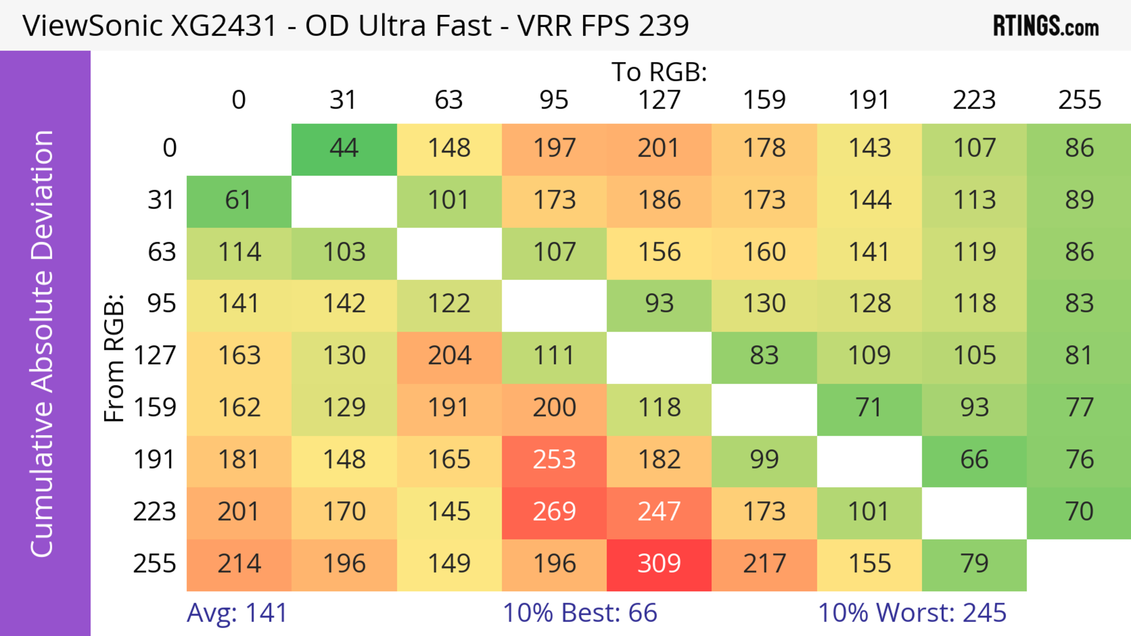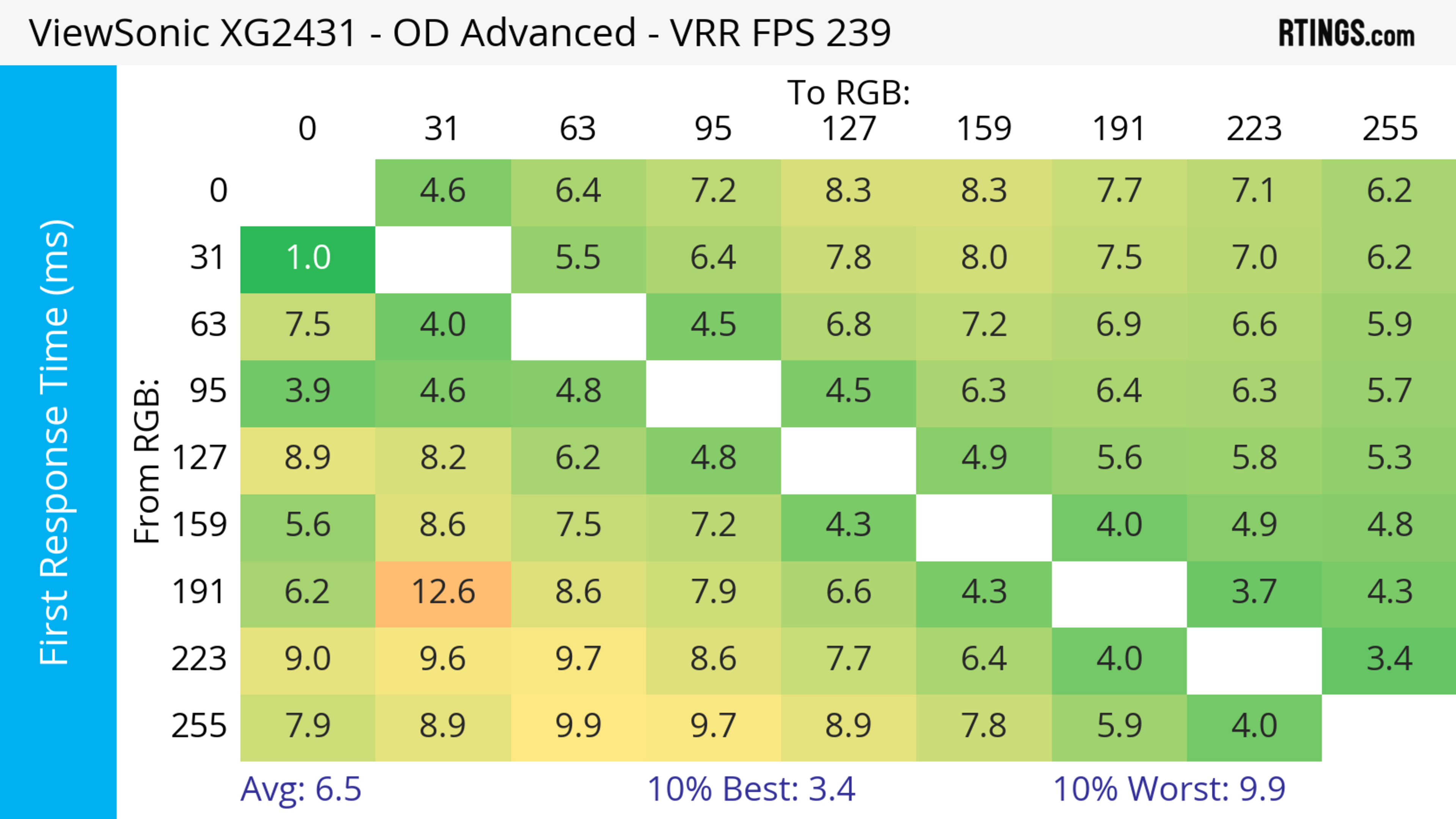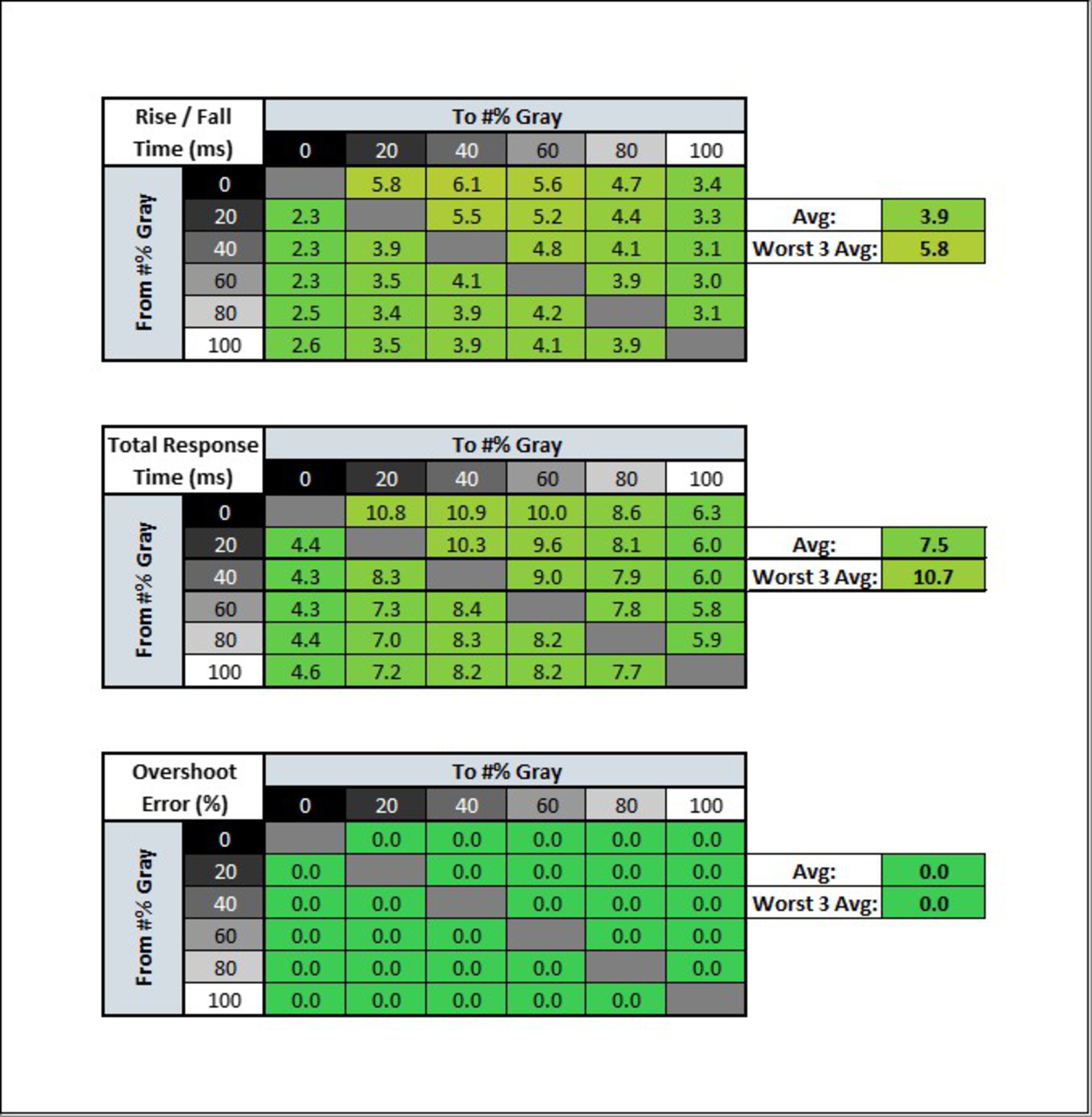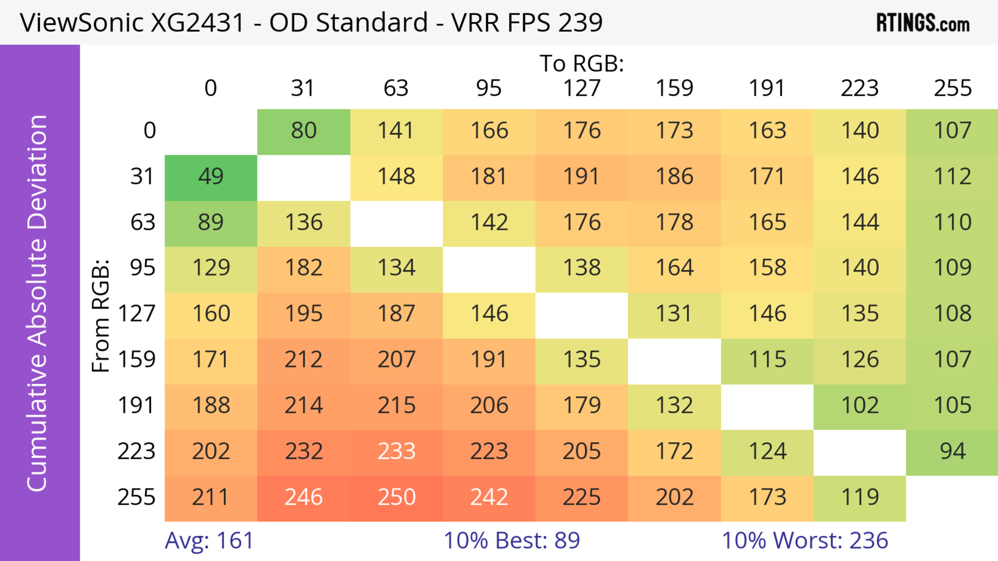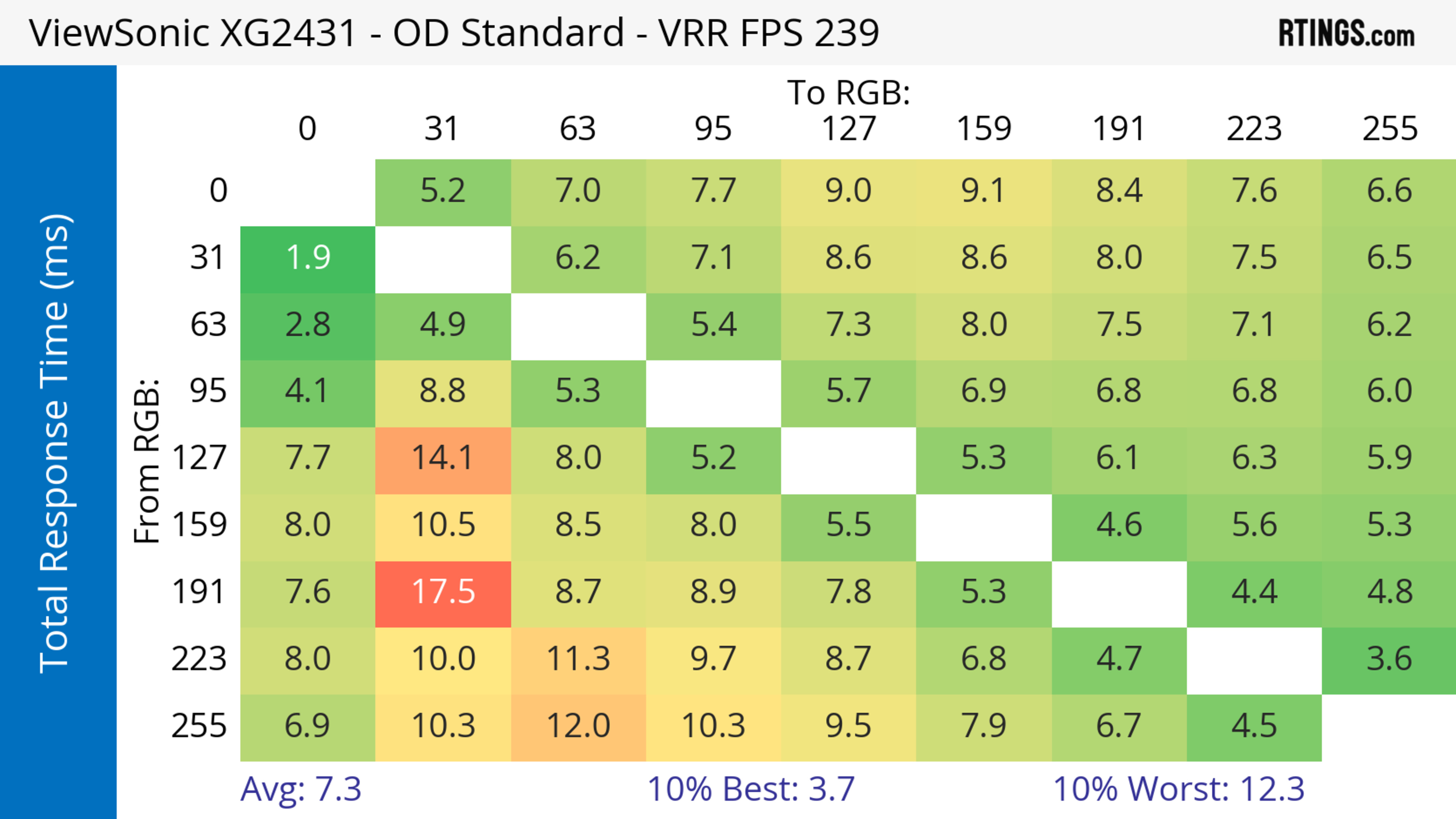 The refresh rate compliance is great. Although its response time isn't fast enough to make full color transitions at 240Hz, it's a lot better at lower refresh rates.