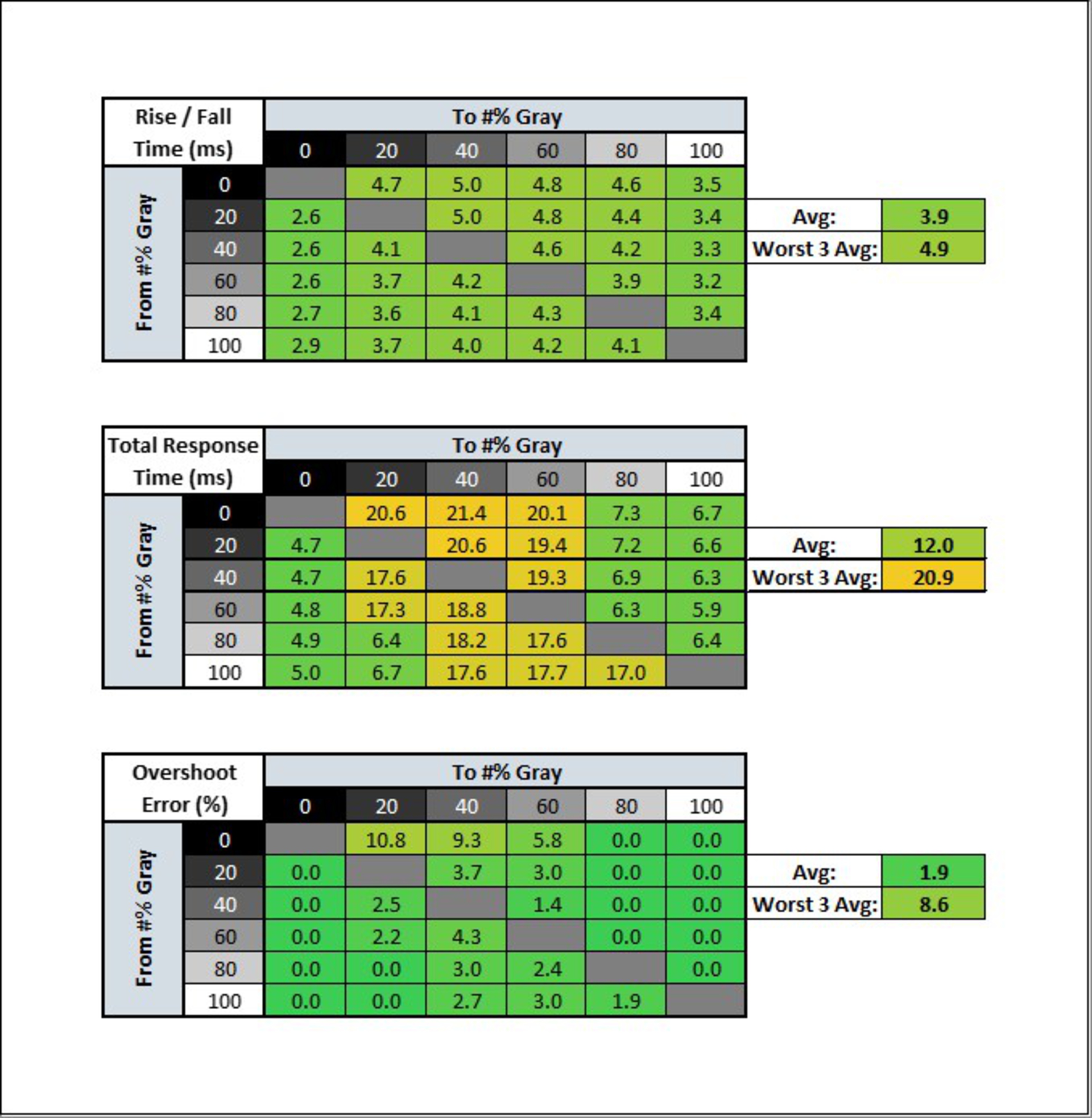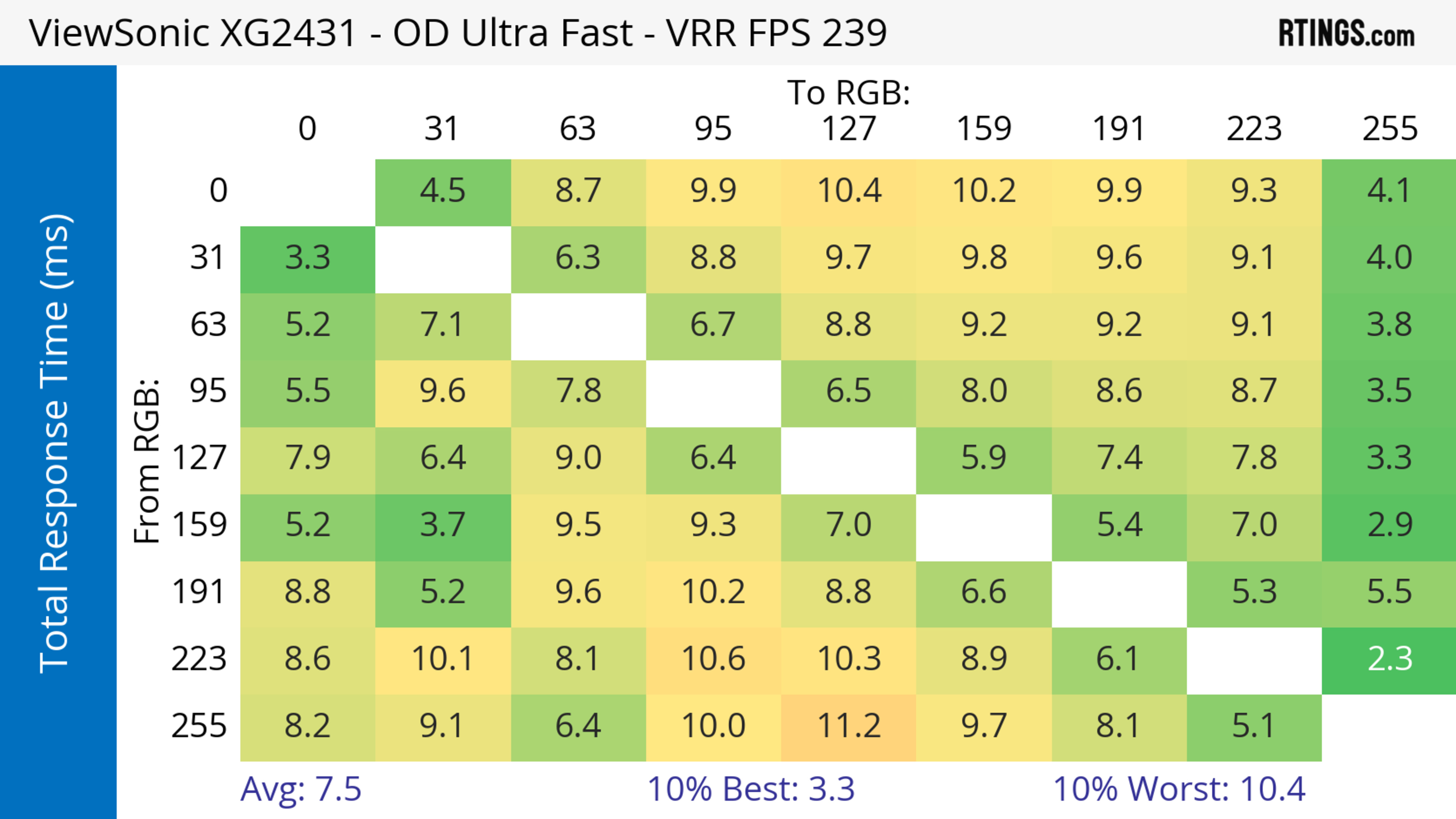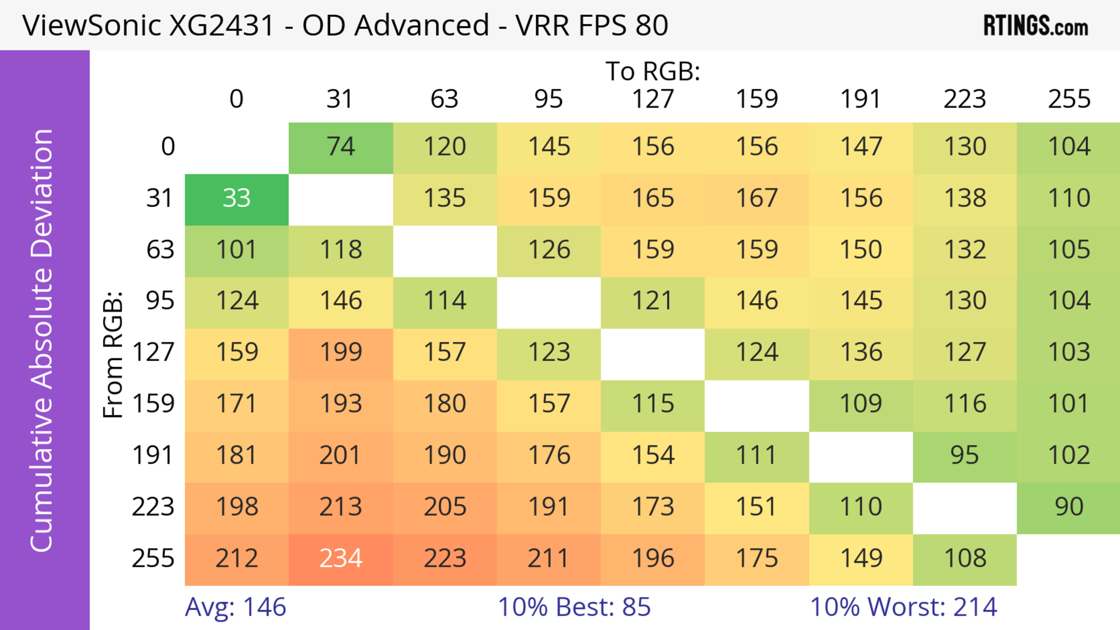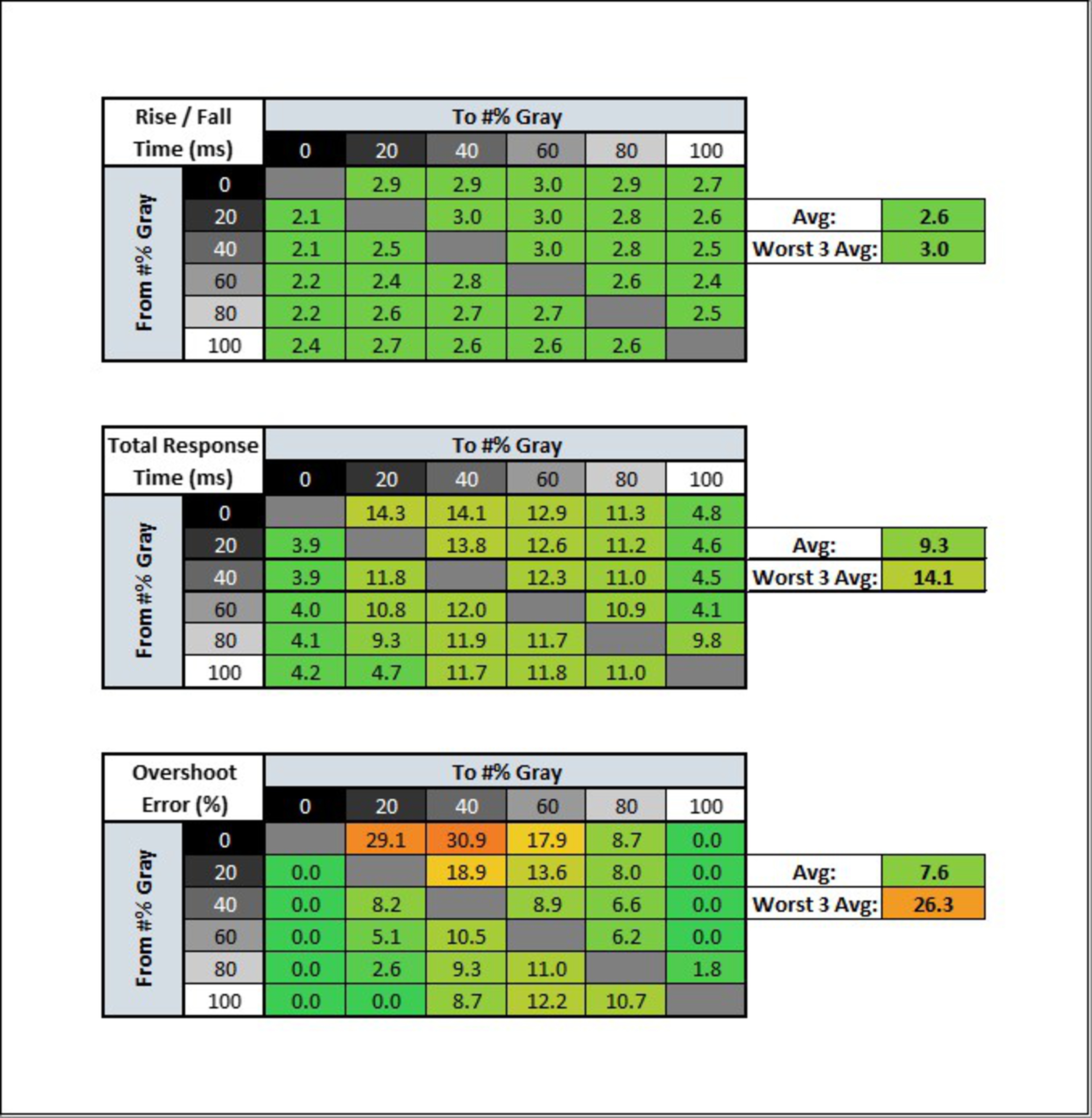 The refresh rate compliance is great. Although its response time isn't fast enough to make full color transitions at 240Hz, it's a lot better at lower refresh rates.