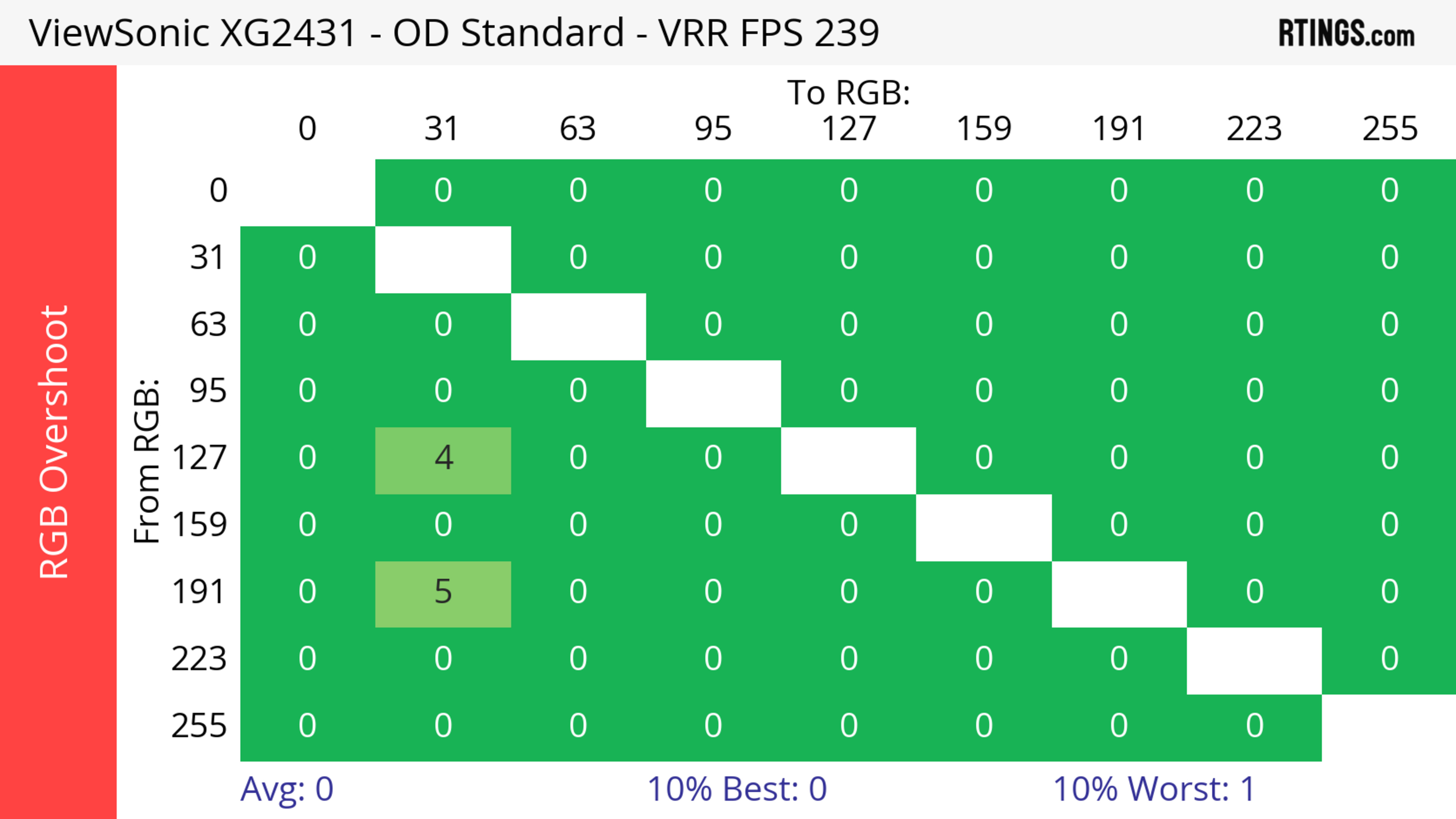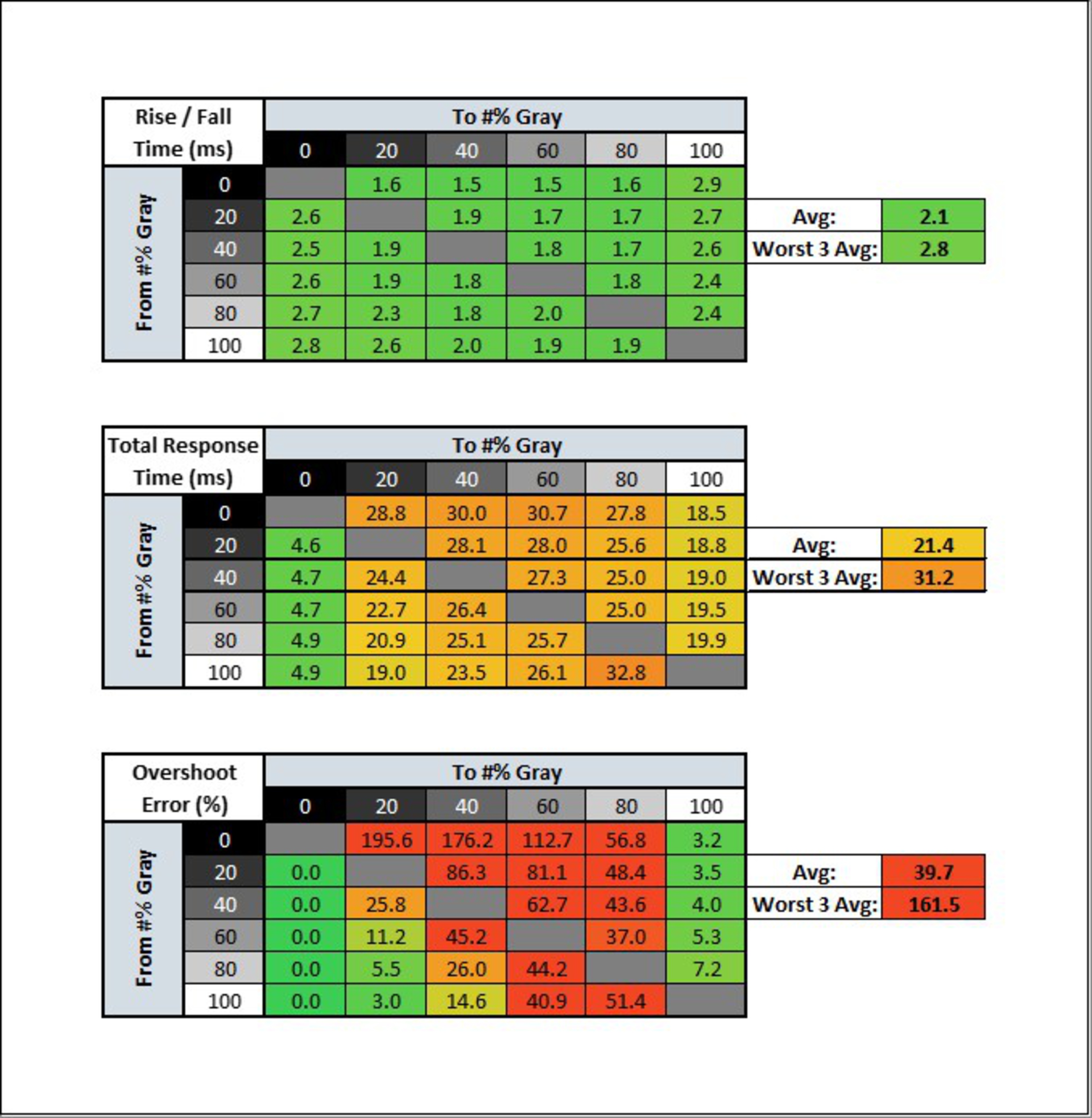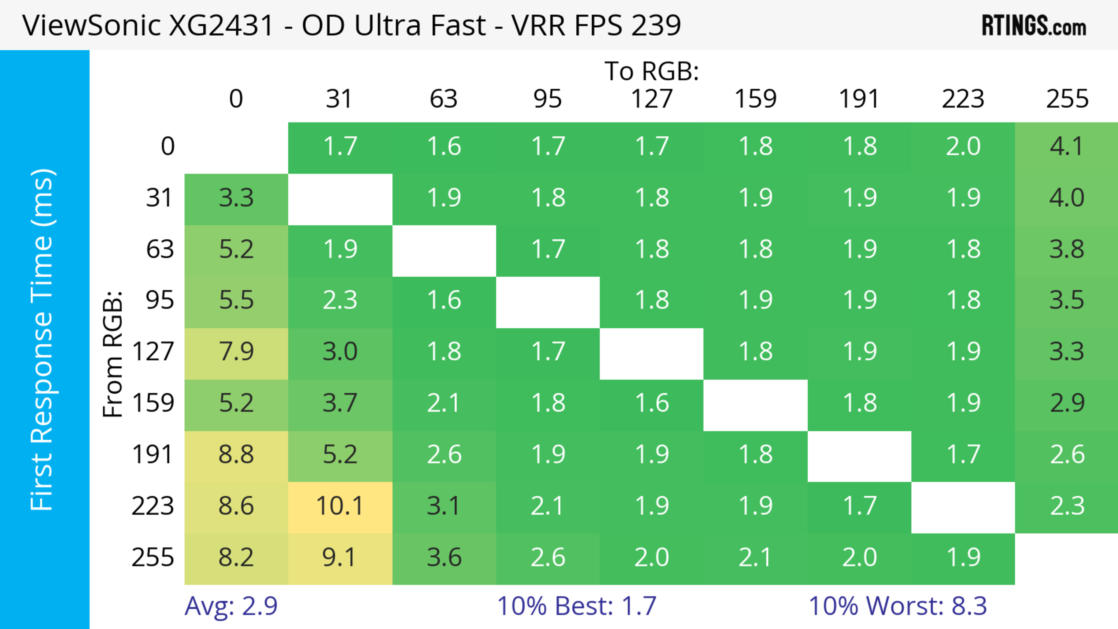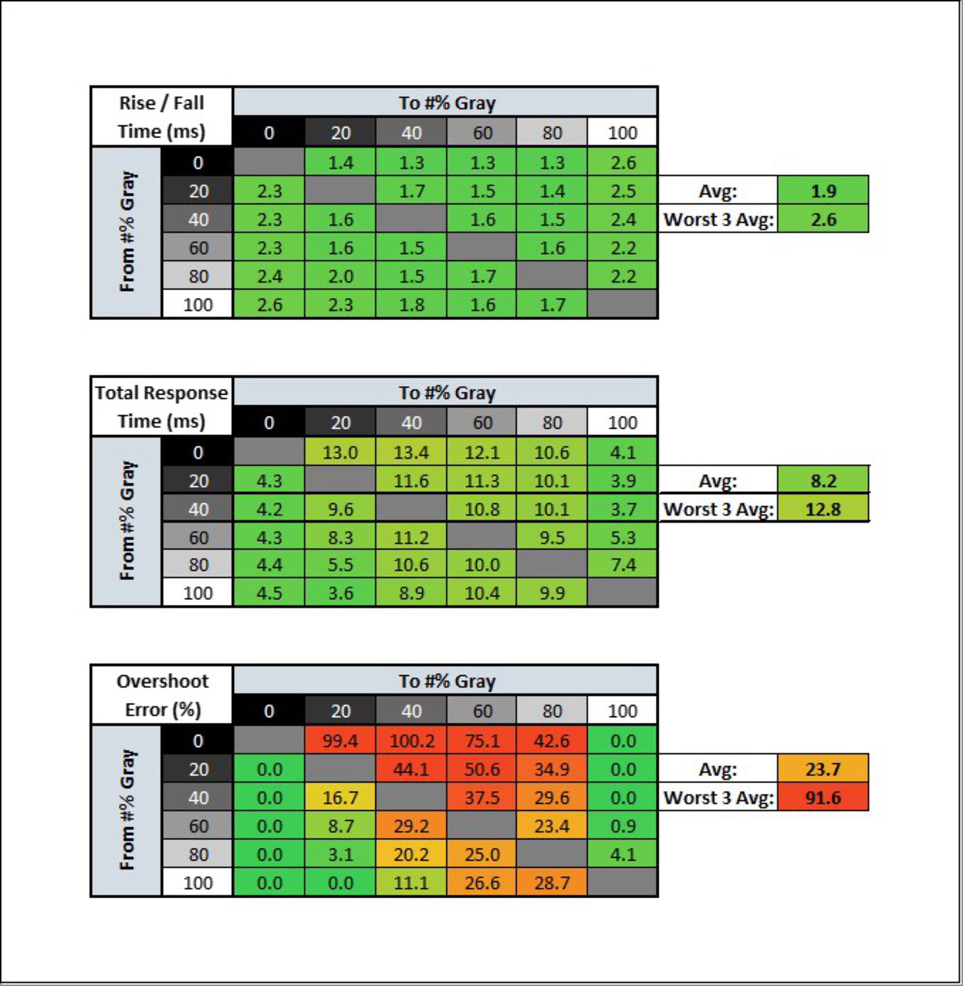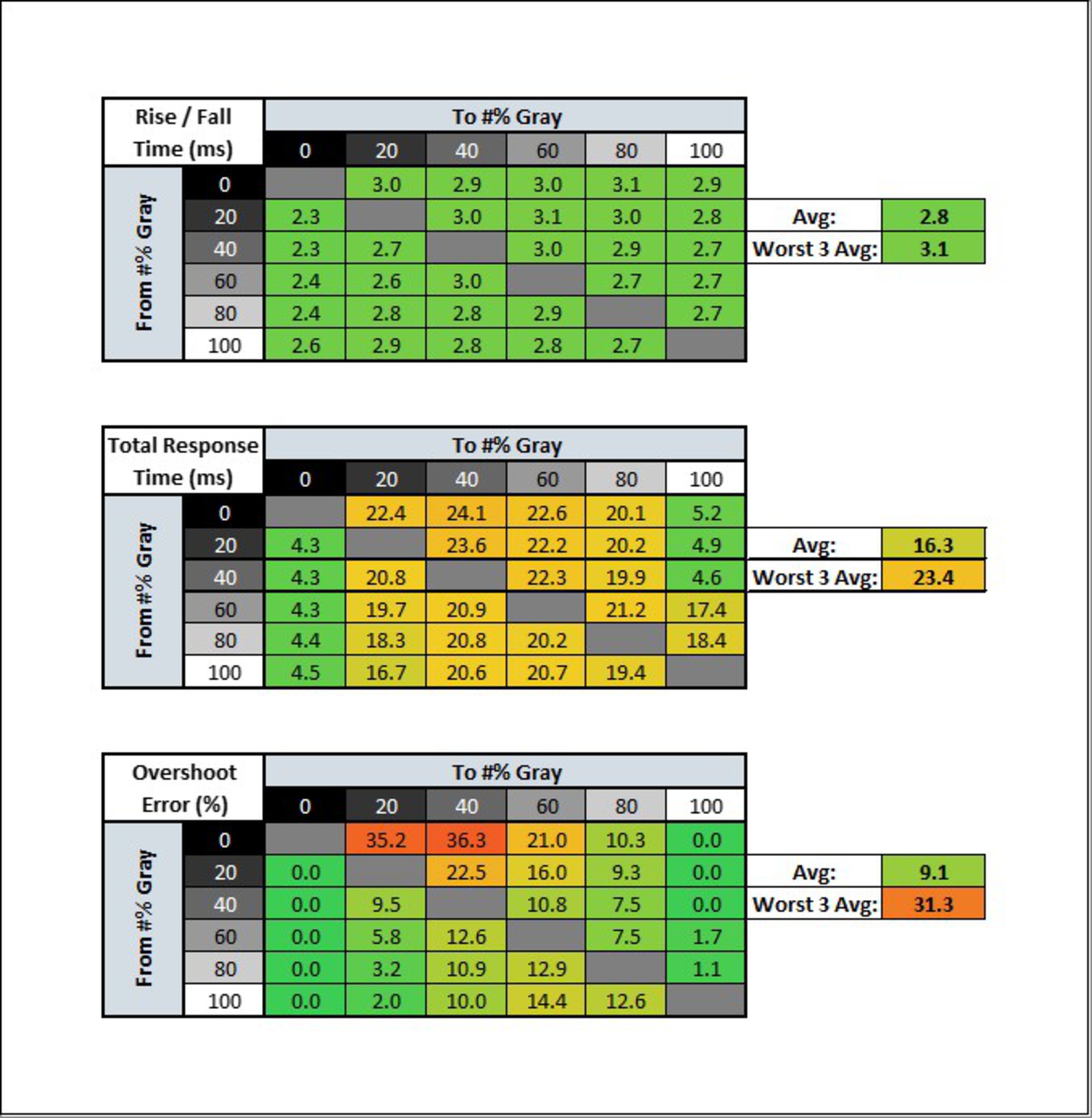 The refresh rate compliance is great. Although its response time isn't fast enough to make full color transitions at 240Hz, it's a lot better at lower refresh rates.