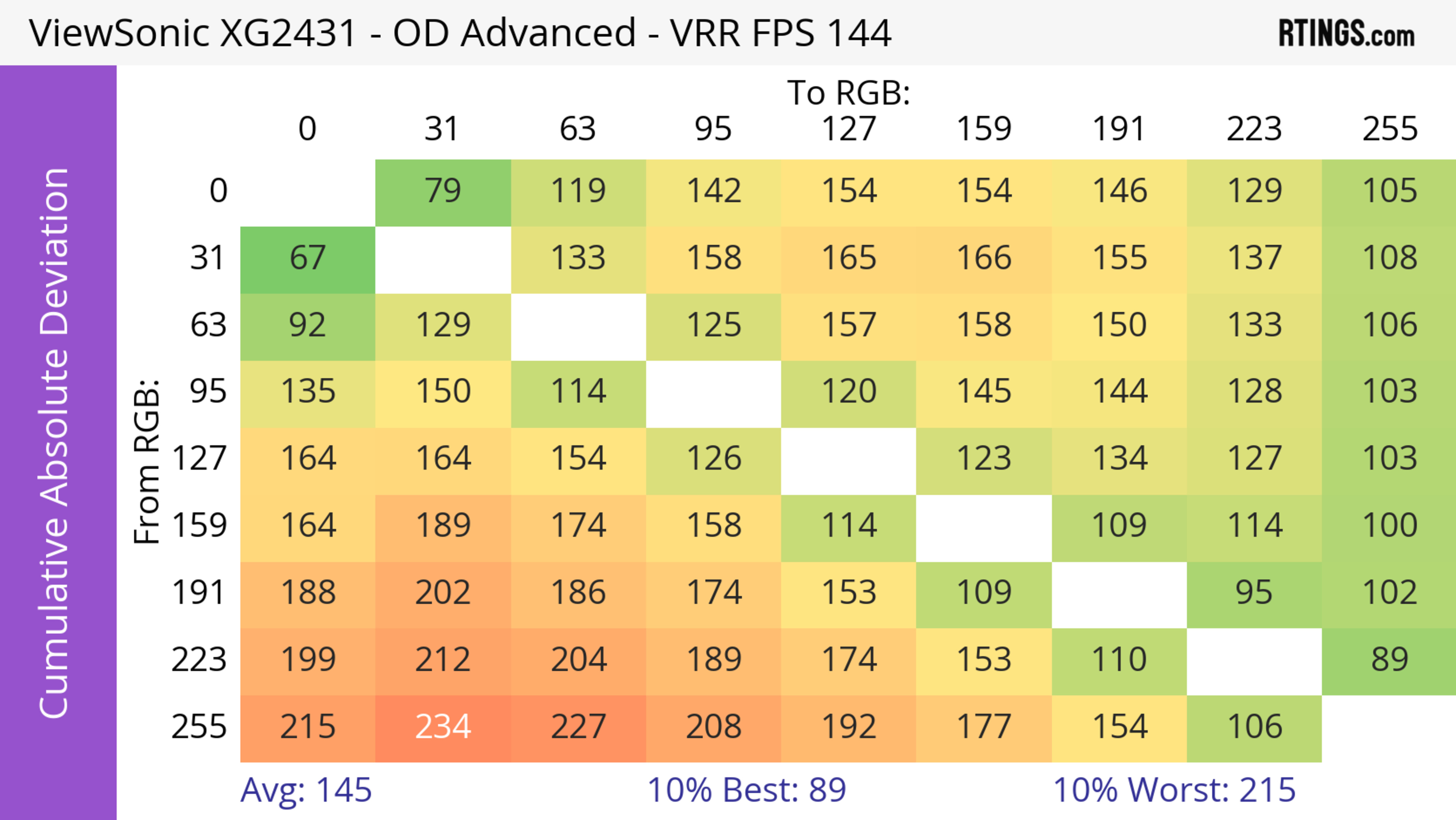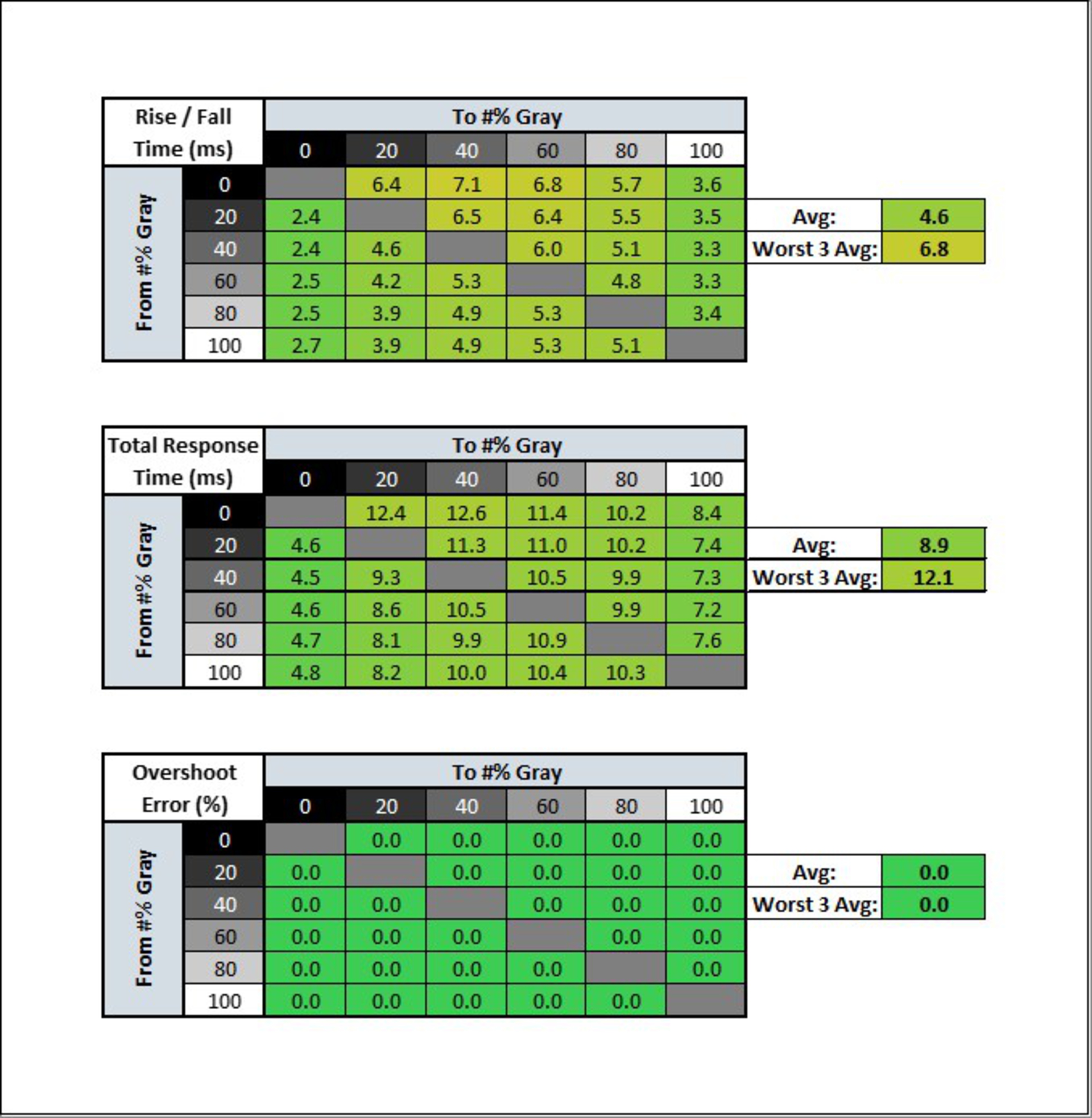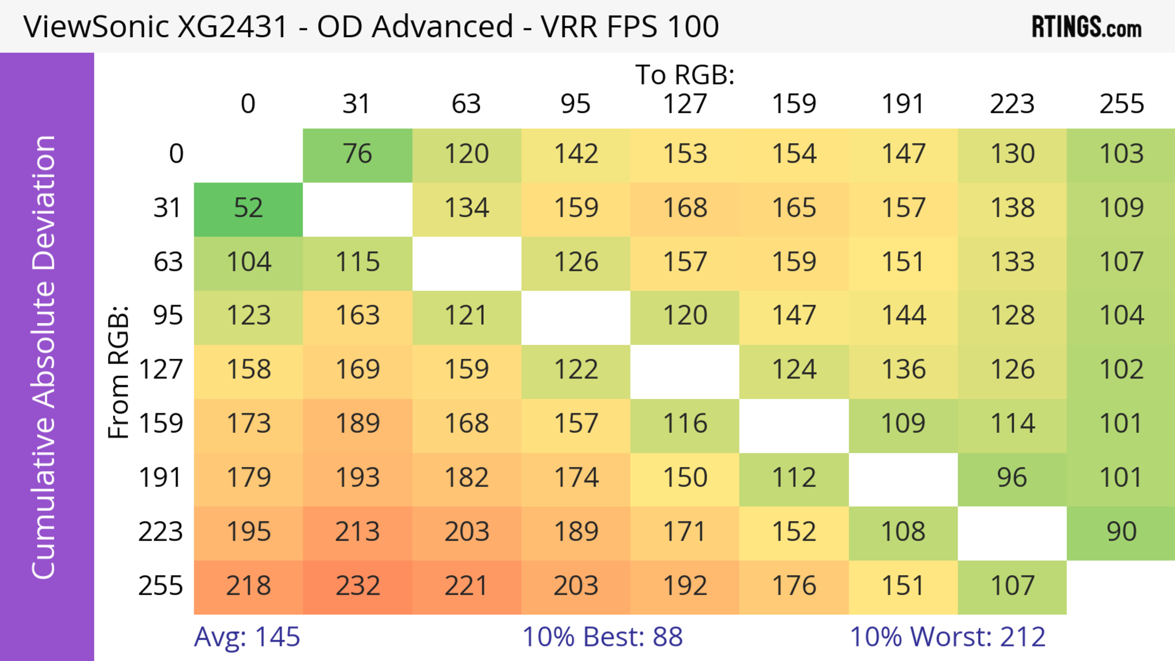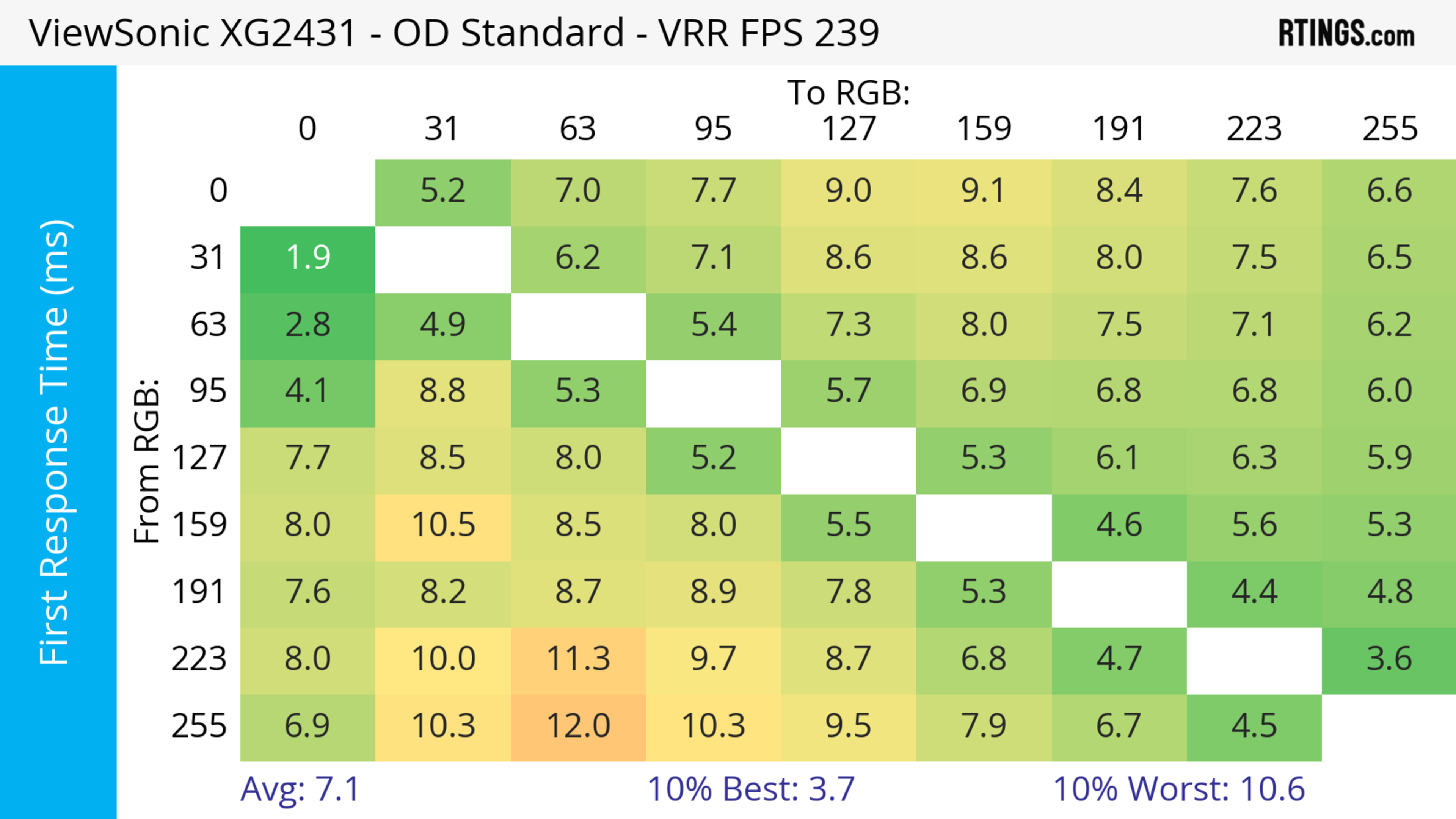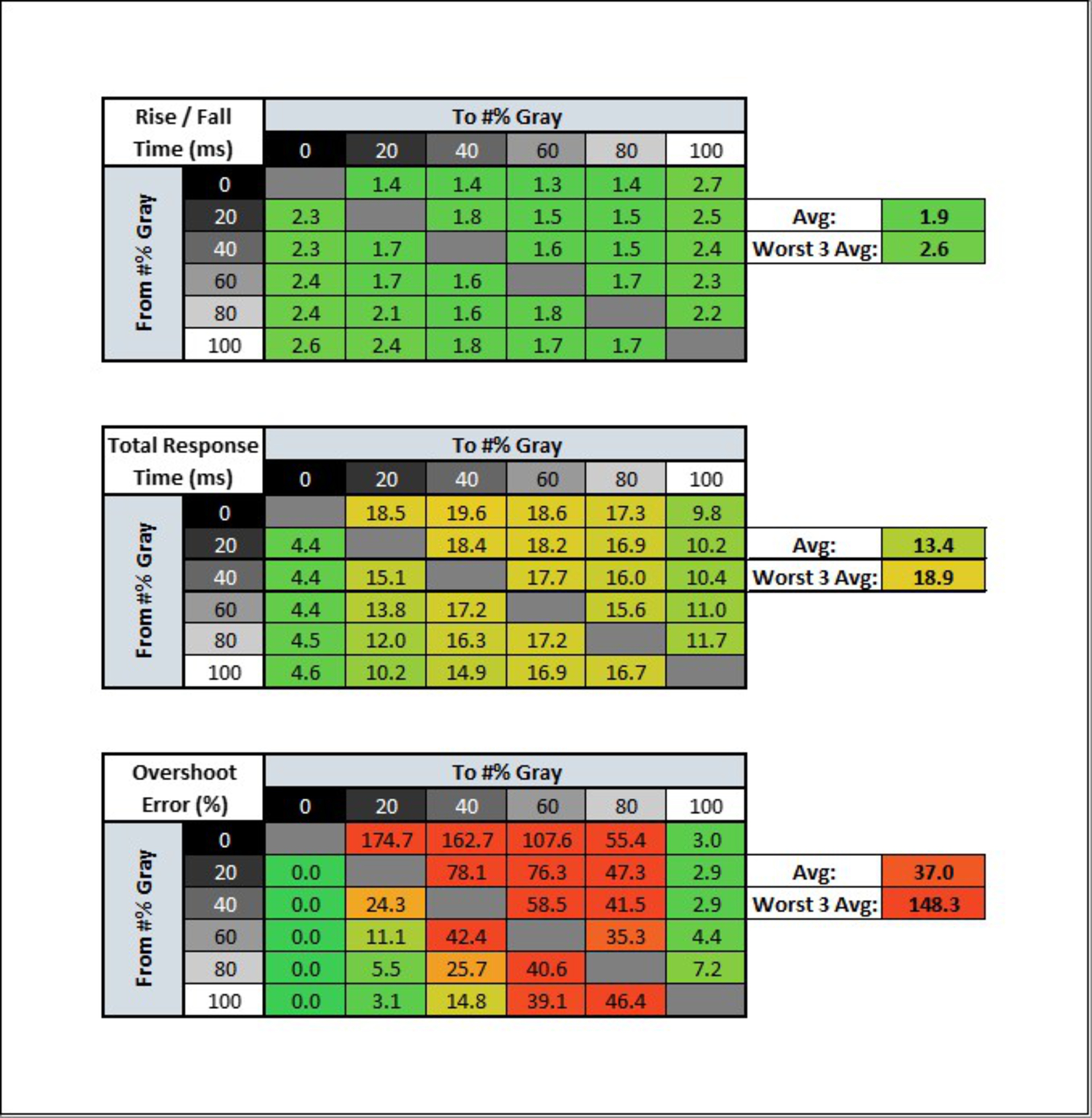 The refresh rate compliance is great. Although its response time isn't fast enough to make full color transitions at 240Hz, it's a lot better at lower refresh rates.