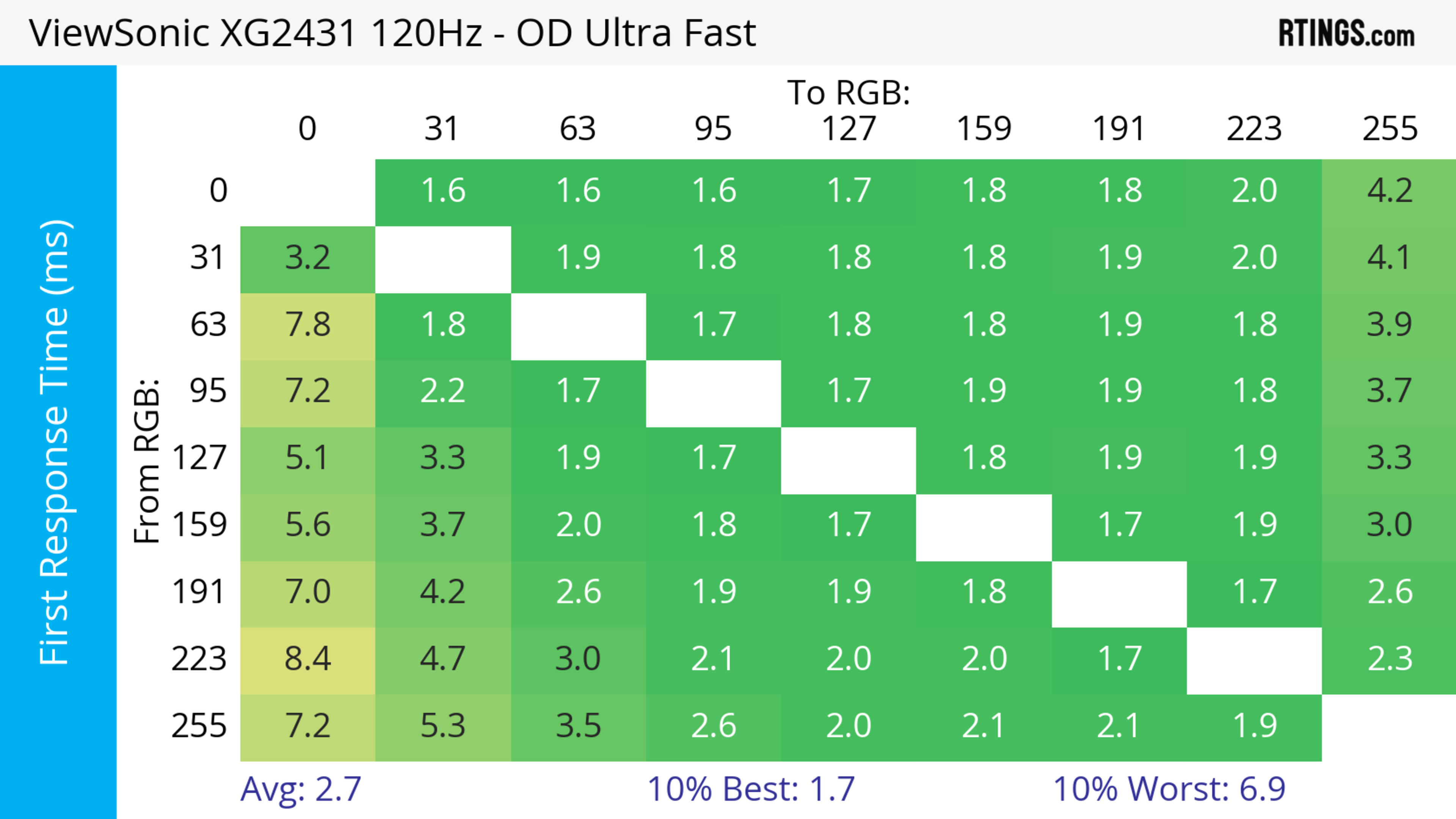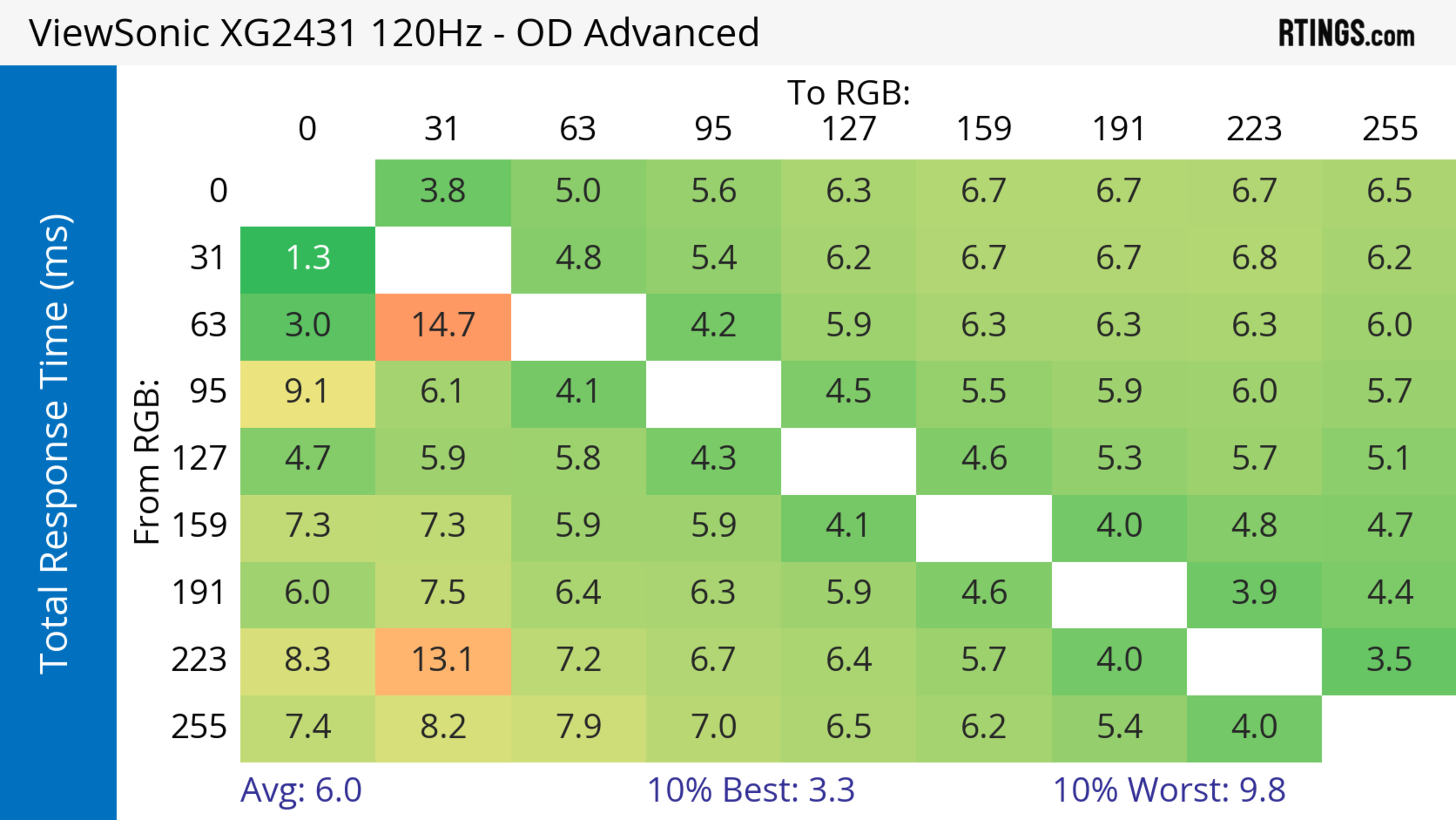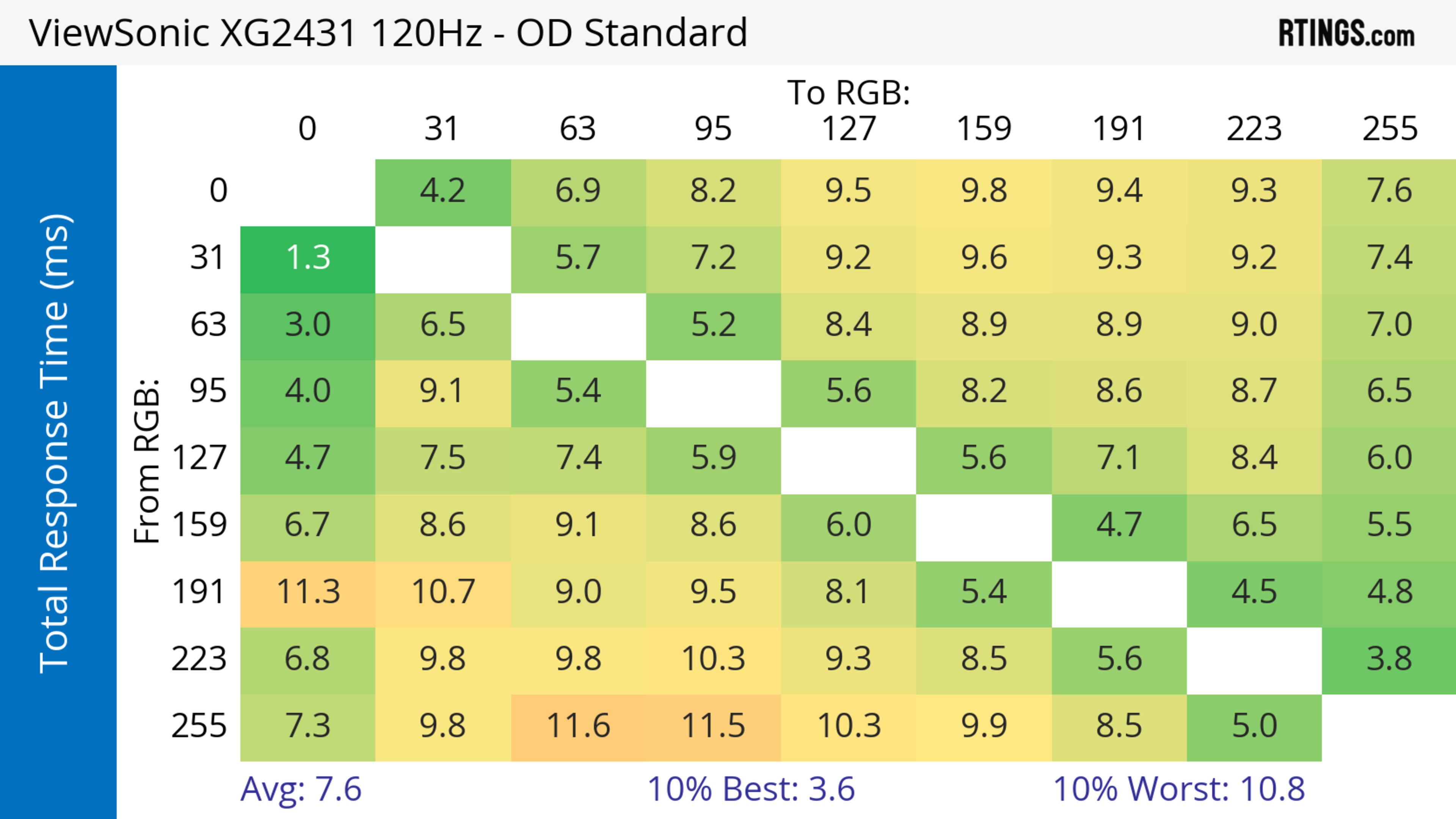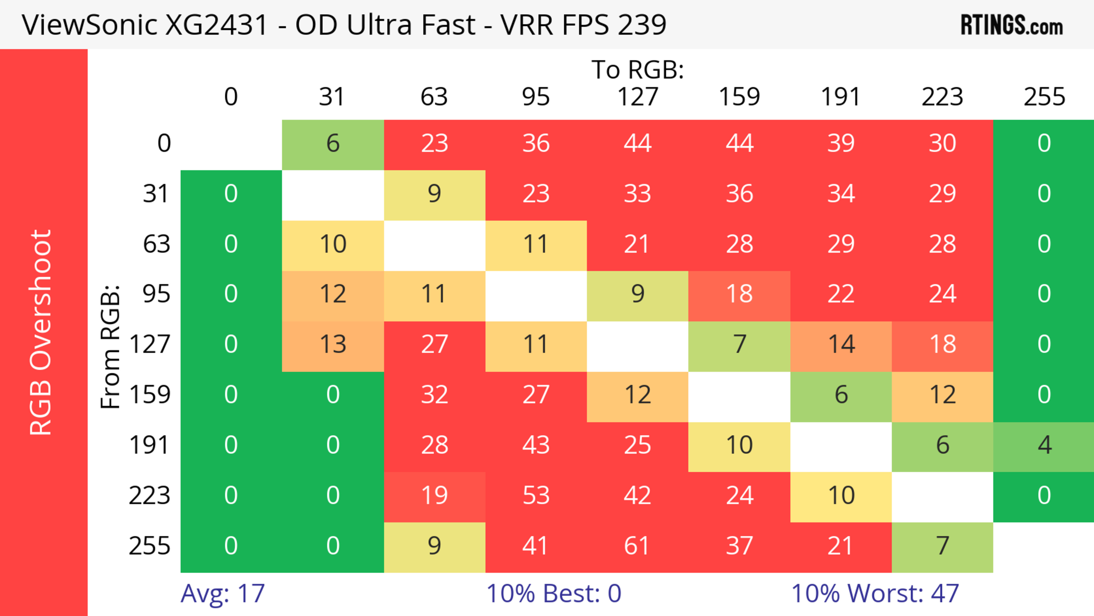 The refresh rate compliance is great. Although its response time isn't fast enough to make full color transitions at 240Hz, it's a lot better at lower refresh rates.