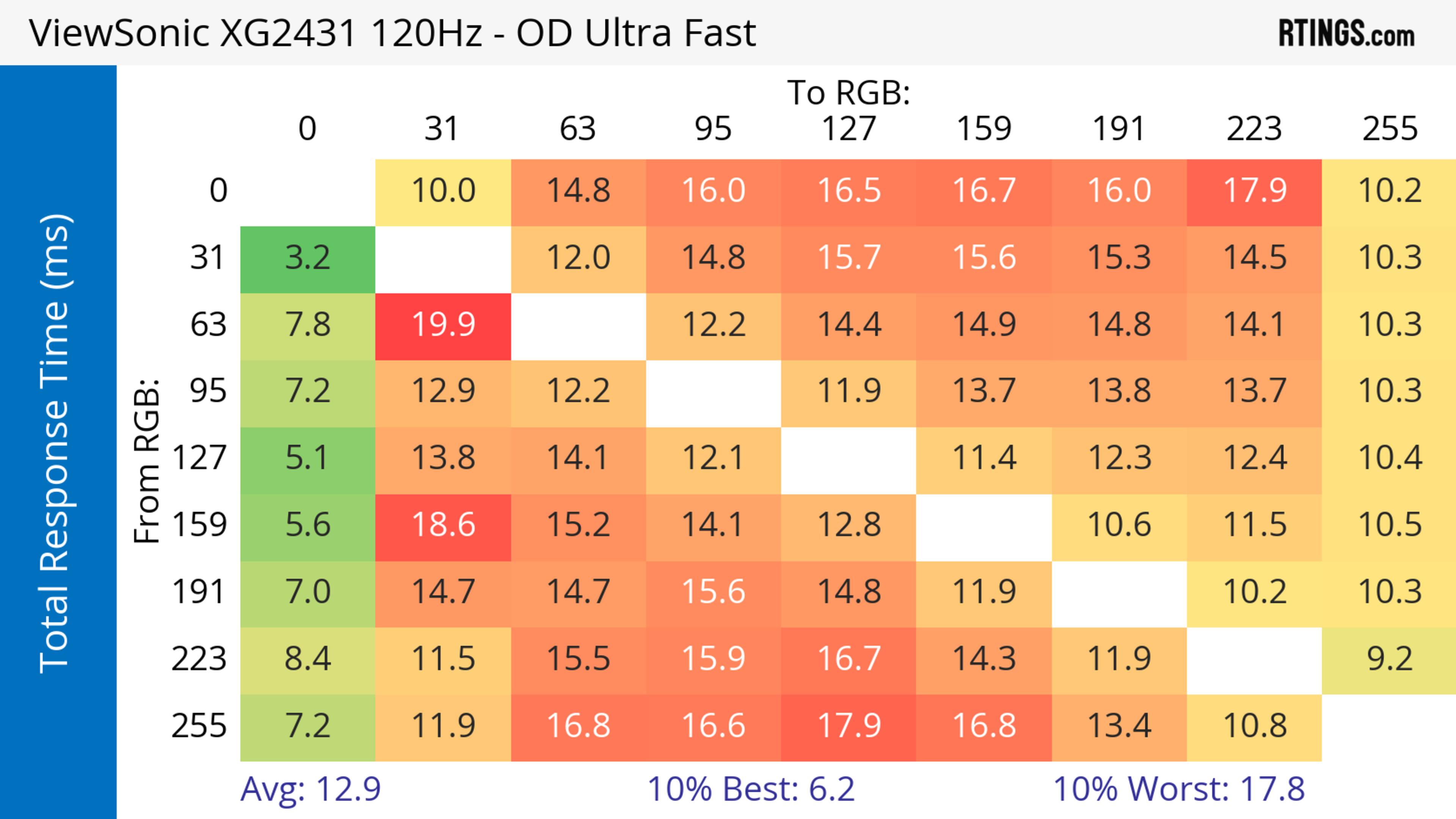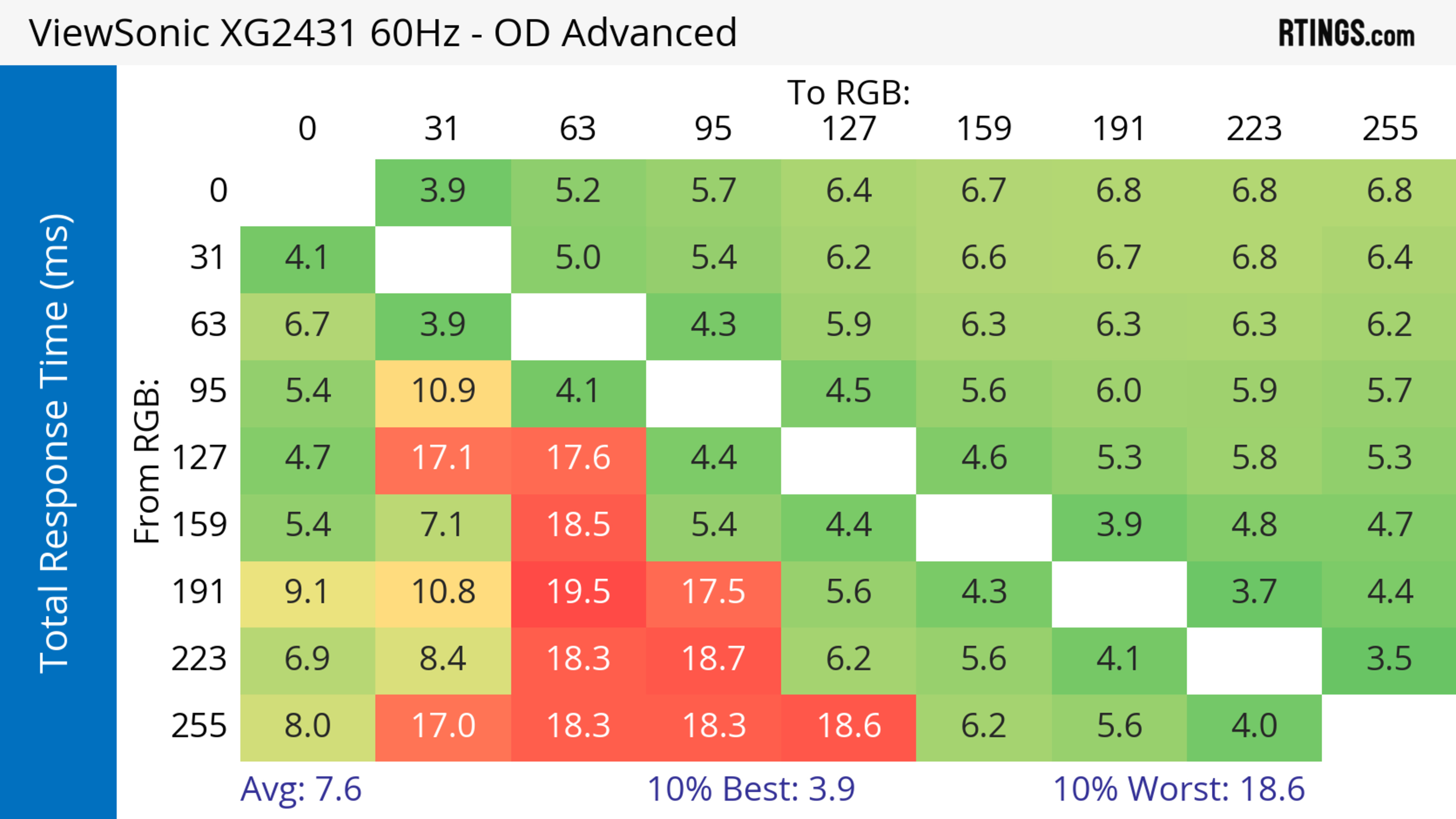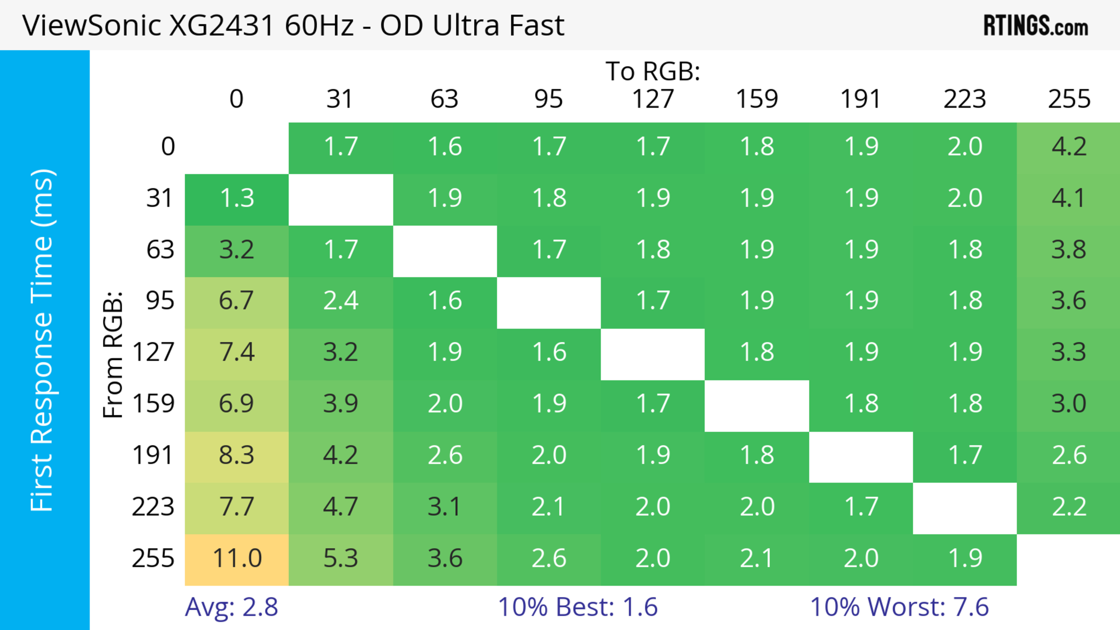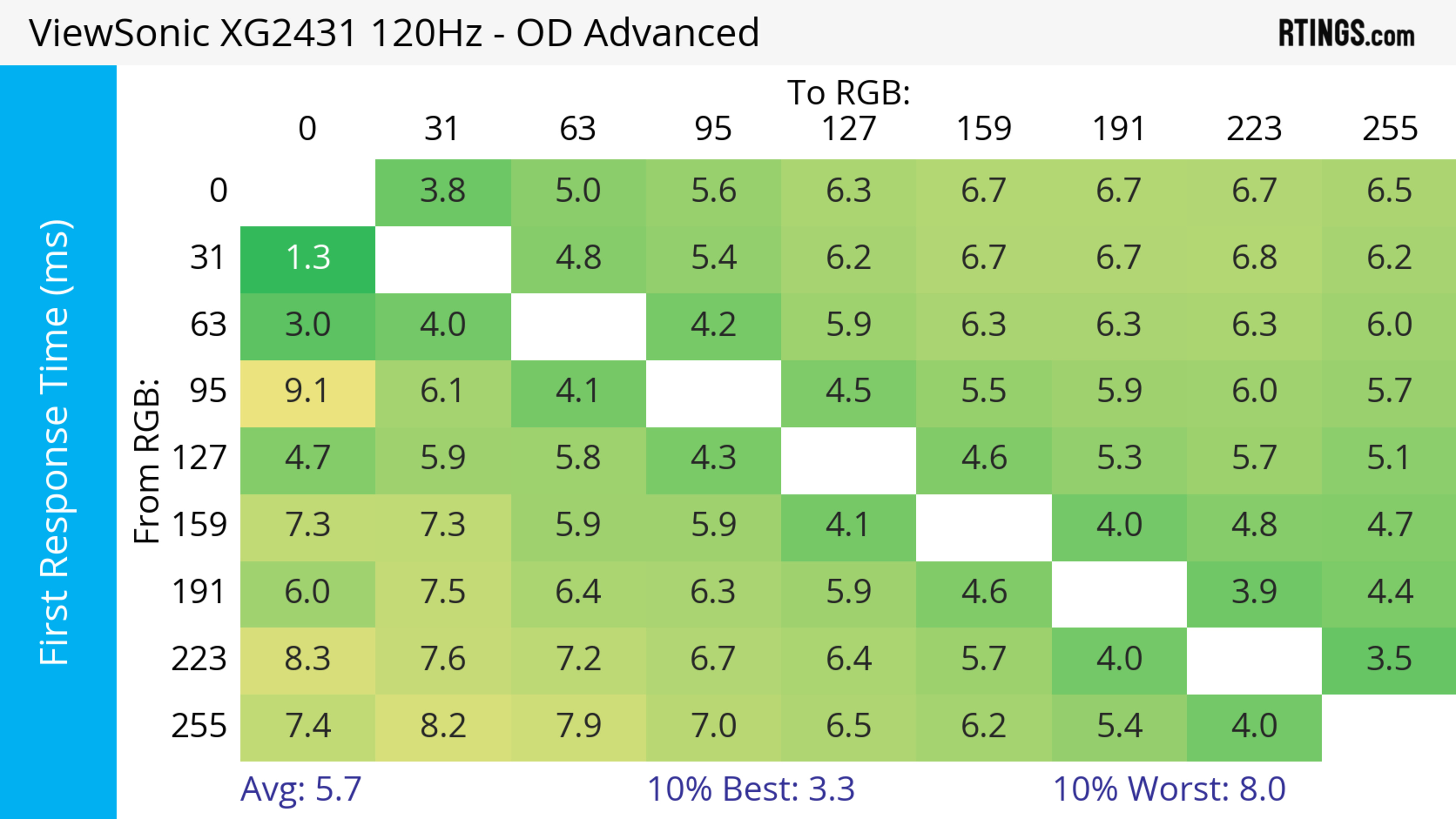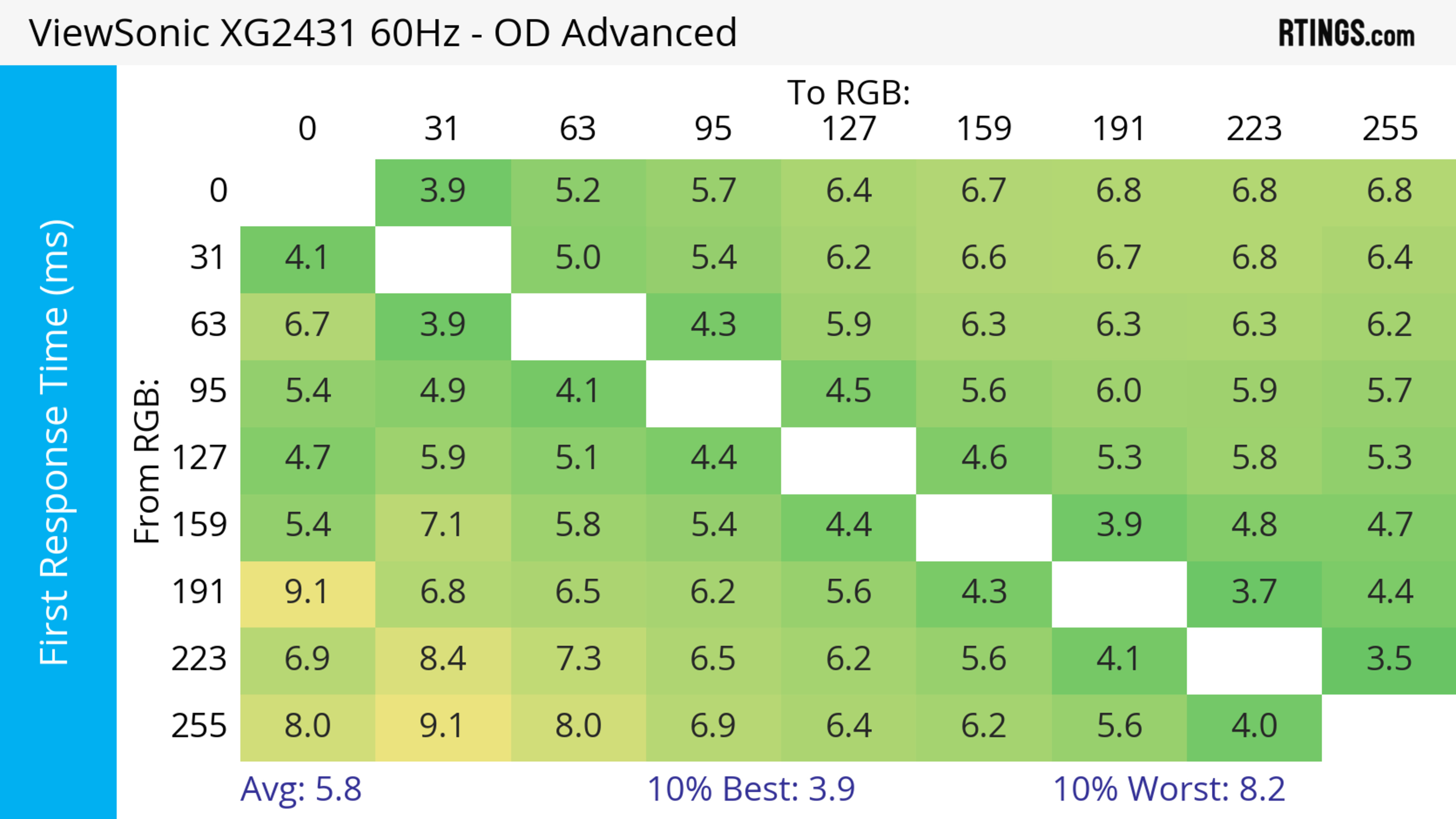 The refresh rate compliance is great. Although its response time isn't fast enough to make full color transitions at 240Hz, it's a lot better at lower refresh rates.