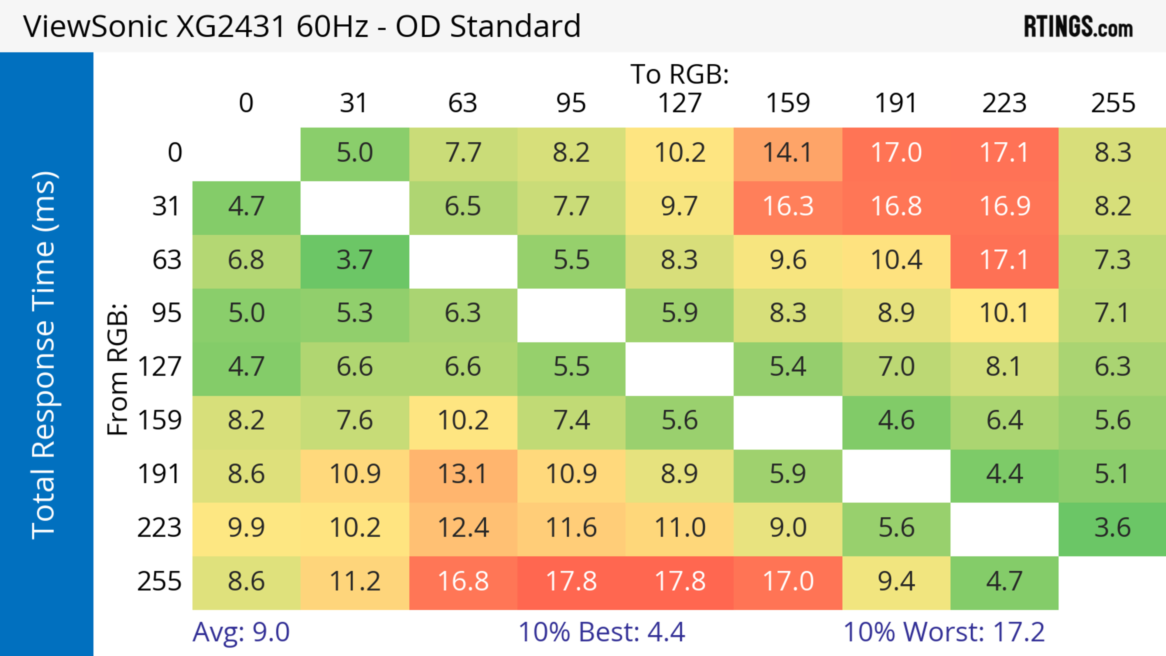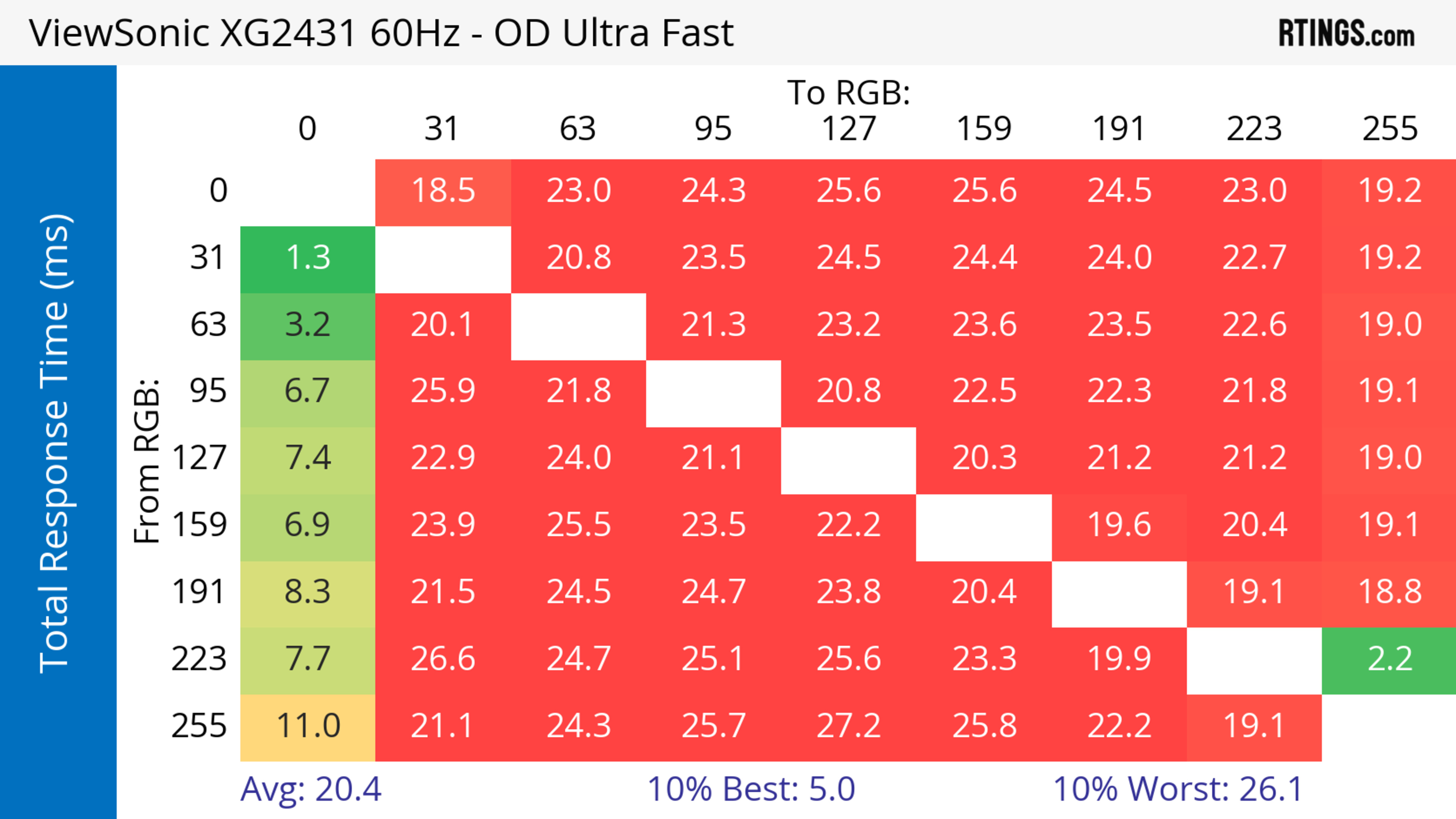 The ViewSonic XG2431 is a good 240Hz gaming monitor with a 1080p resolution. With a consistently fast response time, low input lag, and a customizable backlight strobing feature, it's a good choice if you want a 240Hz gaming monitor for a low cost and don't need good picture quality. However, you can also get other budget-friendly monitors with better picture quality, like the AOC Q27G3XMN, but that monitor has a lower refresh rate anyway. If you want to save money, the LG 24GS65F-B is another good option that costs less, but like the AOC, it also has a lower refresh rate.