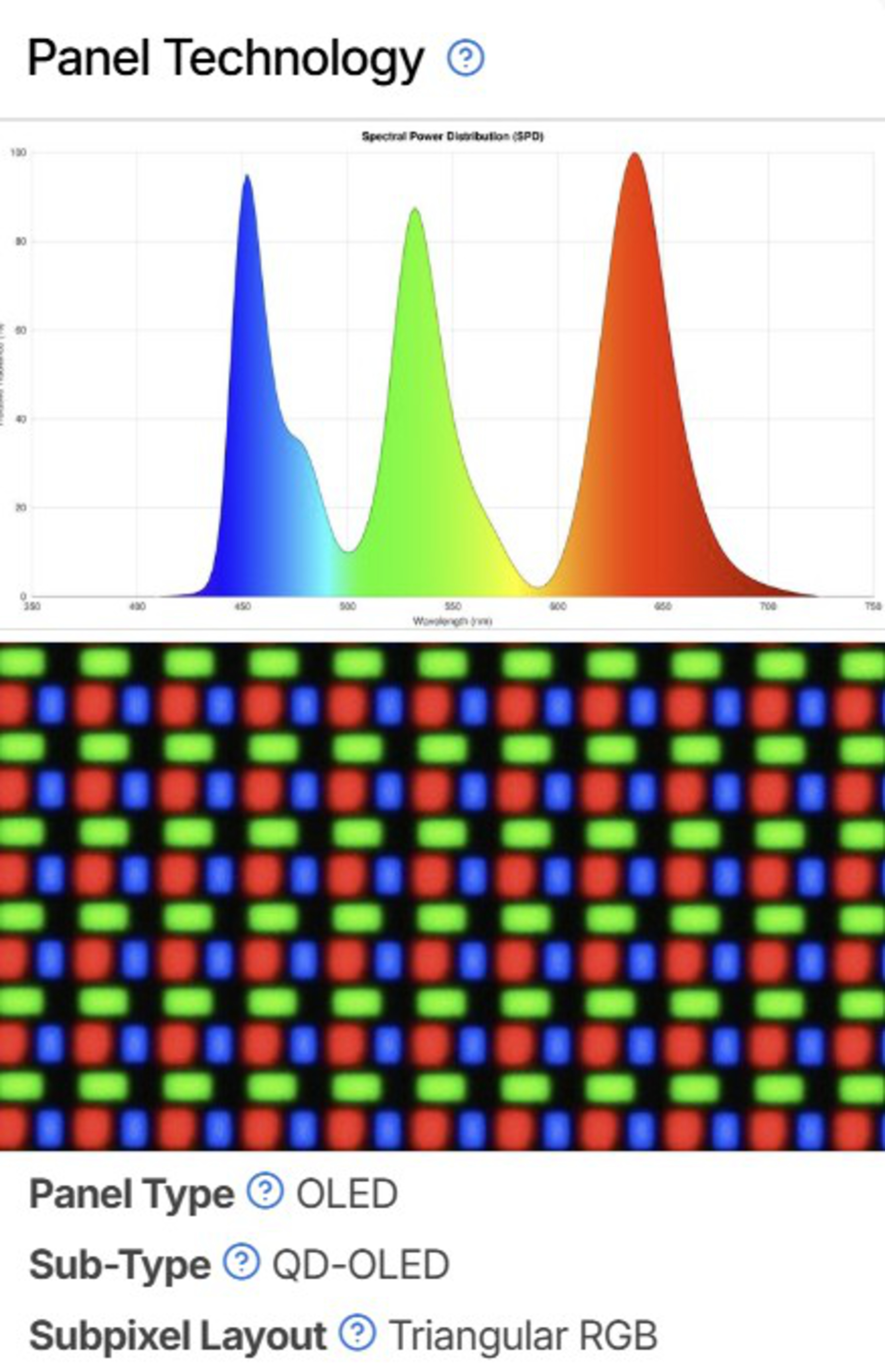 The biggest addition of this test bench update is the SPD graph in the new Panel Technology box. It allows you to compare different panel types more easily and shows whether they use technologies like quantum dots or KSF phosphors.