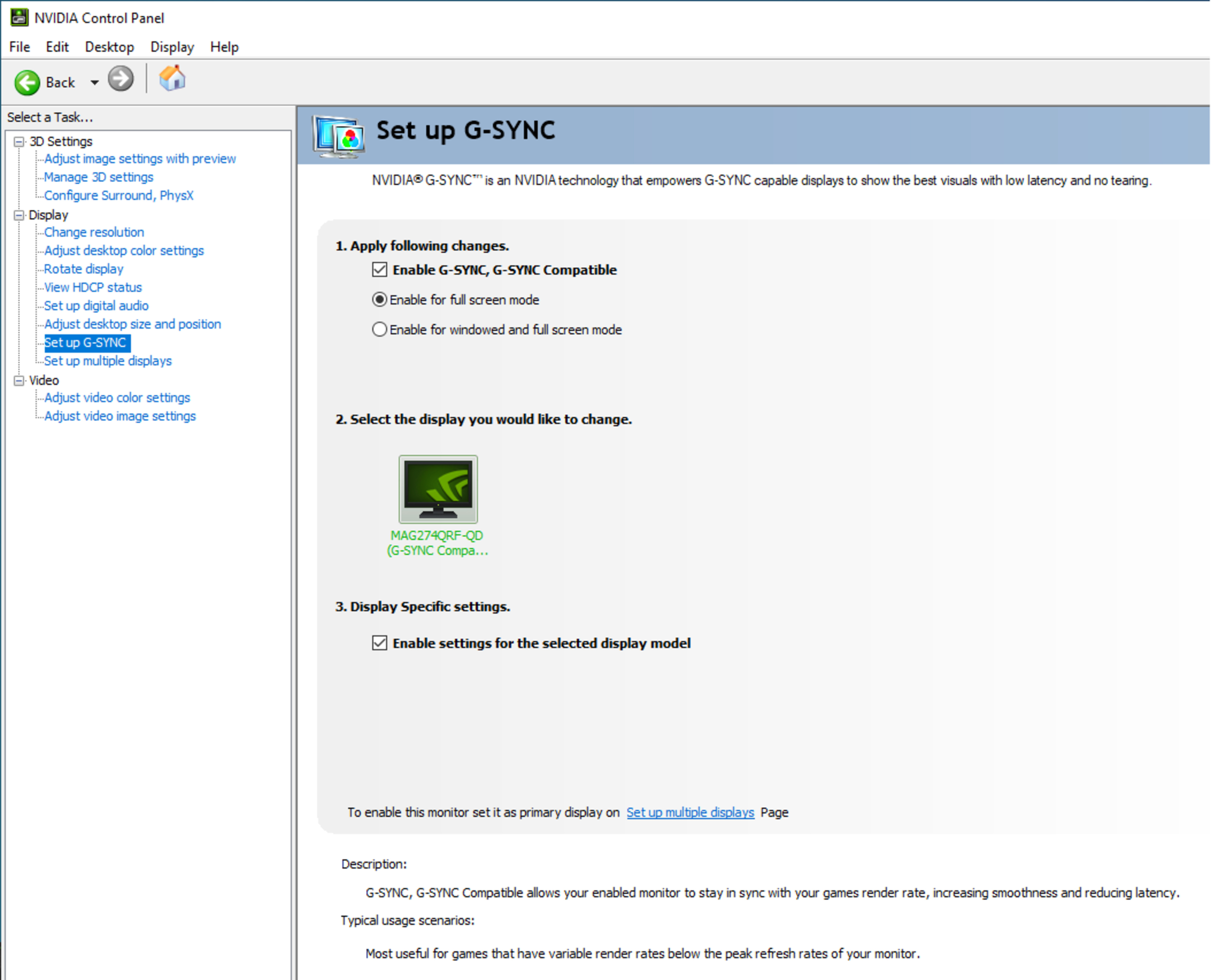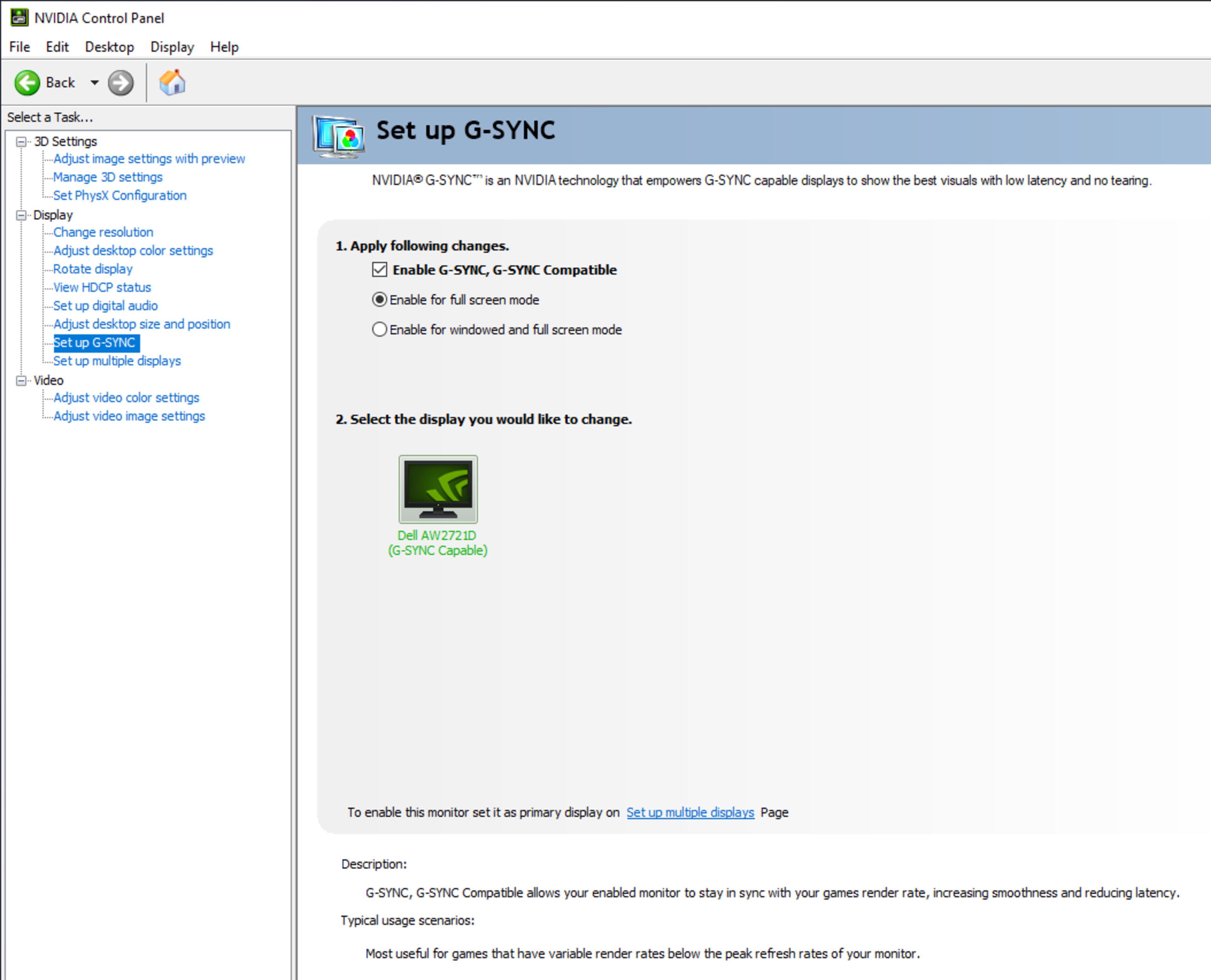 - Compatible (NVIDIA Certified): NVIDIA has a list of monitors with official G-SYNC Compatible certification. NVIDIA tests them for any compatibility issues and only certifies displays that work perfectly out of the box, but they lack the G-SYNC hardware module found on native G-SYNC monitors. We list a monitor as G-SYNC Compatible either when it's on this list or if it appears as 'G-SYNC Compatible' in the NVIDIA Control Panel, and we don't experience any issues. If a monitor has G-SYNC compatibility, VRR is enabled by default.