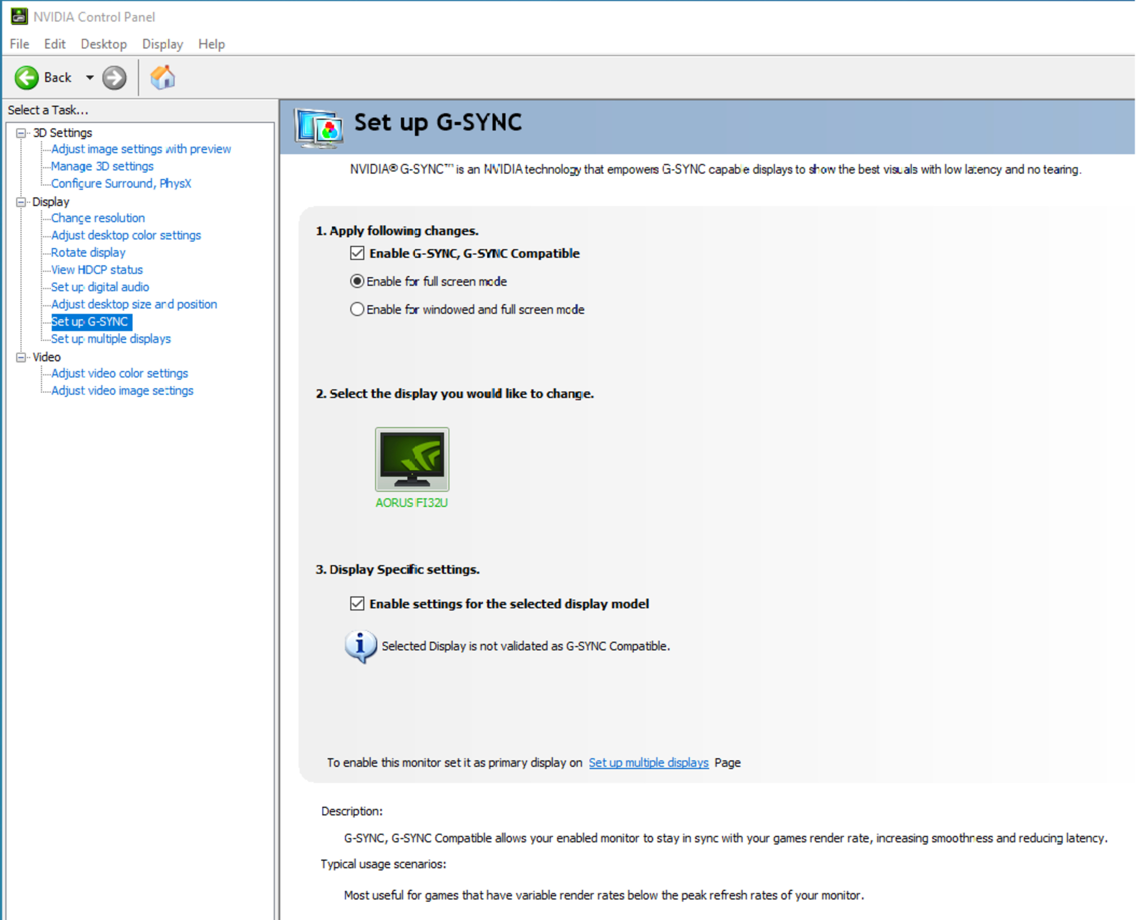 - Compatible (Tested): Monitors that aren't officially certified but still work with G-SYNC get 'Compatible (Tested)' instead of 'NVIDIA Certified'. In the NVIDIA Control Panel, you'll notice that the monitor doesn't have 'G-SYNC Compatible' listed next to it, like how an officially certified G-SYNC compatible monitor has. Unlike G-SYNC compatible monitors, VRR isn't enabled by default. Besides that, there is no significant difference in performance between the two sets of monitors. There could be different reasons why it's not certified by NVIDIA, including NVIDIA not testing it. As long as the VRR support works over its entire refresh rate range, that means VRR works with an NVIDIA graphics card.