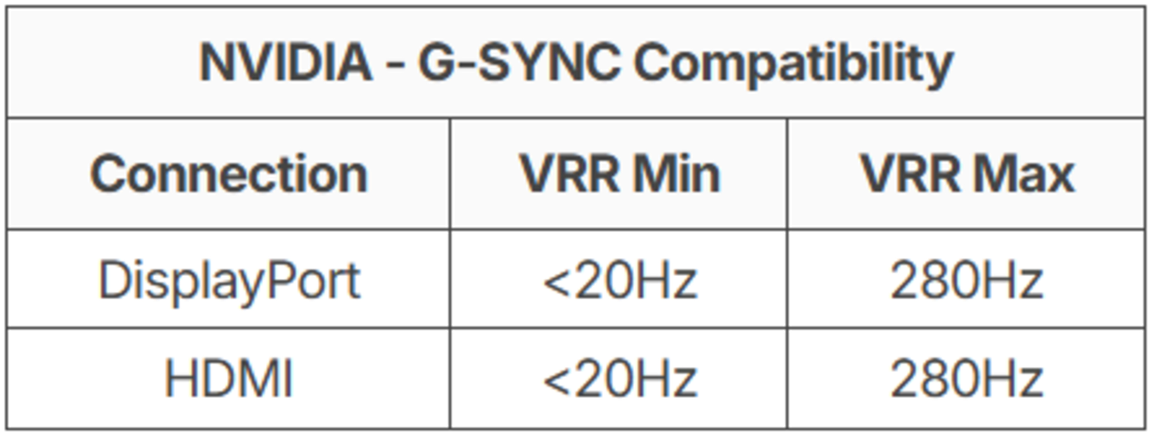 | VRR Minimum | ✅ | ✅ | ✅ | ✅ | ✅ |
