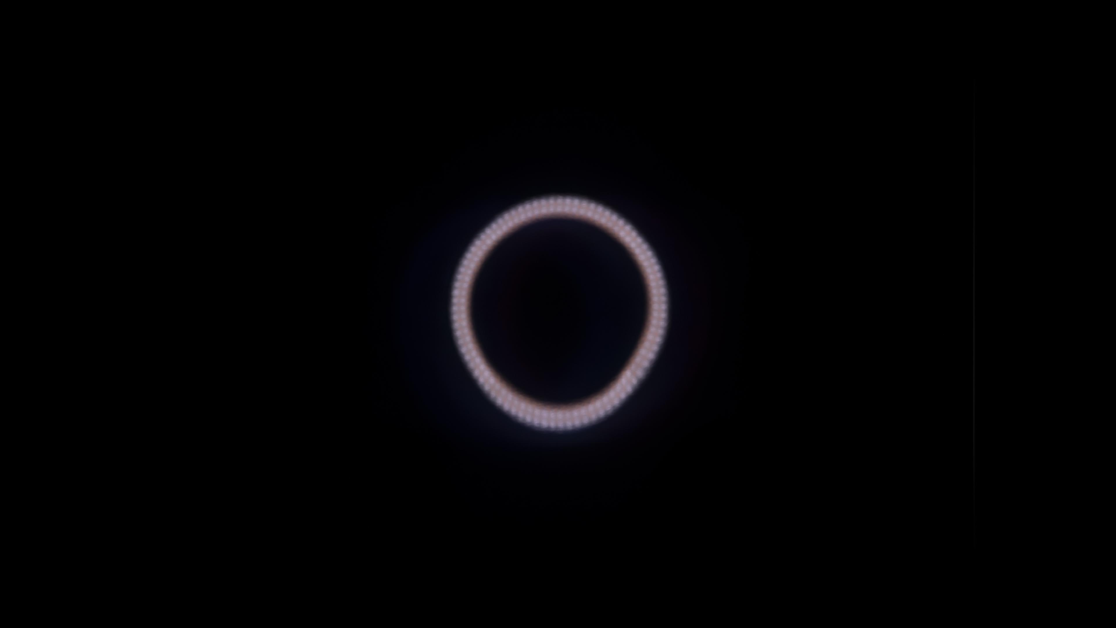 To help you see what the monitor looks like in a bright room, we also take a picture of the monitor with the ring light at its max brightness. We set the camera's aperture to F4.0, shutter speed to 1/60, ISO to 200, and white balance to 6500K. We place the camera in the middle of the ring light and take a photo of the screen. Using Adobe Lightroom, we crop the image to only show the screen in the middle of the ring light, so you won't see any light in the photo.