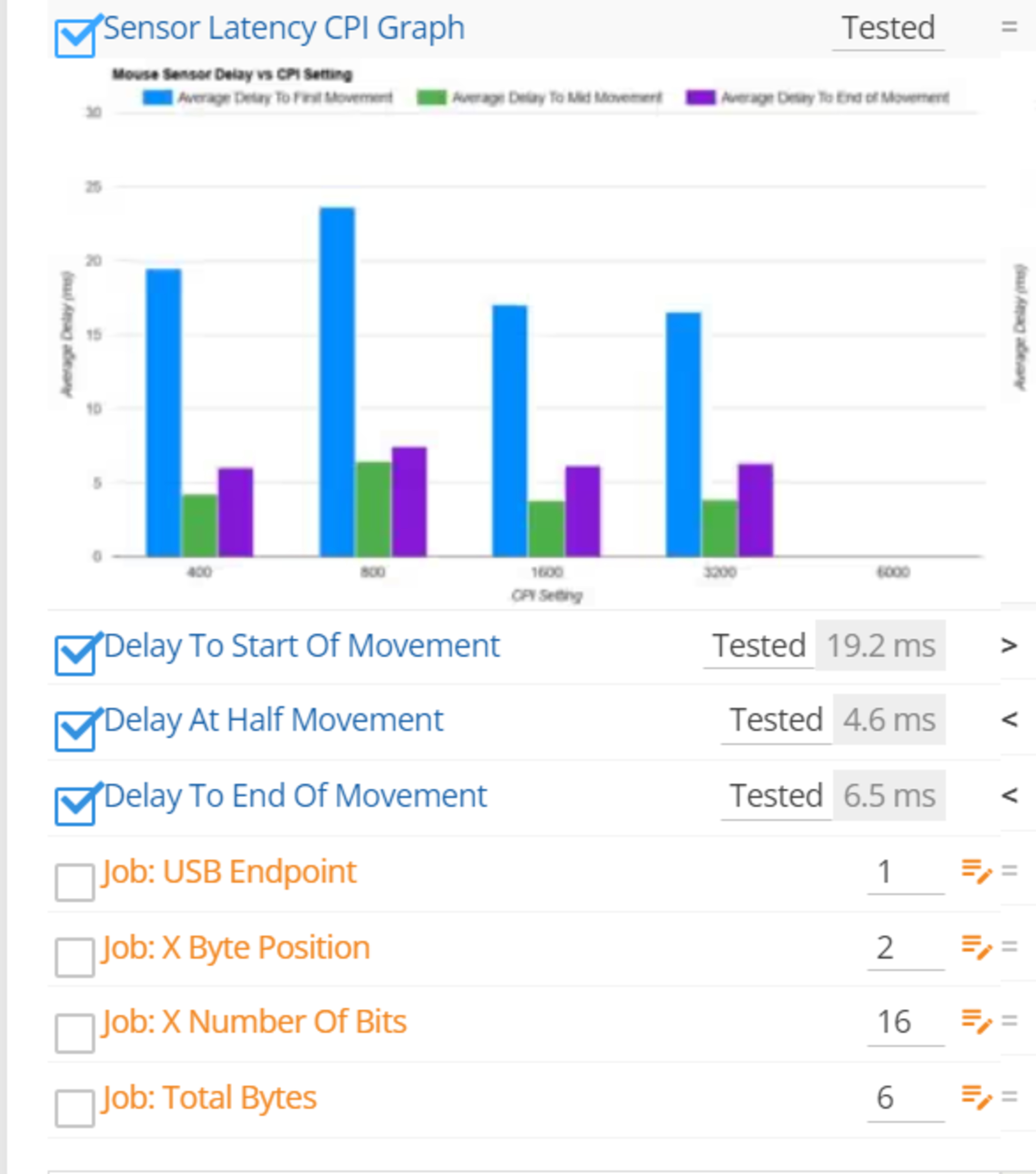 We tested this mouse connected with its Enhanced Wireless Receiver, at its maximum polling rate of 1000Hz, and with Motion Sync disabled. Motion Sync is a sensor setting that attempts to improve the synchronization of sensor data with polling events. It can improve how closely your mouse movements are matched on-screen but may add a small degree (typically ~1 ms) of motion latency.