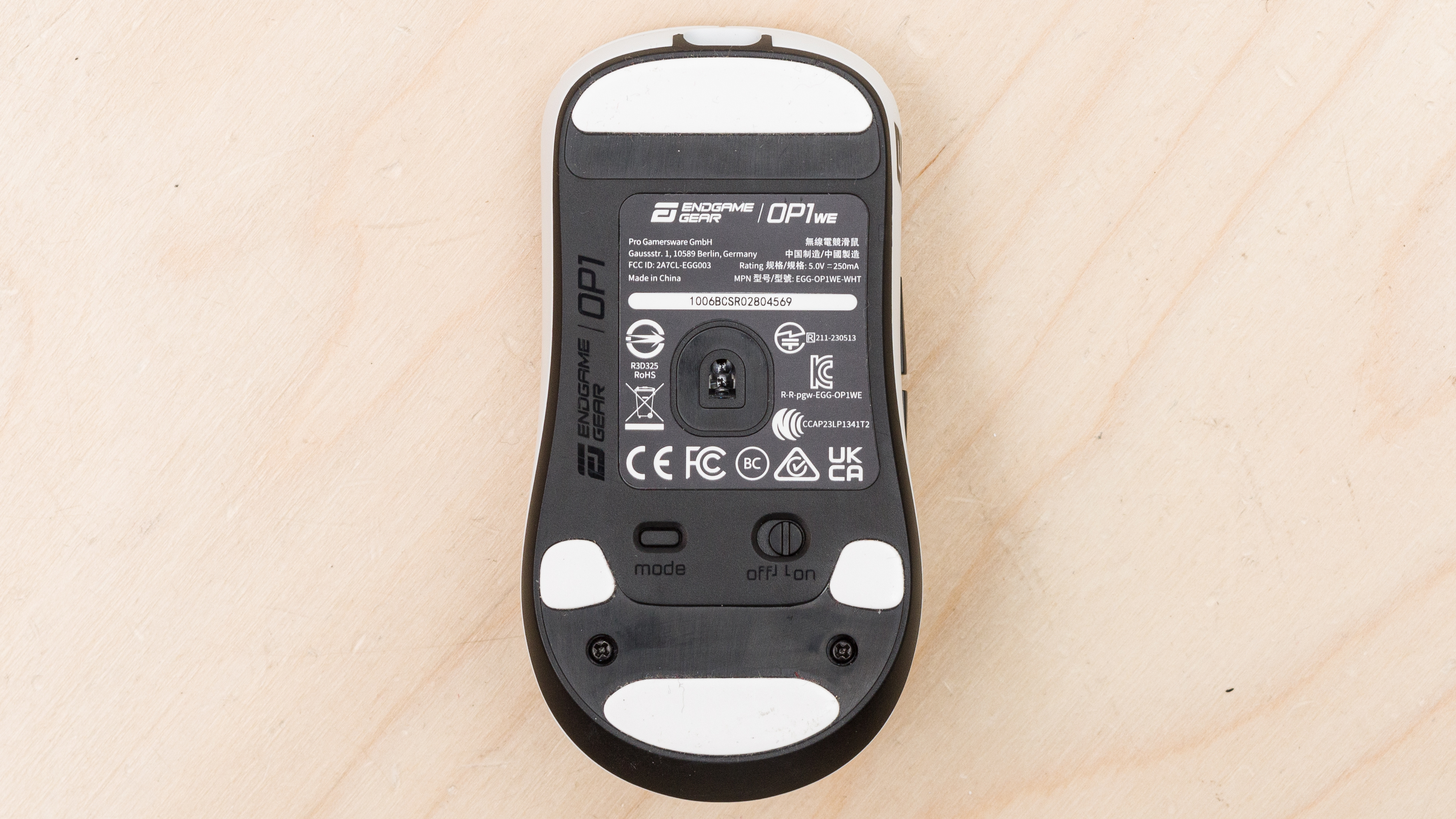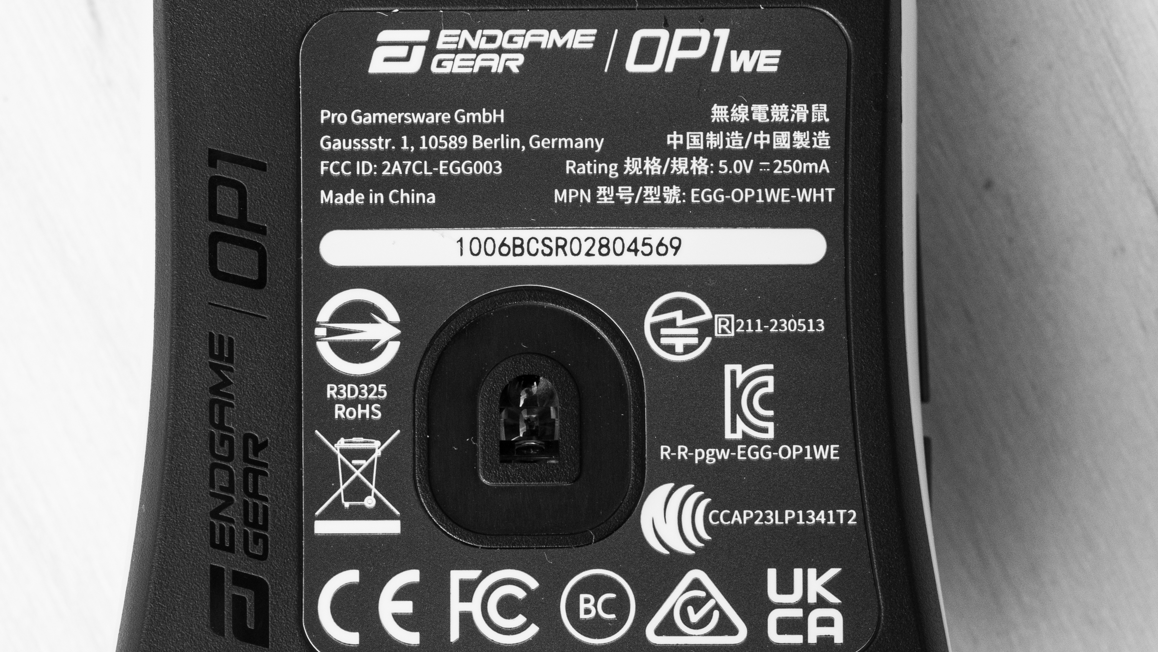 The Endgame Gear OP1we is available in black or white. We bought and tested it in white. You can see the label of our unit here.
