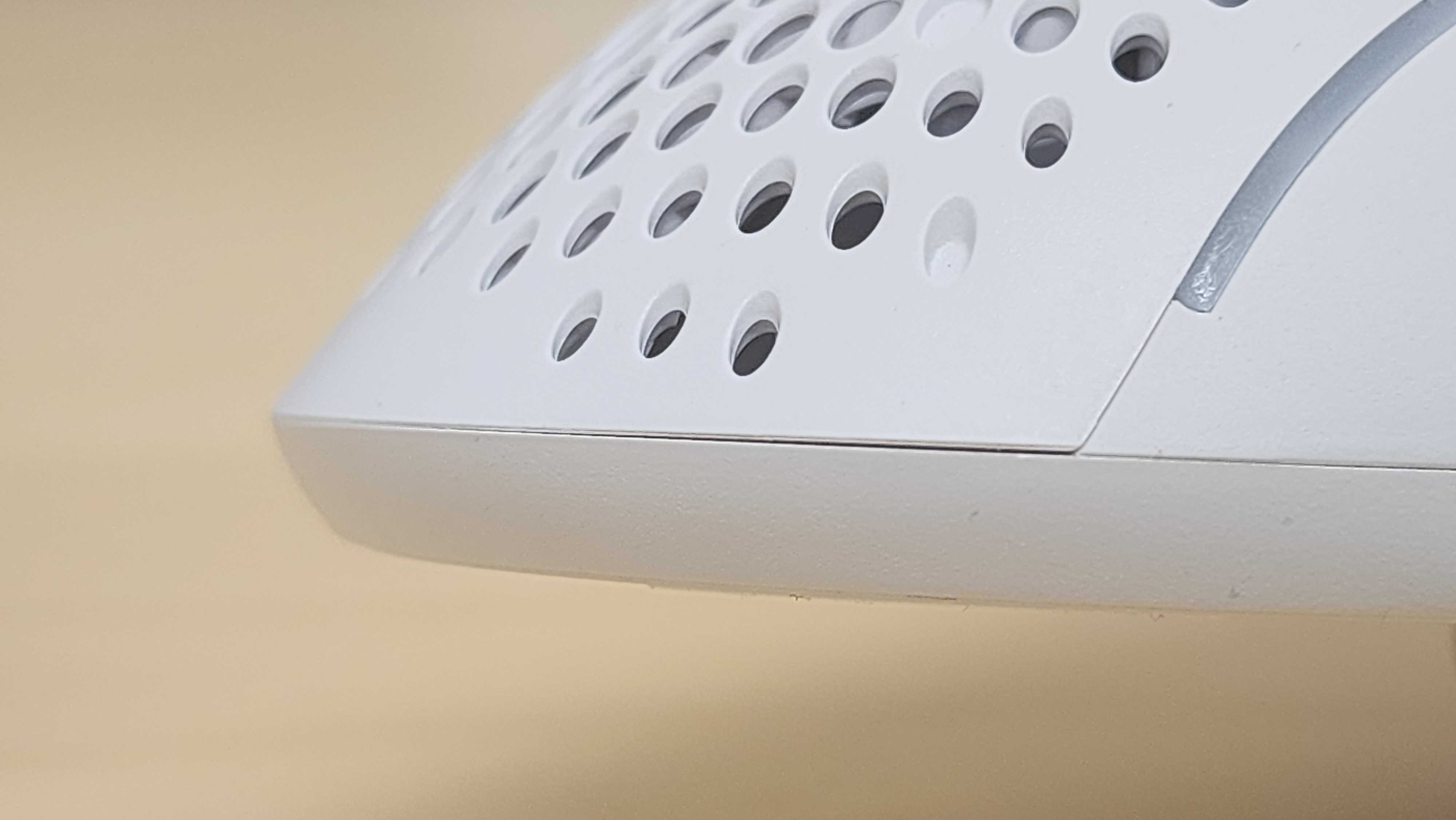 That said, there's a small degree of left- and right-side travel on the main click buttons. Additionally, the seam between the top and bottom panels isn't completely flush on the back right edge of the mouse, as seen here. However, you can't feel this small gap when holding the mouse in your hand.