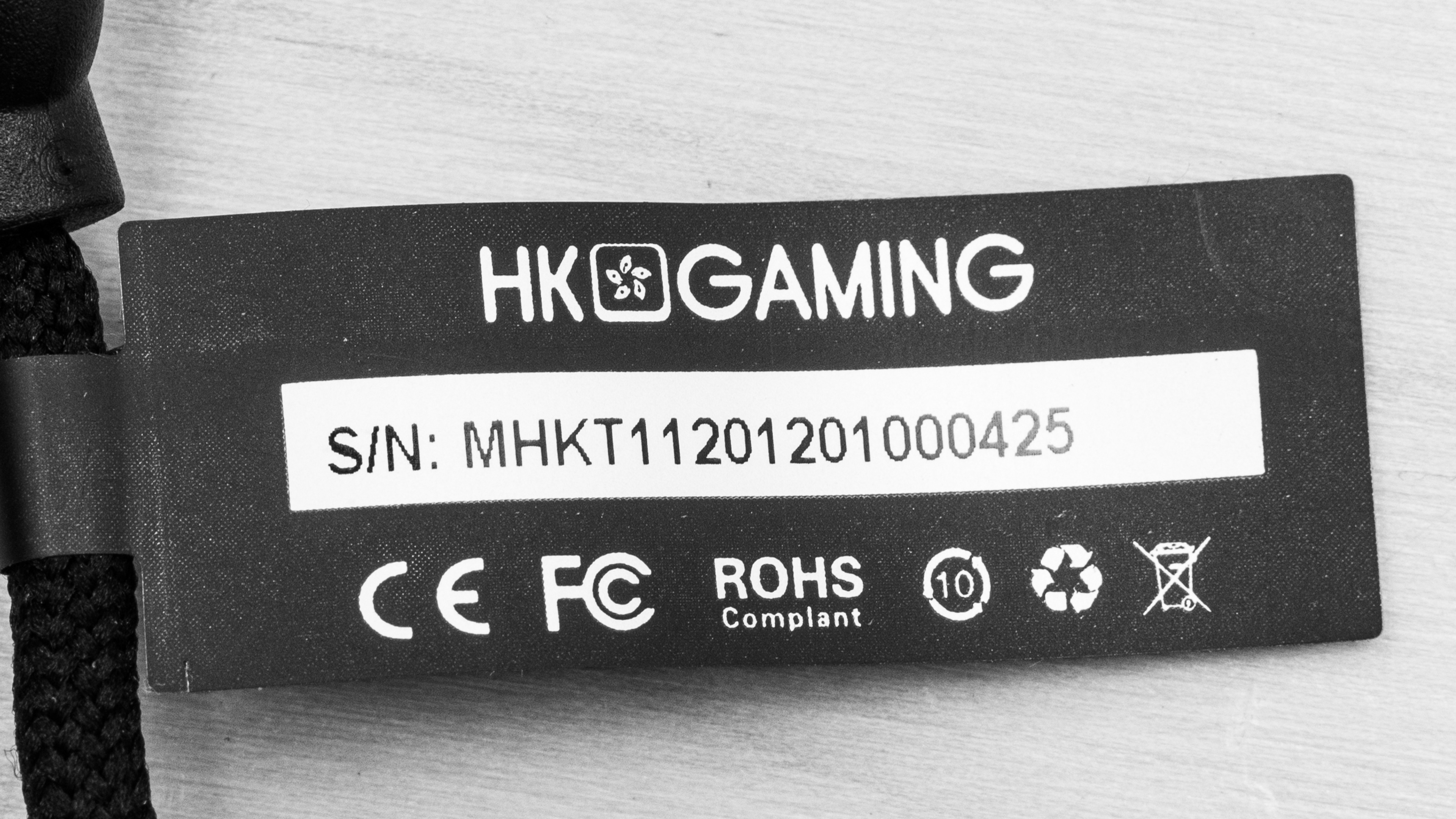 The HK Gaming Mira-S we tested is the black variant. There are nine other colors available, including White, Black/Orange, Blue Phantom, Serenity, Bumblebee, Lavender, Metallic Blue, Monza, and Rose Quartz color variants. You can see the label for our unit here.