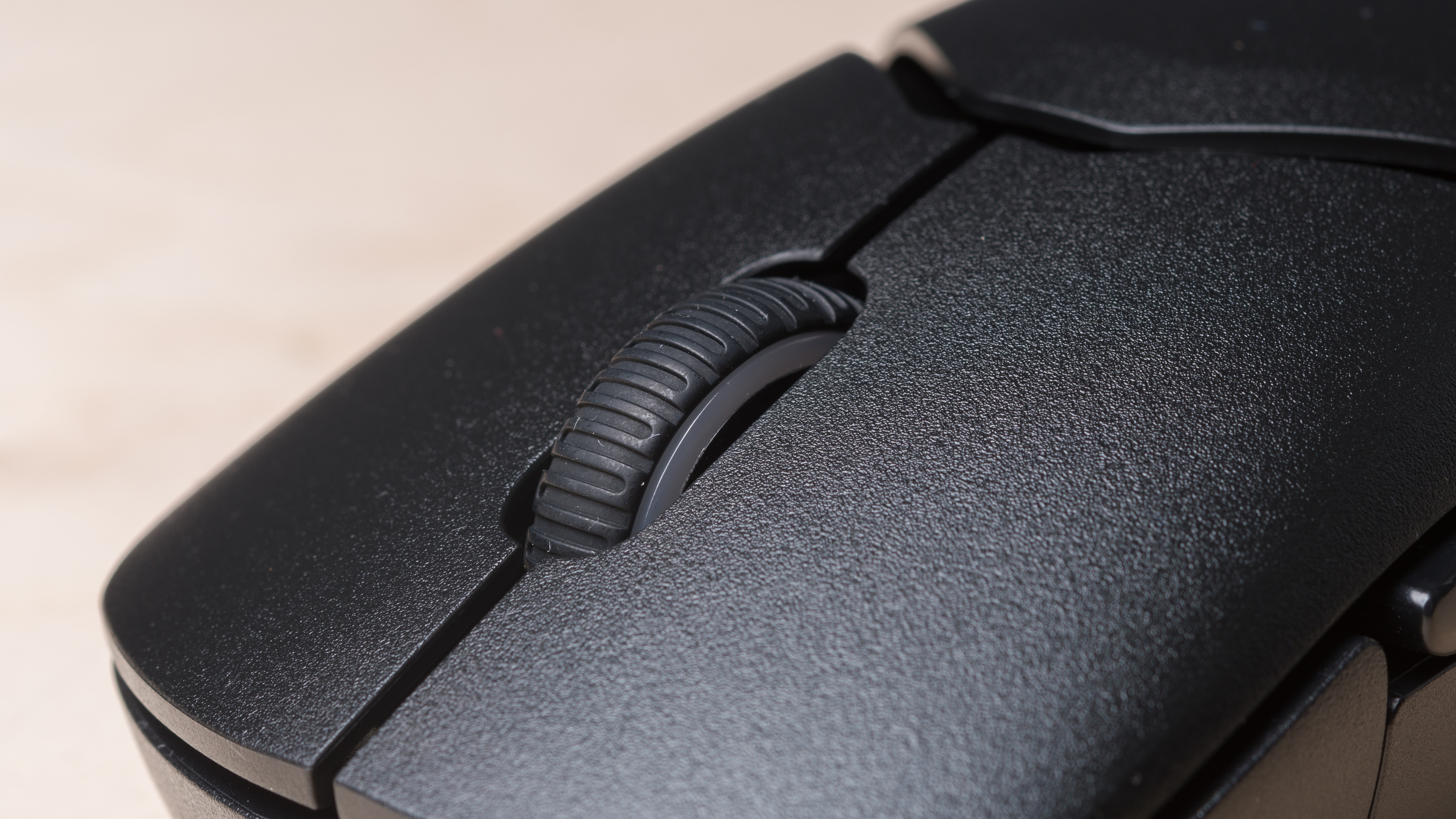 The scroll wheel has a notched rubber surface, and scrolling is quiet and feels precise. The force it takes to move between steps is on the lighter side.
