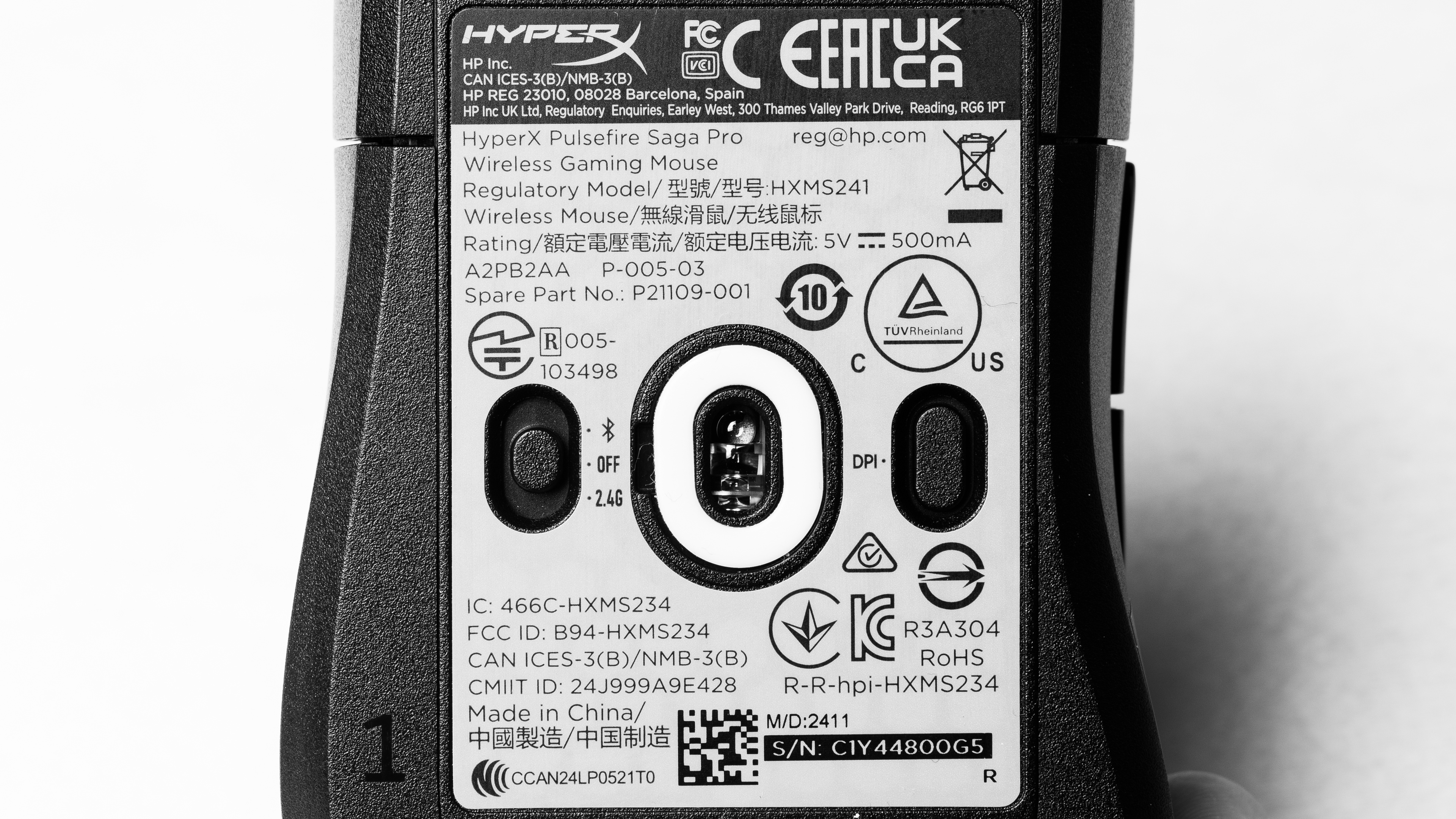 The HyperX Pulsefire Saga Pro is only available in Black. You can see our unit's label here.