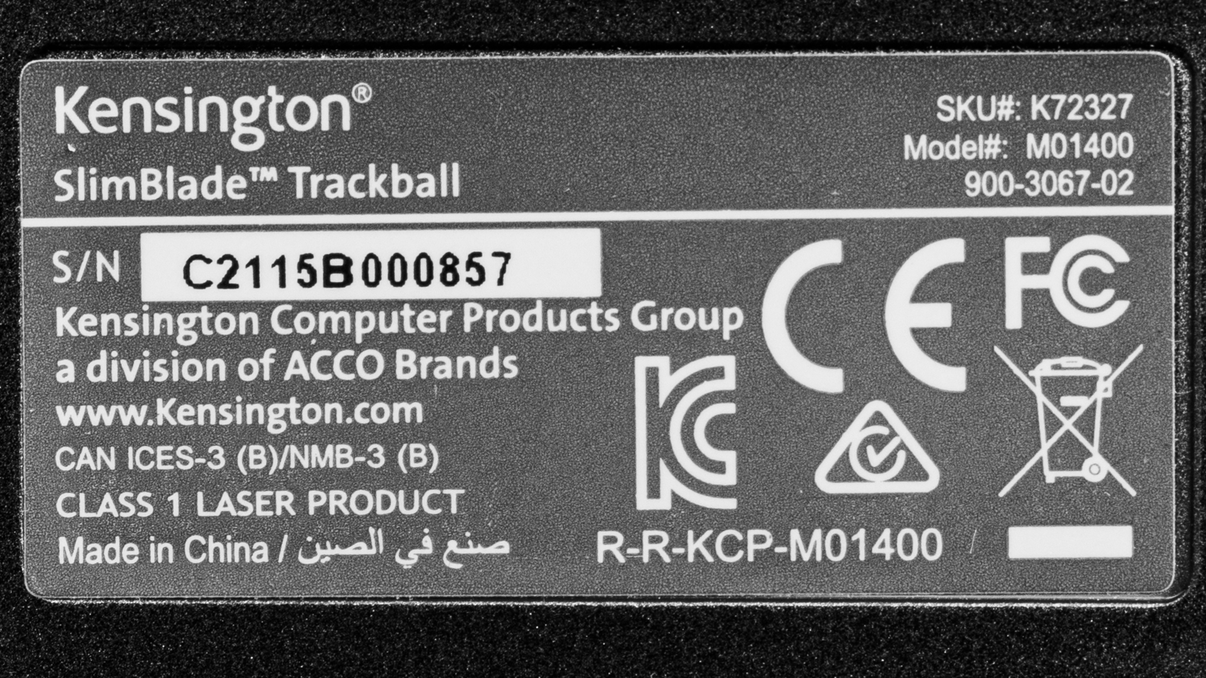 The Kensington SlimBlade Trackball mouse comes in only one variant. You can see the label of the unit we tested here.