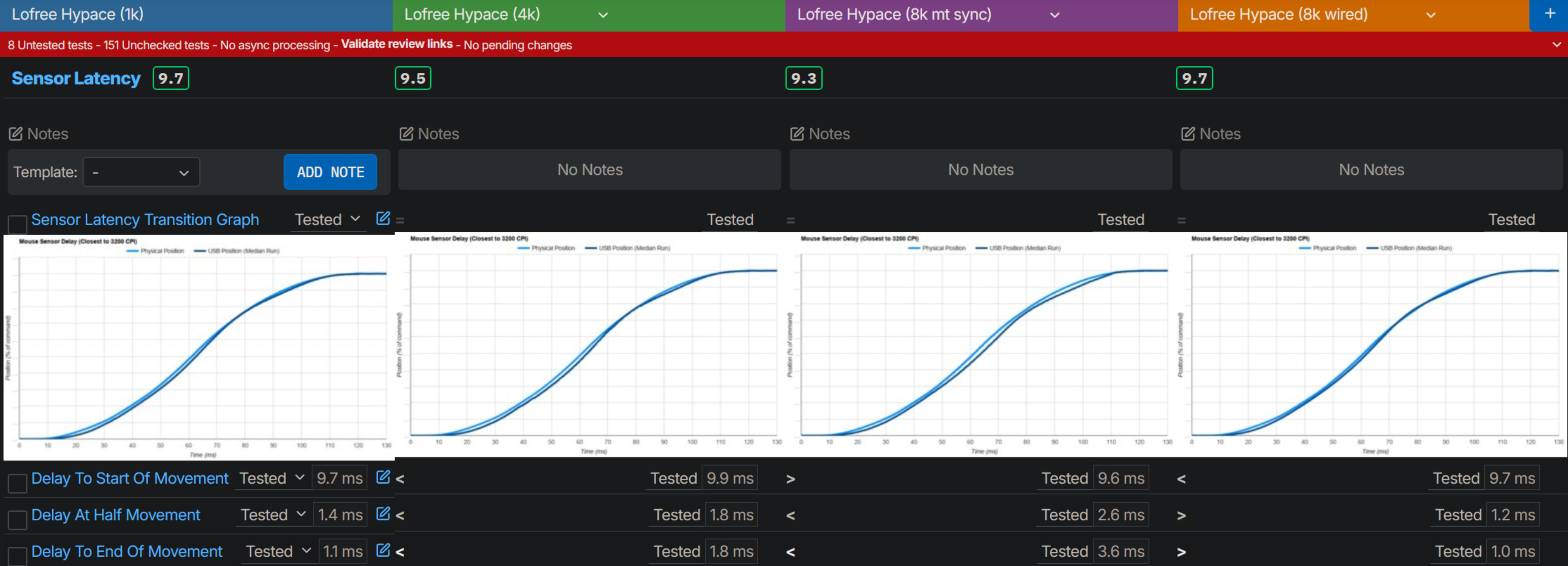 We also conducted supplementary testing at 8000Hz wired and 8000Hz wireless with Motion Sync enabled. For more details about Motion Sync, see the Configuration Software section.