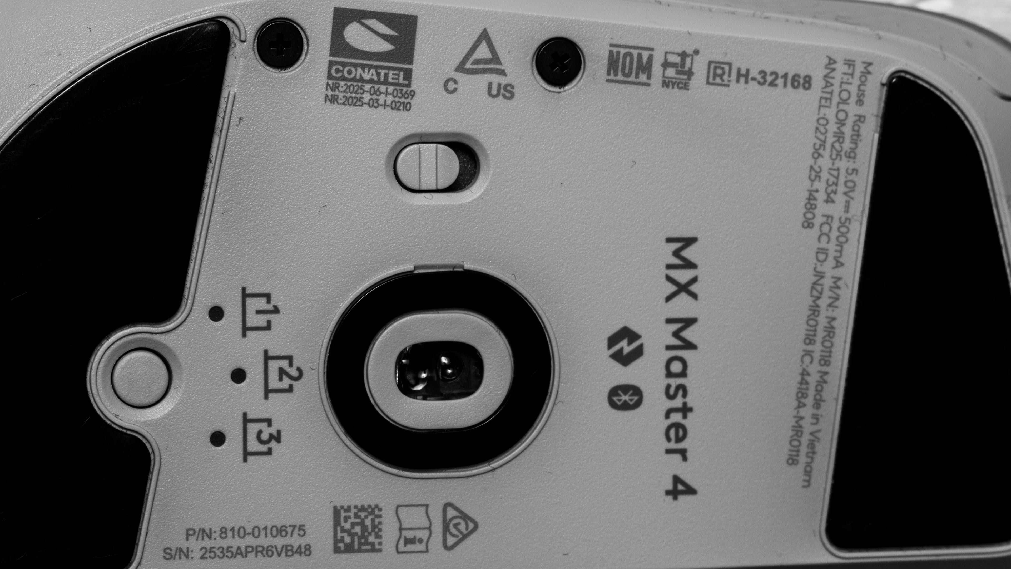 The Logitech MX Master 4 is available in Graphite, Black, and Pale Gray color options. We bought a Pale Gray model, and you can see our unit's label here.