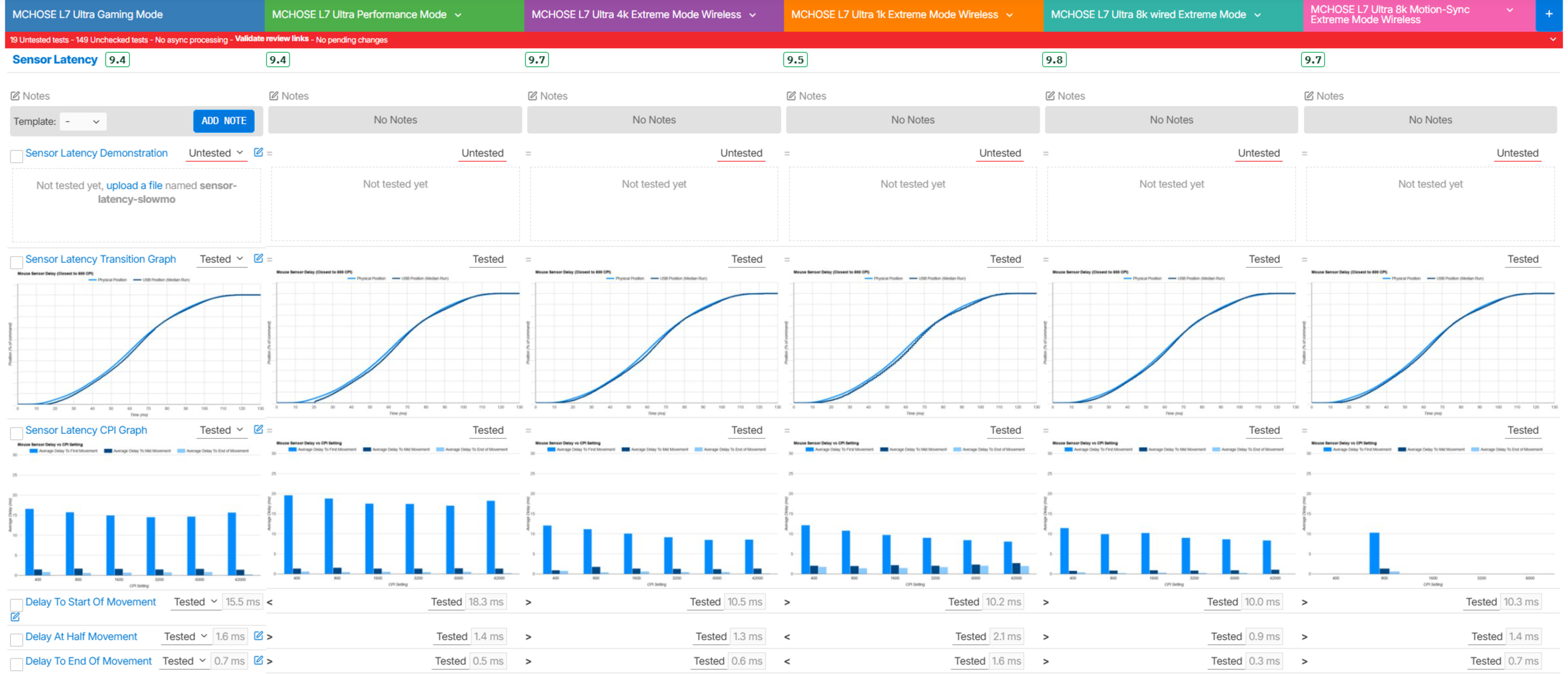 For comparison, we've performed supplementary testing using various settings and polling rates.