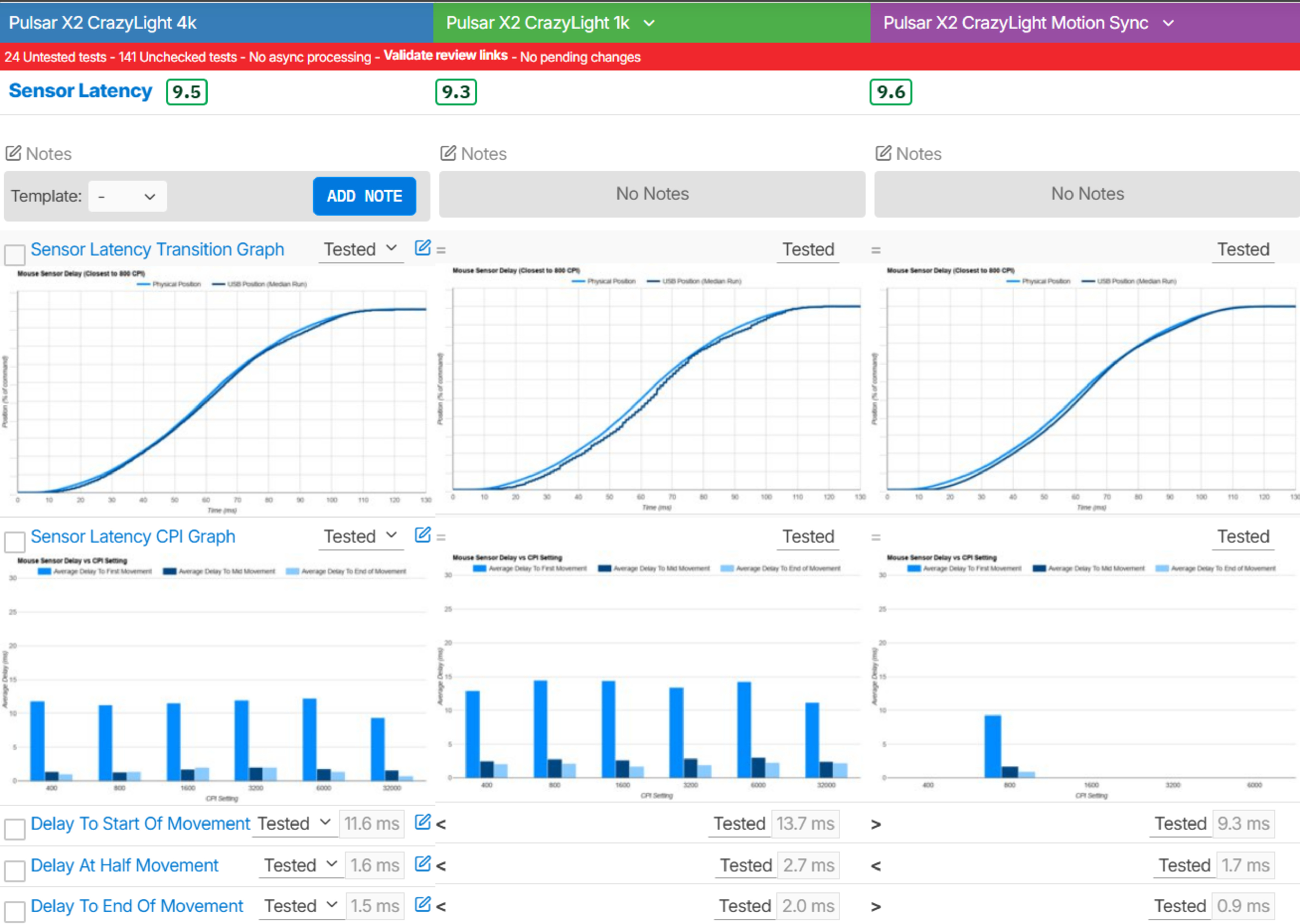 We conducted this test with the lowest debounce setting of 0 ms, the maximum wired polling rate of 1000Hz, and the maximum wireless polling rate of 8000Hz. However, we've confirmed that setting different polling rate settings has no effect on click latency, only sensor latency, and this is becoming increasingly common on modern gaming mice.
