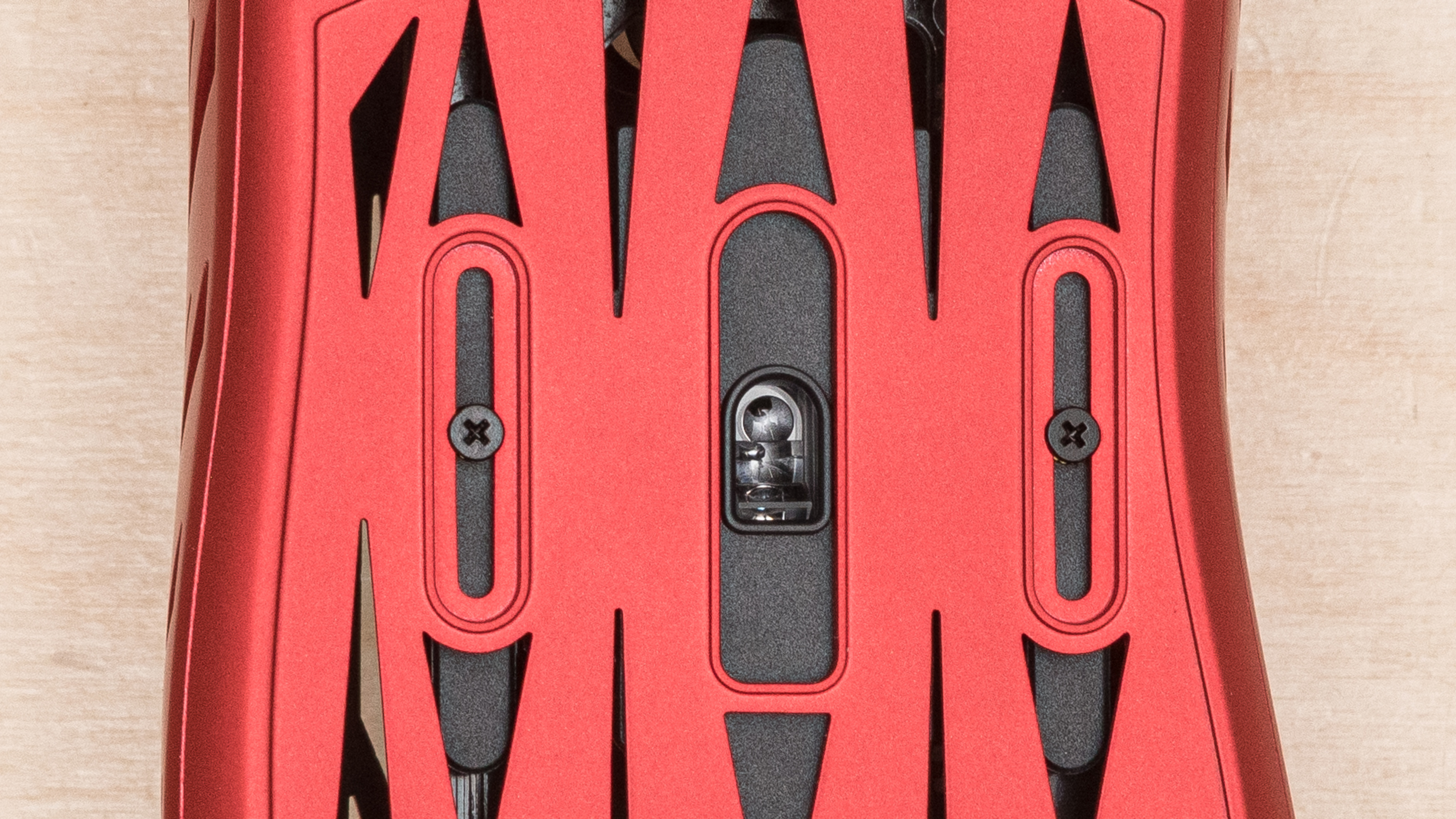 This mouse has an unusual feature that allows you to physically adjust the position of the sensor from the underside of the mouse. You can use a small screwdriver in the box to loosen the screws that secure the sensor housing, allowing you to slide the sensor more toward the front or back of the mouse.