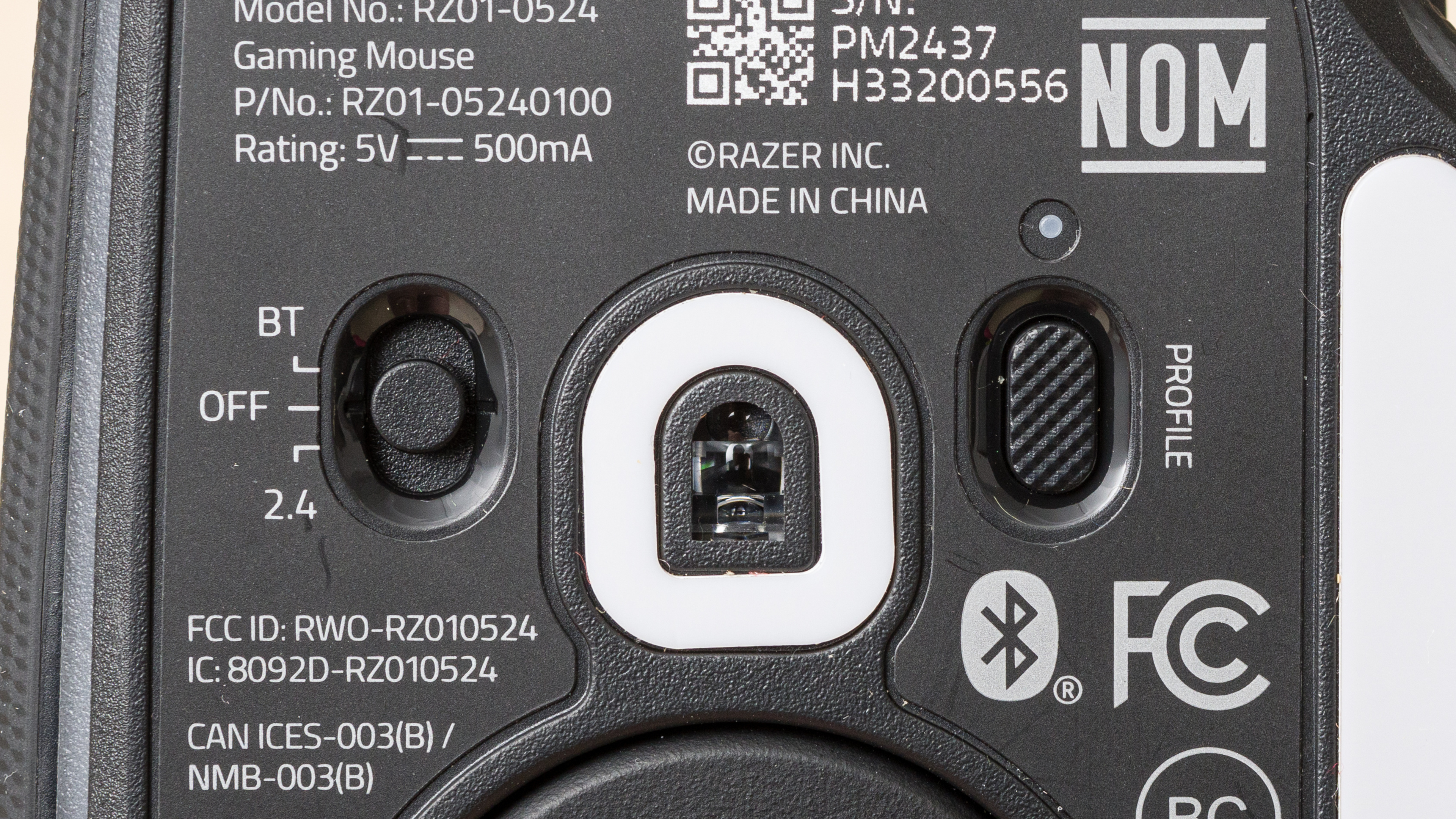 The Razer Basilisk V3 Pro 35K is available in Black, White, Phantom White, and Phantom Green colorways. The Phantom variants feature a transparent body but are otherwise identical internally. We bought and tested the black model, and here is our unit's label.