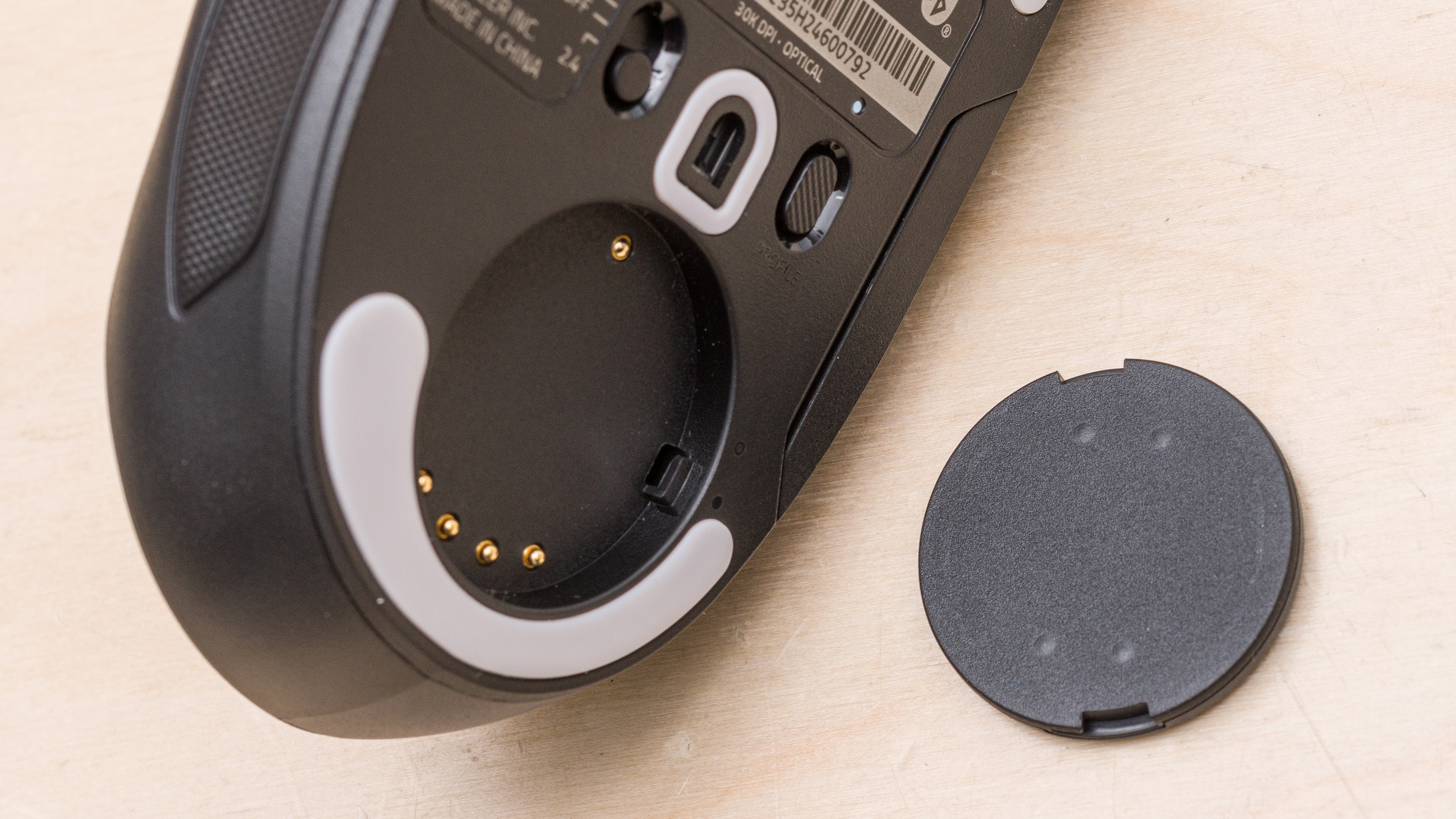 This mouse has an advertised battery life of up to 150 hours when connected with the HyperSpeed Wireless USB receiver and up to 300 hours connected via Bluetooth. This mouse supports wireless charging, but to use it you'll need to purchase a separate Qi-certified 'Razer Wireless Charging Puck' which replaces the default puck cover on the underside of the mouse. If you're interested in a similar wireless version of this mouse that uses AA batteries for power instead, check out the Razer Naga V2 HyperSpeed.