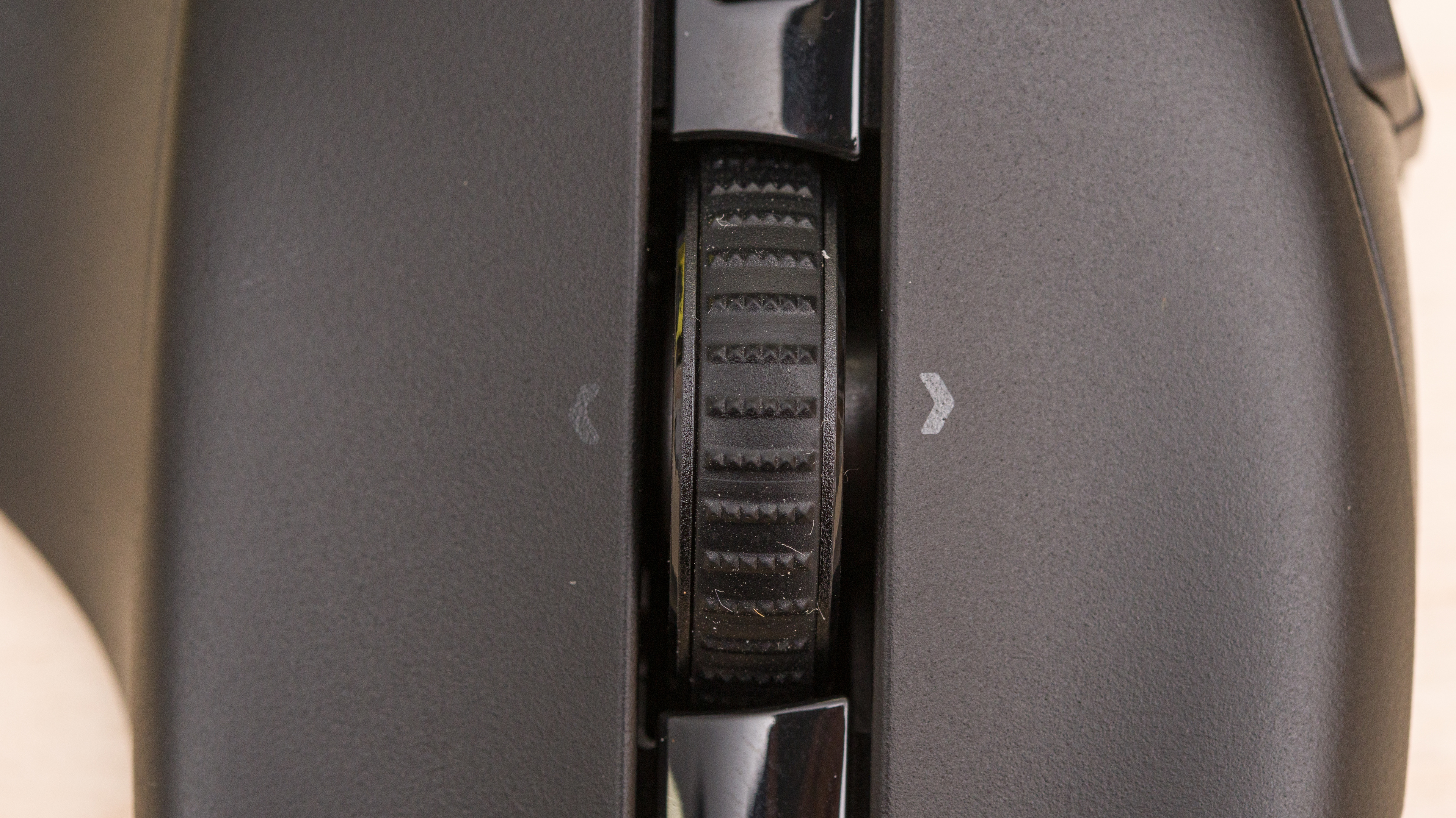 This mouse has a comfortable, right-handed shape with an area for resting either your ring or pinky finger on the right side. There's also a small grip section on the right, and both the three and six-button panels also have textured sections for added grip.
