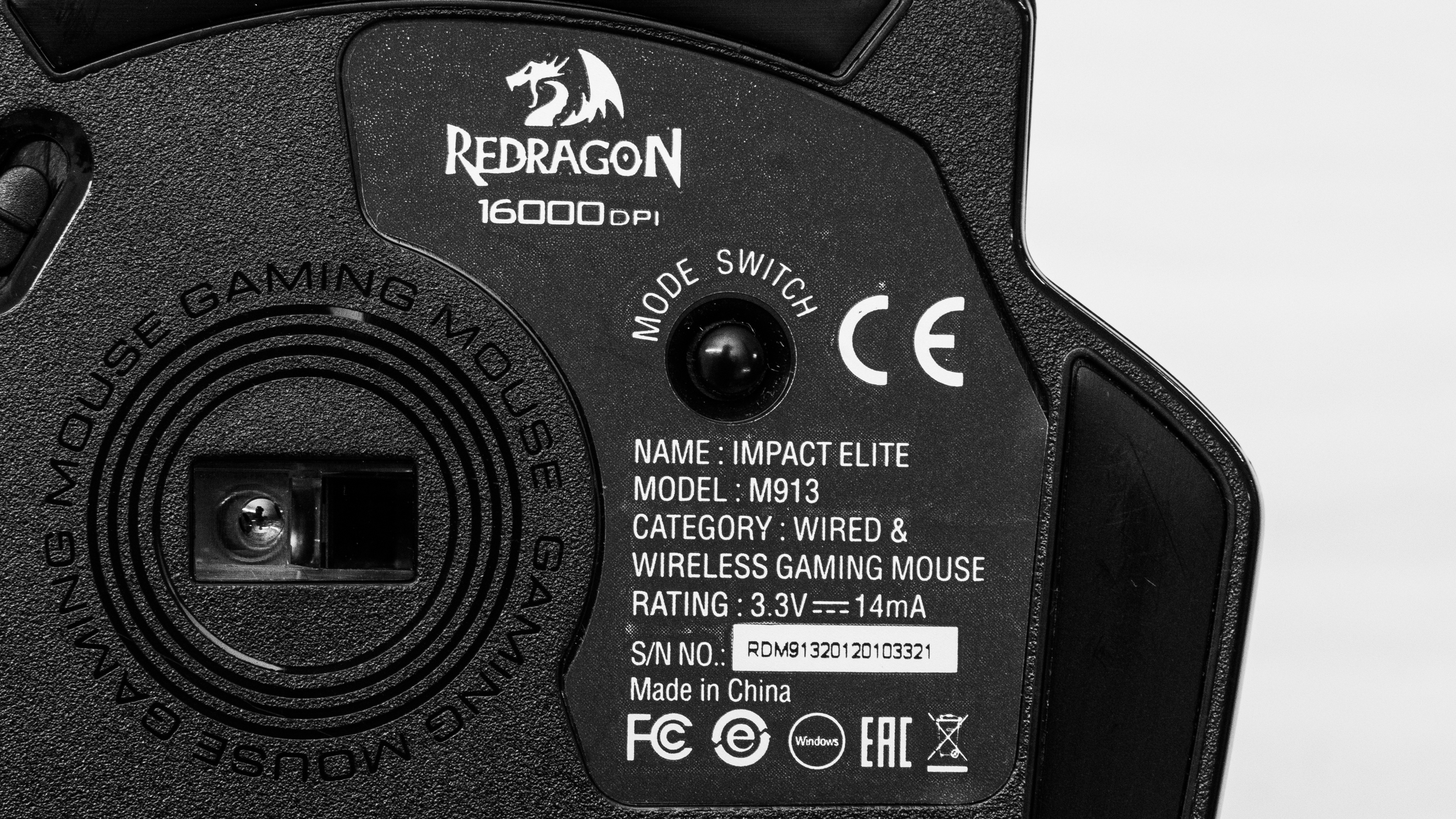 The Redragon M913 Impact Elite wireless gaming mouse we tested is black, and there are no other color variants. The Redragon M908 is very similar to this mouse, but it's a wired-only model. You can see the label of our unit here.
