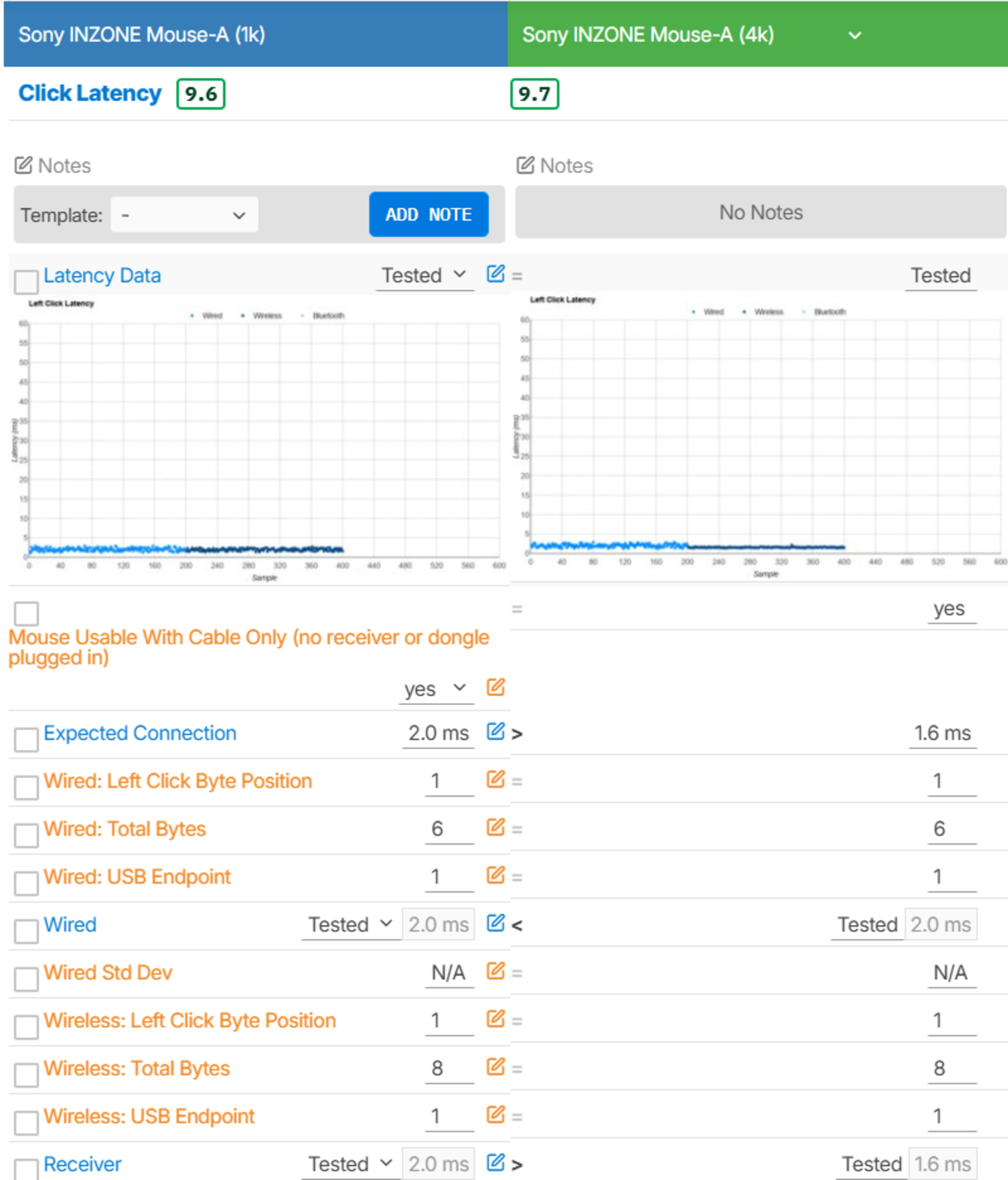 We conducted this test using the maximum 8000Hz wired and wireless settings.