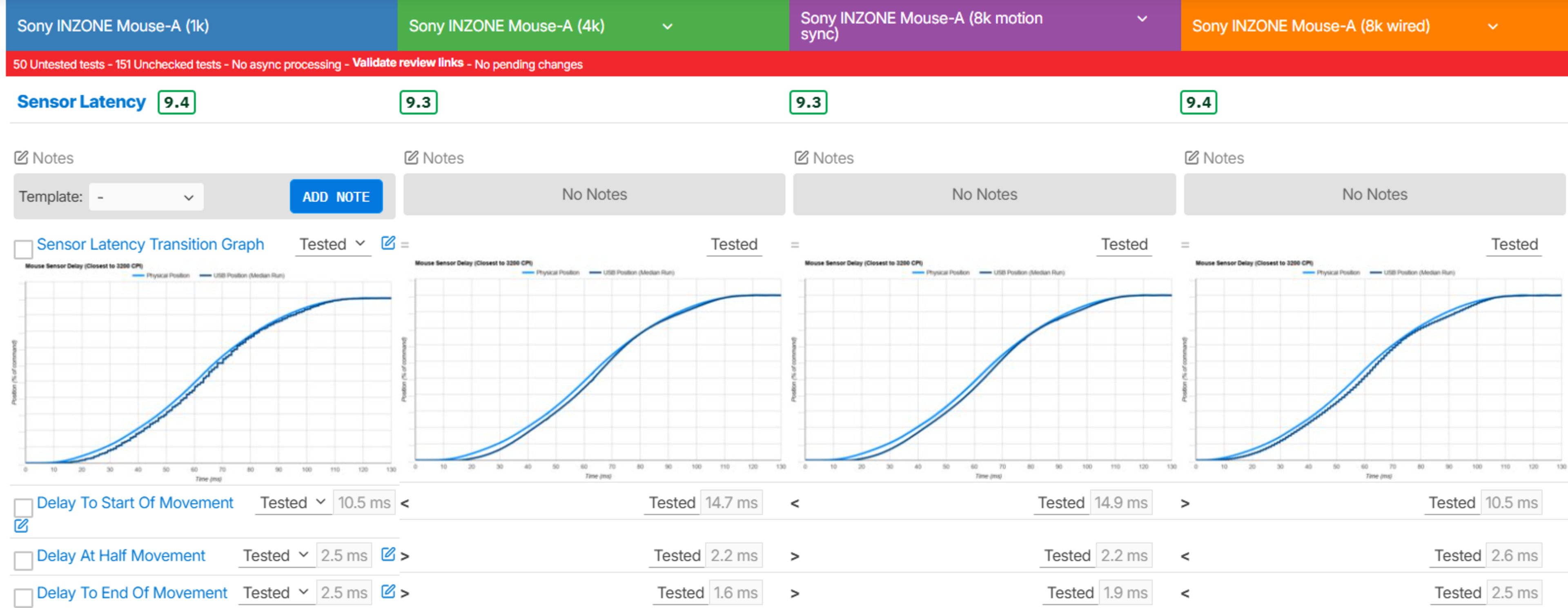 We also ran supplementary tests at 1000Hz, 4000Hz, and 8000Hz in wired mode, as well as at 8000Hz with Motion Sync enabled.
