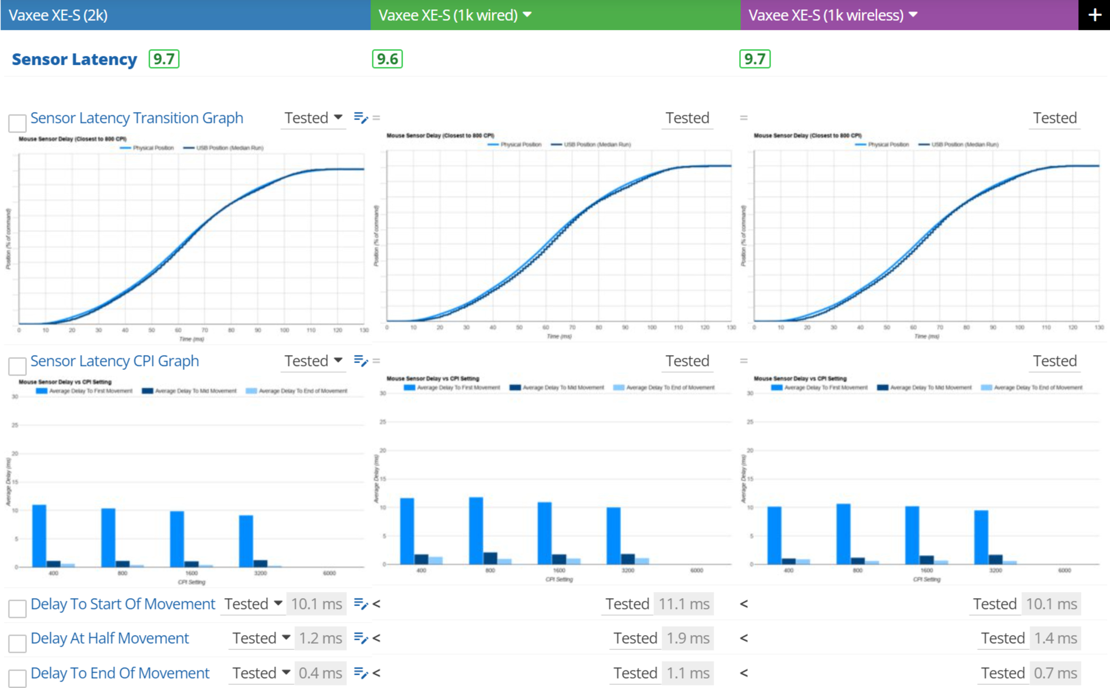 The Vaxee XE-S Wireless (4K) has outstanding sensor latency. It reacts to your movements incredibly quickly and consistently.