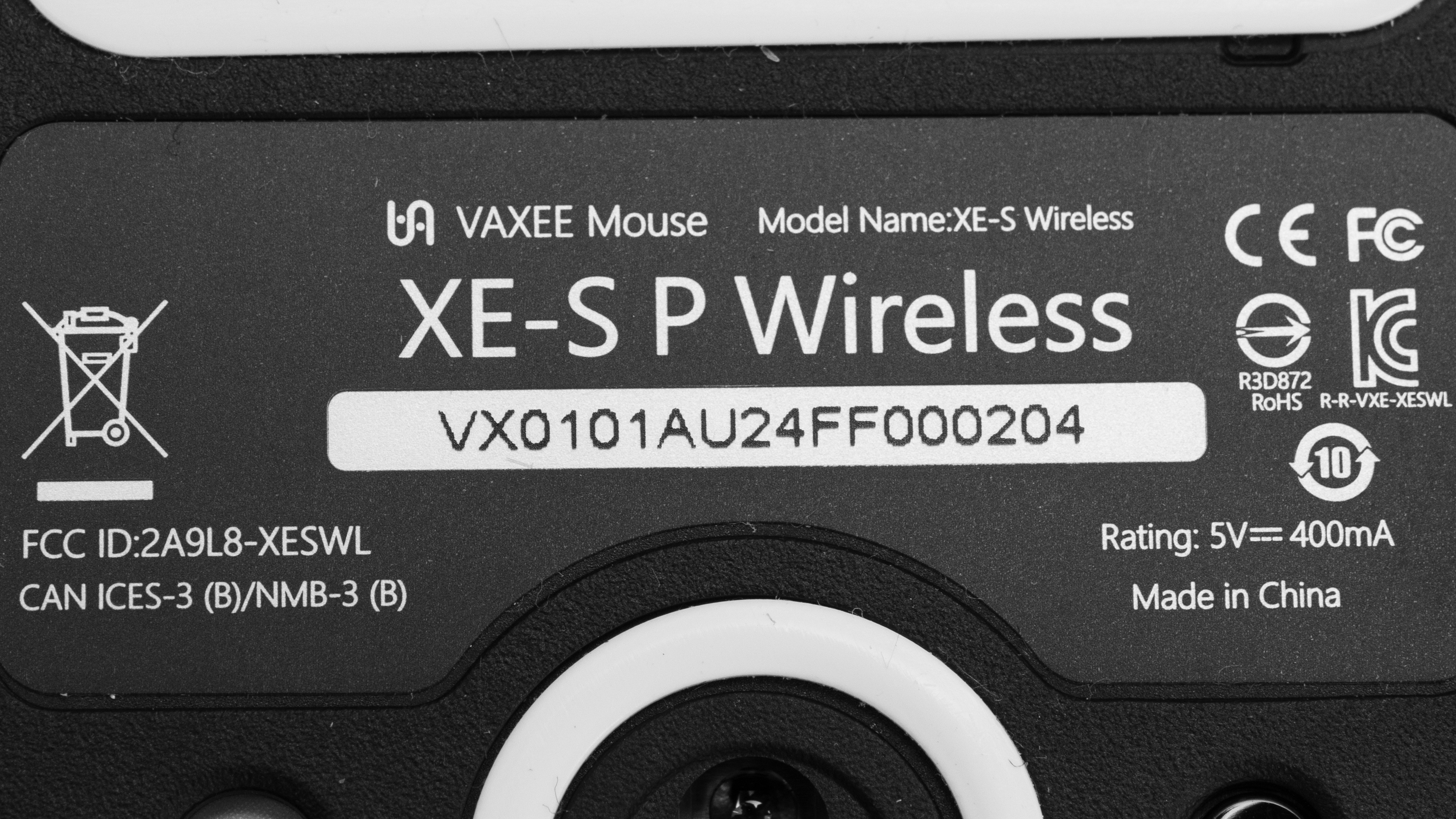 The Vaxee XE-S Wireless (4K) is available in Black, White, Yellow, Blue, Orange, and Pink. We bought and tested the Pink version. See our unit's label here.