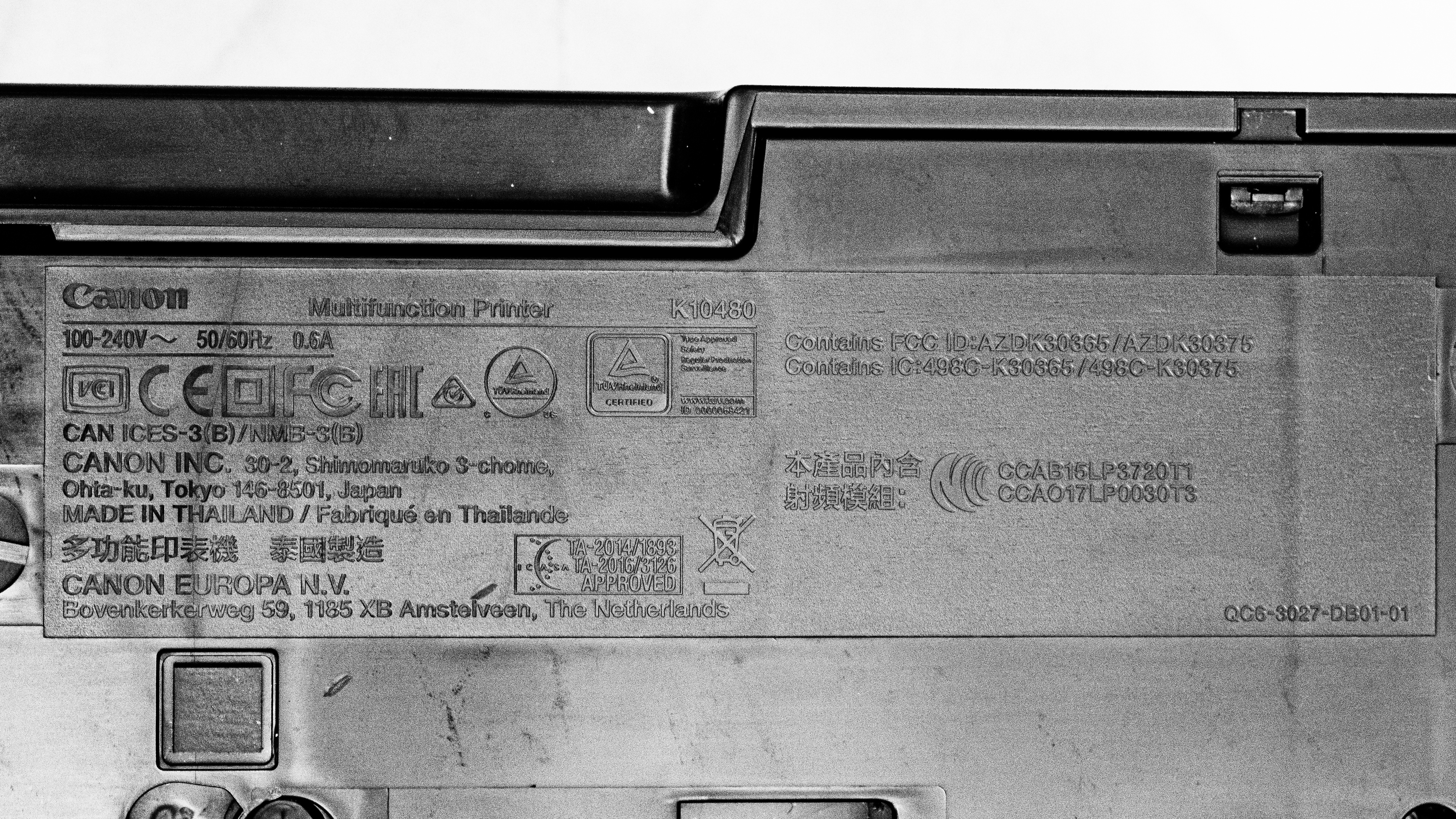 There's a variant available with some extra features geared towards crafters, the Canon PIXMA TS9521C, but we haven't tested this model and aren't sure how it performs. You can see our unit's label here.