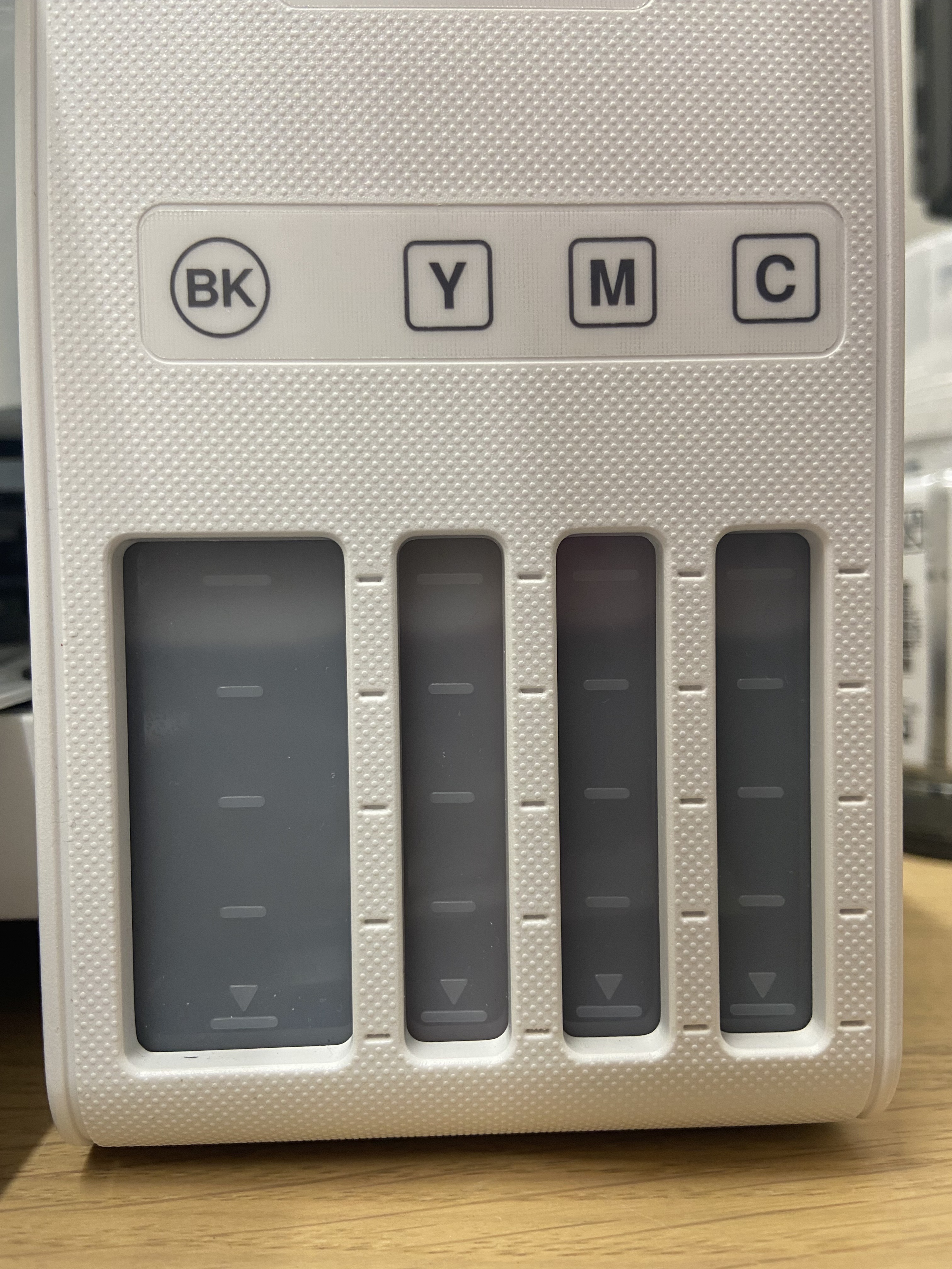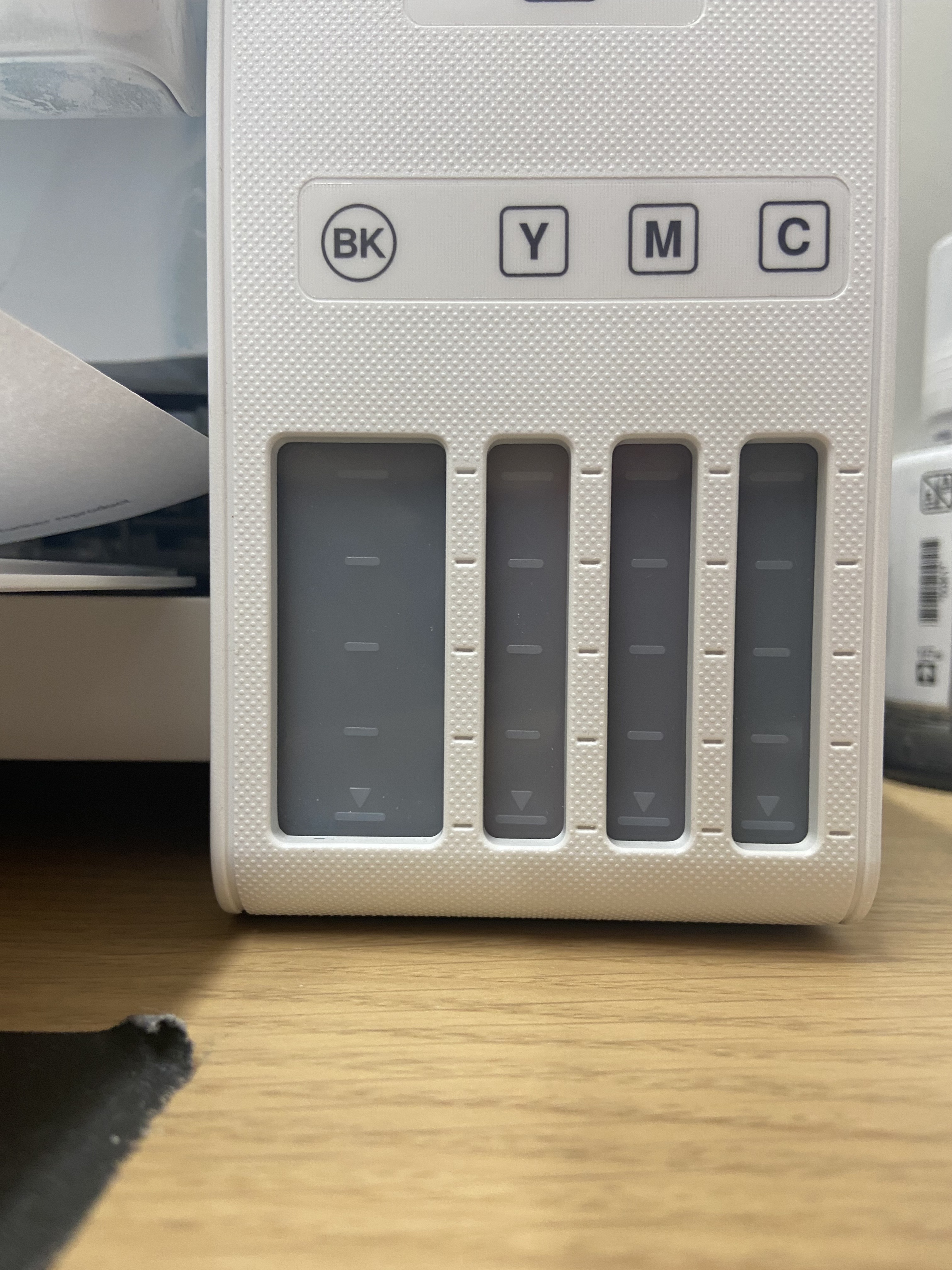 During a retest, the printheads were completely clogged. Even after five printhead cleanings in a row, turning the printer off for 12 hours, and doing another printhead cleaning, the printheads were still clogged. It took a final power cleaning to solve the issue. The power cleaning used a lot of ink, as you can see by the ink levels before and after the power cleaning. With all that said, the printer was left unused for almost two years when this happened, so you won't experience this amount of clogging if you use your printer regularly.