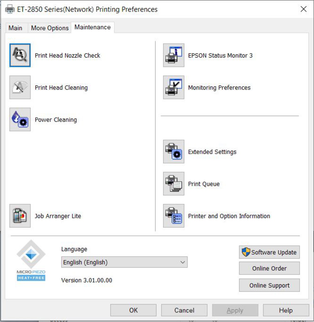 You don't need to install drivers on macOS and Chrome OS devices, but you do on Windows devices, which you can get here. While there's no printing app, there's a maintenance tab in the Printing Preferences that lets you access printhead cleanings.